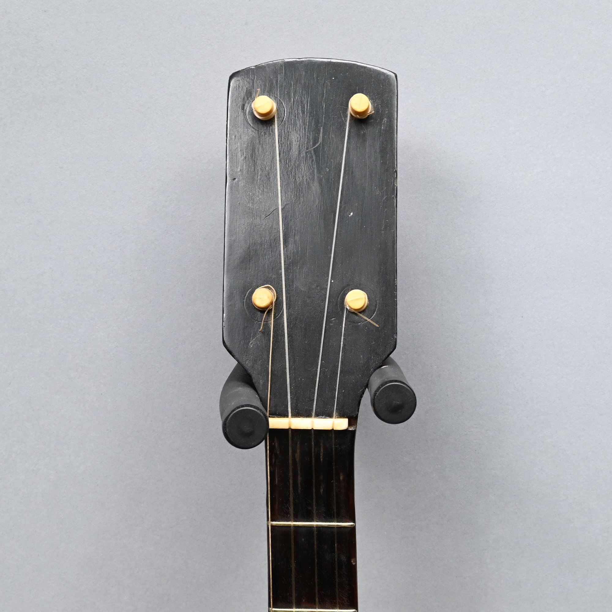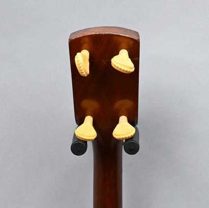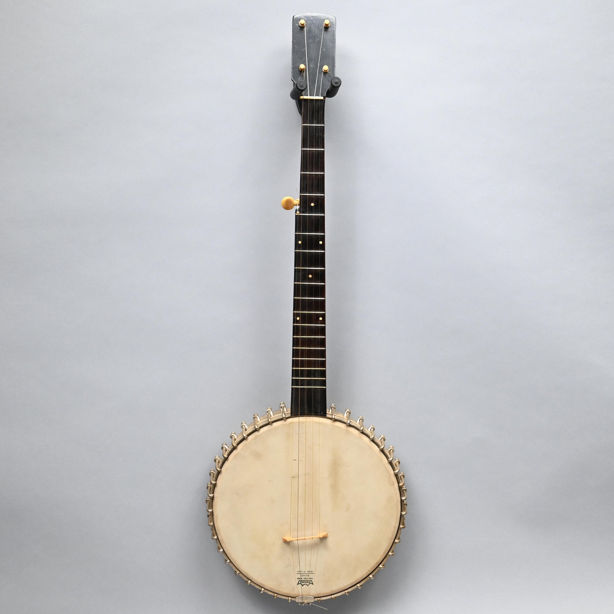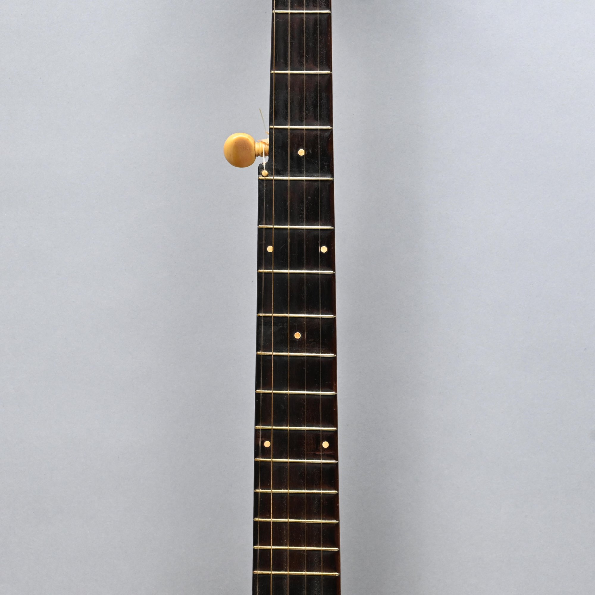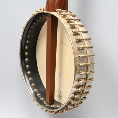 Mahogany Five-String Open-Back Banjo. Printed "REMO/ WEATHER KING/ BANJO/ MADE IN U.S.A." on the drum head.