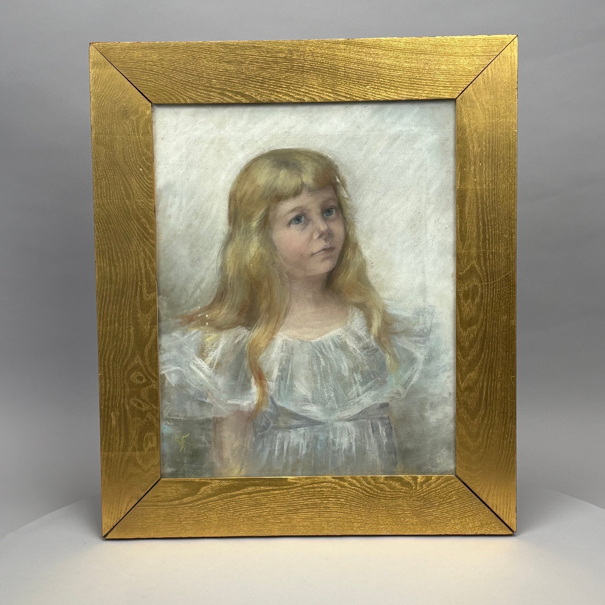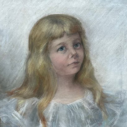 Margaret Foster (American, 19th Century). Portrait of Ellnora Richter (1885-1981), Circa 1896. Pastel on paper, artist's conjoined initials "MF" lower left, (19 x 15.125 inches, sight); housed in an Arts & Crafts gilt oak frame.