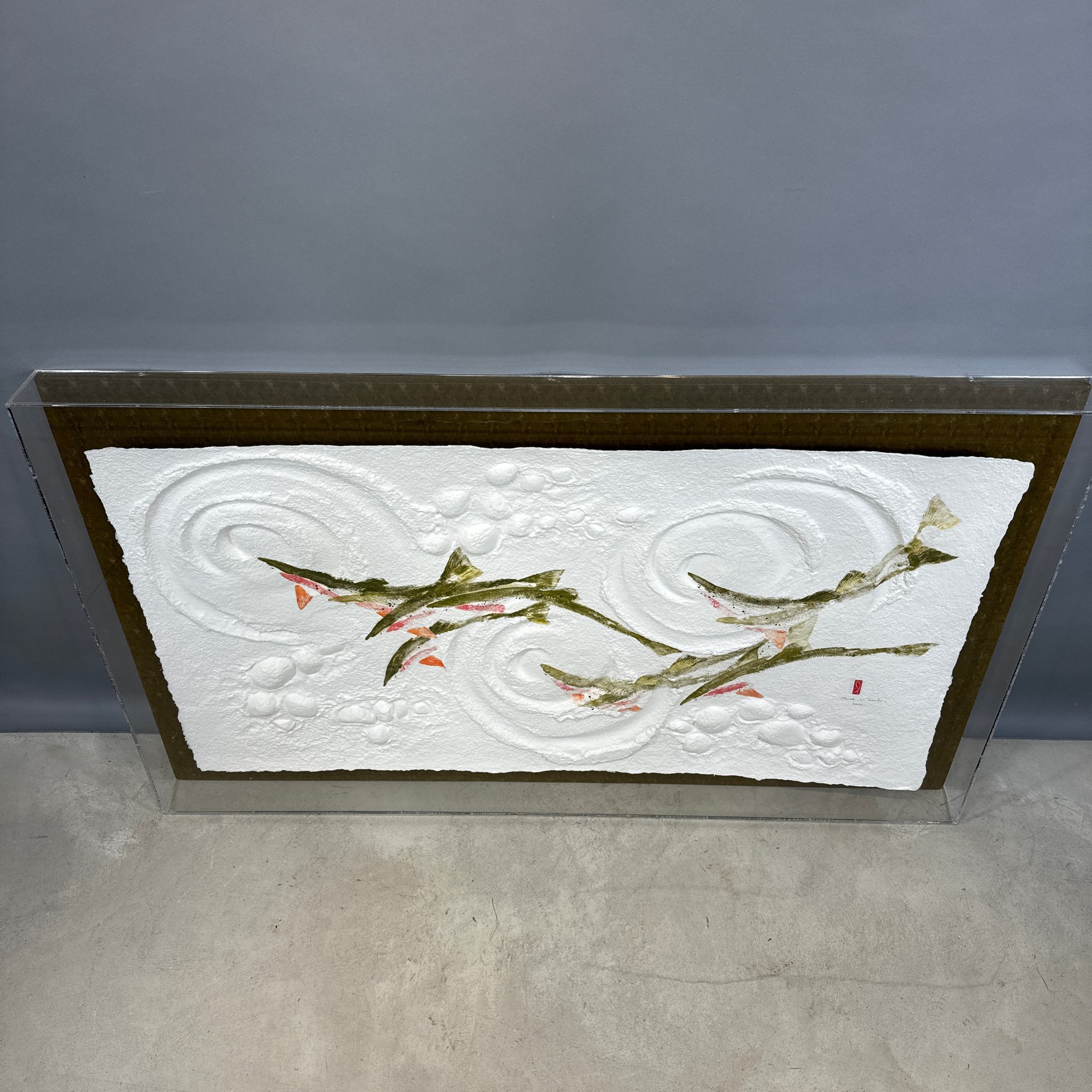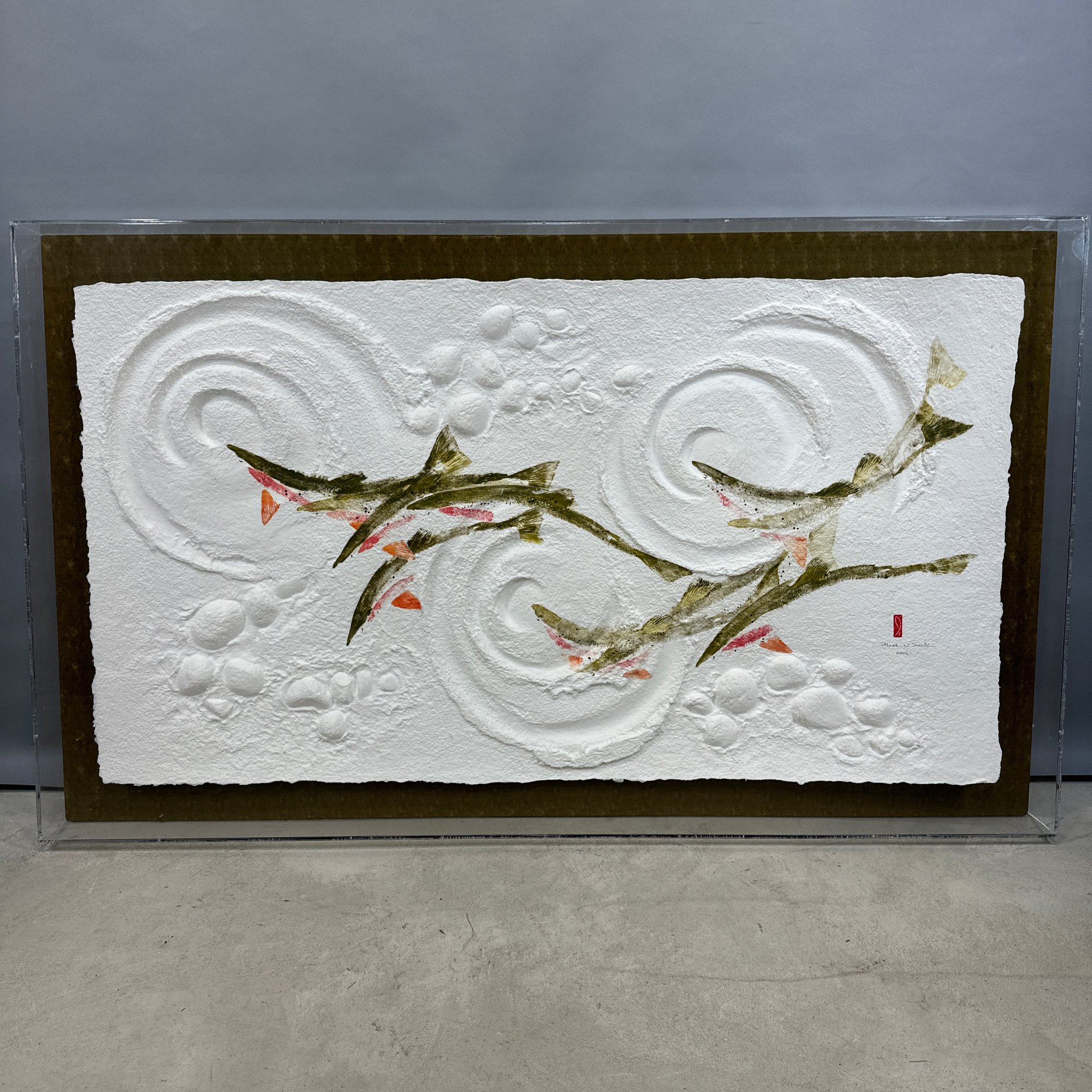Mark N. Smitz - Contemporary Work, 2002. Painted and molded cardboard, (approximately 32 x 55 inches); framed in a Lucite case.