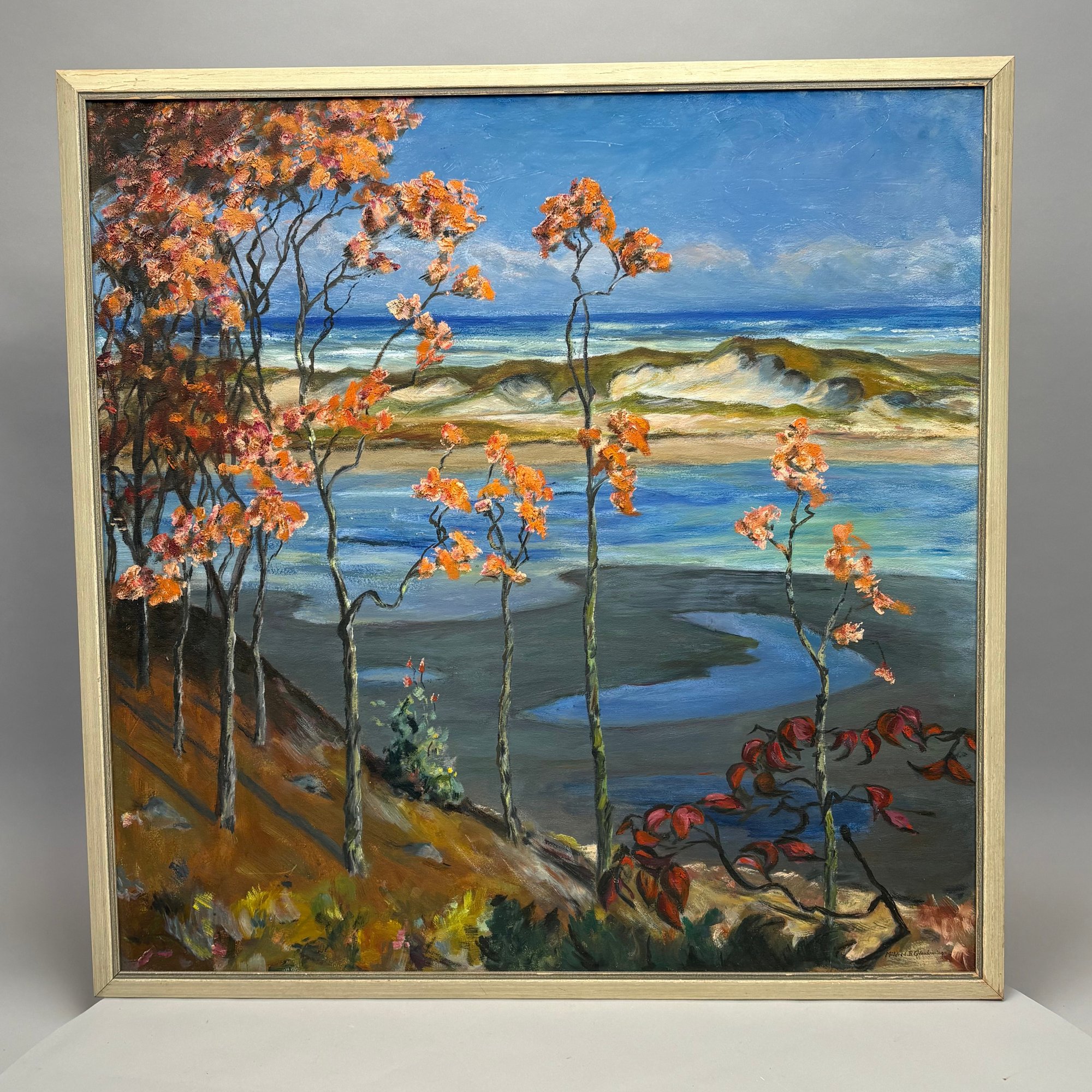Mildred B. Glendenning, After Joseph Benjamin Davol (1864, Chicago, Illinois - 1923, Ogunquit, Maine). "An October Idyl." Oil on artist board, signed "Mildred B. Glendenning" lower right, (30 x 30 inches).