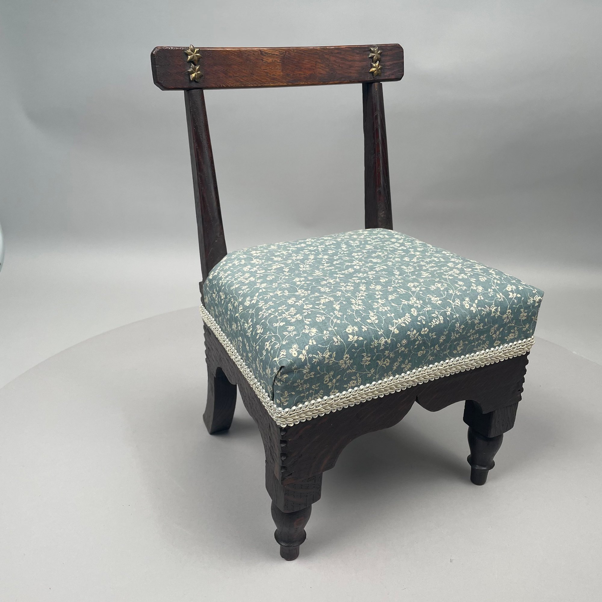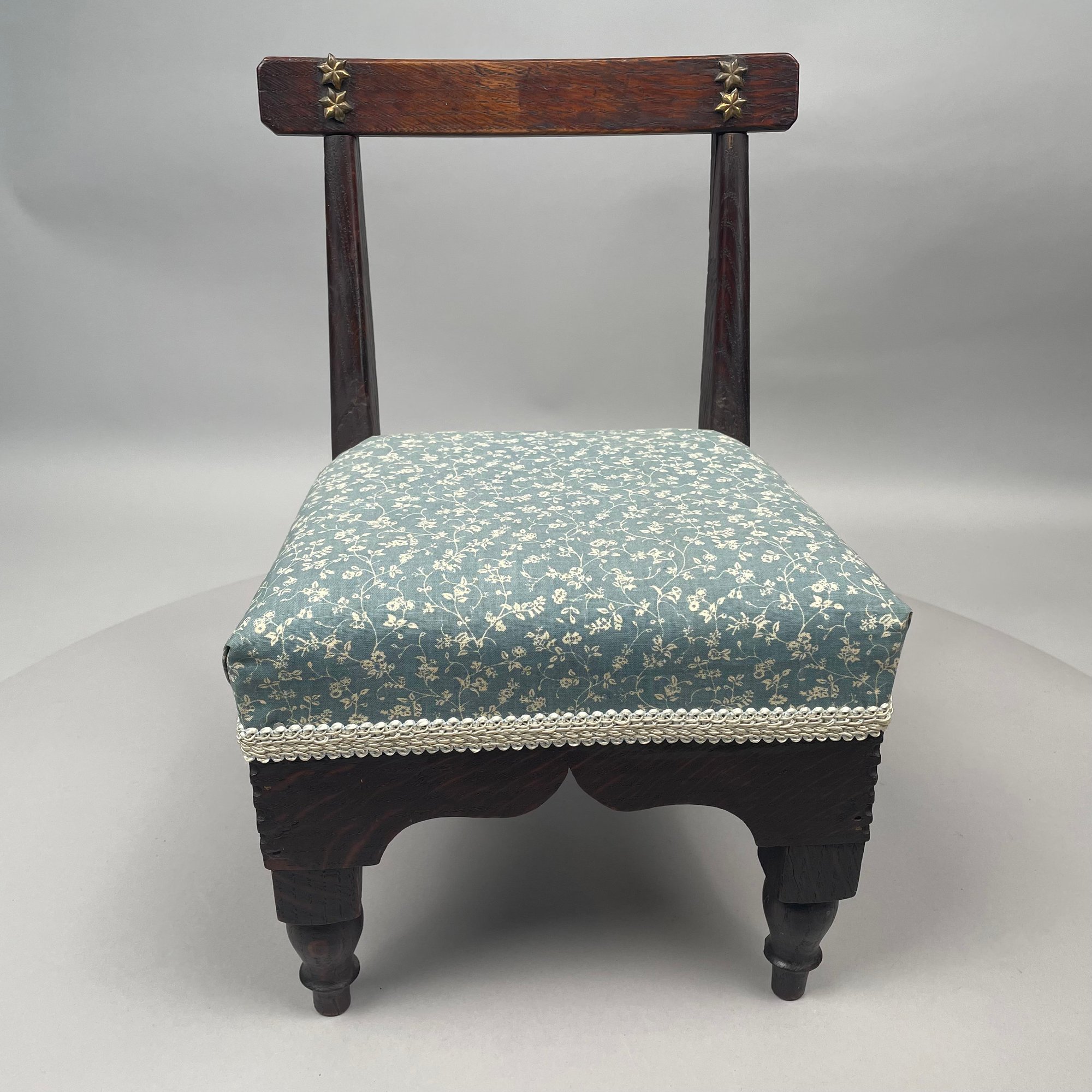 Miniature Empire Style Oak Side Chair with Brass Stars on the Crest Rail, Nineteenth Century.