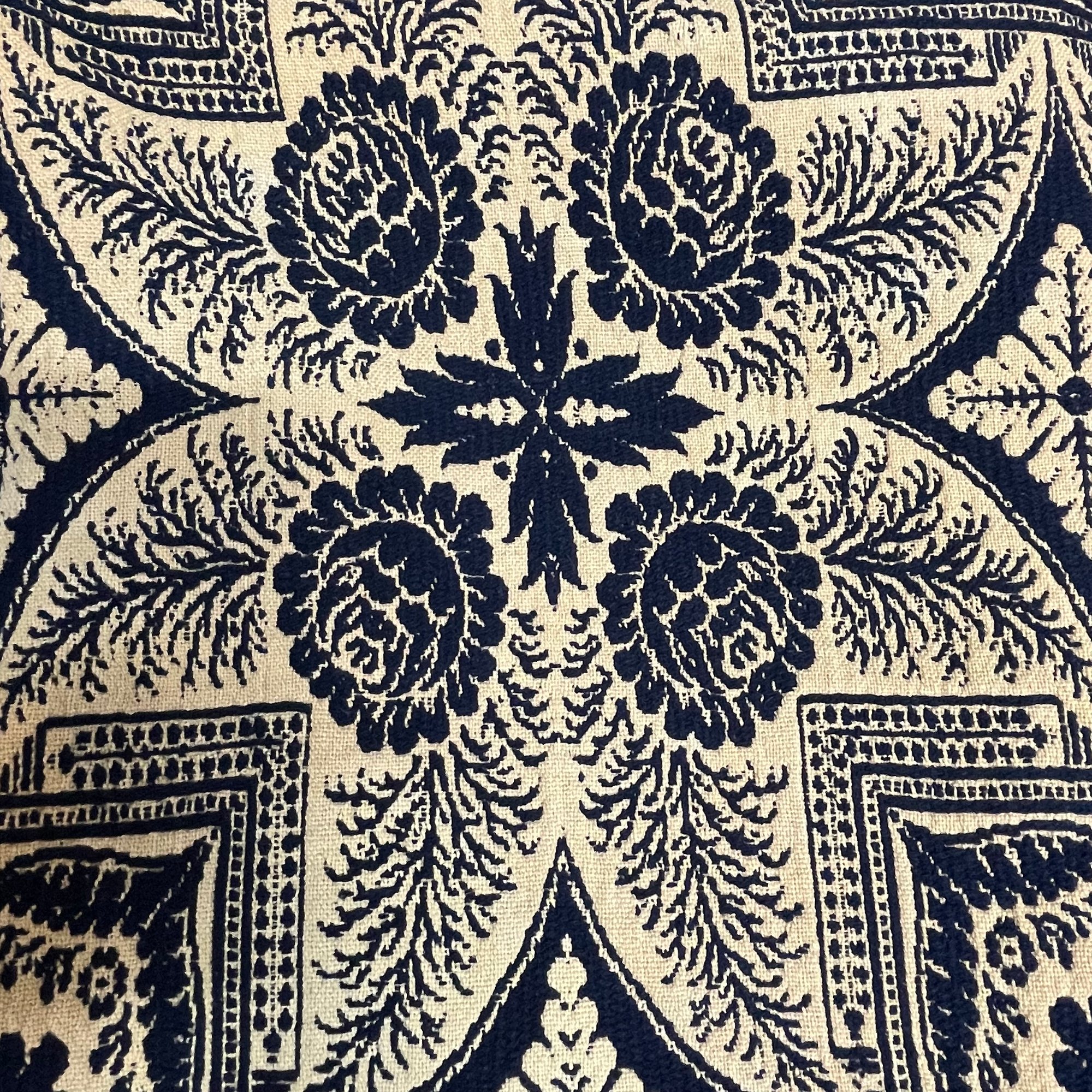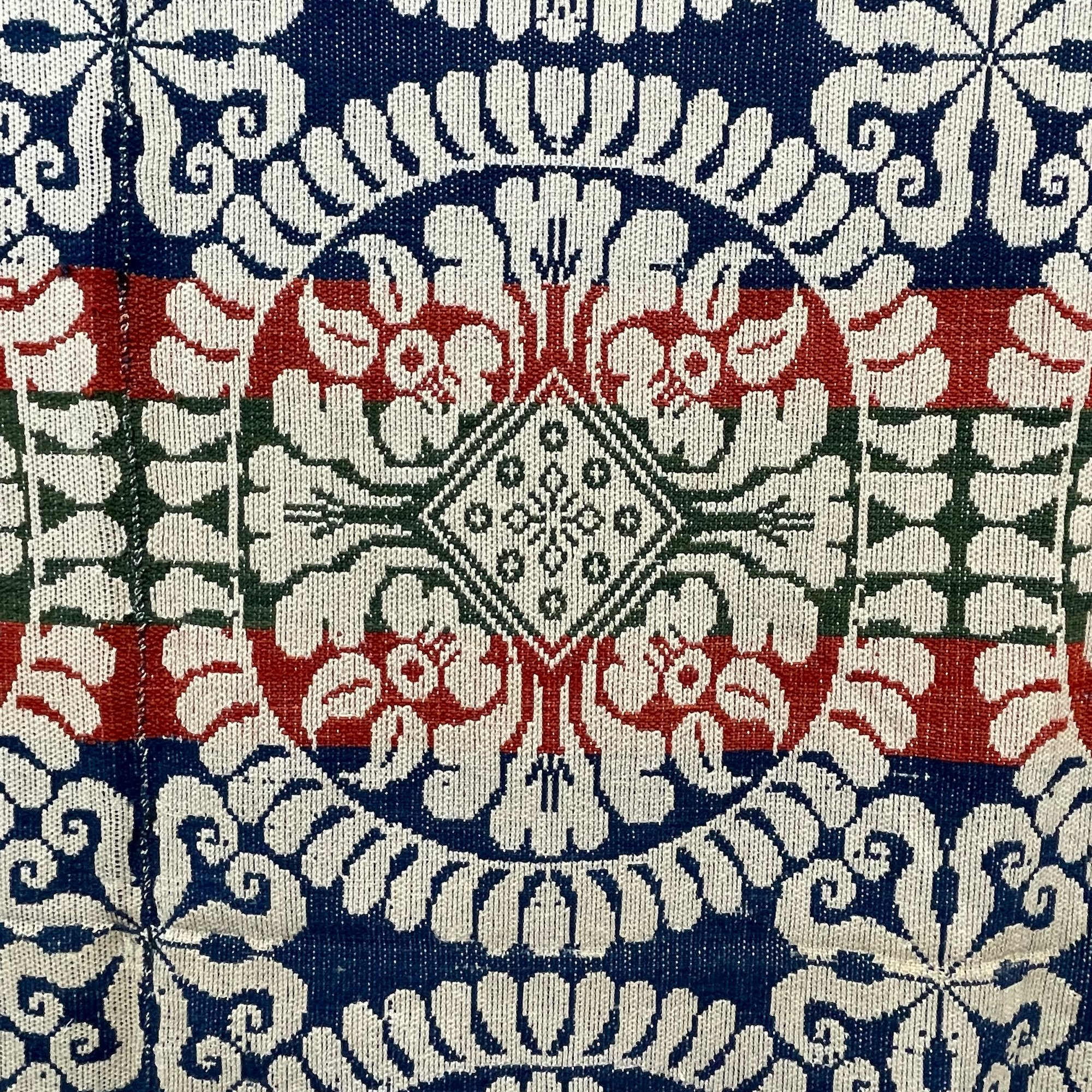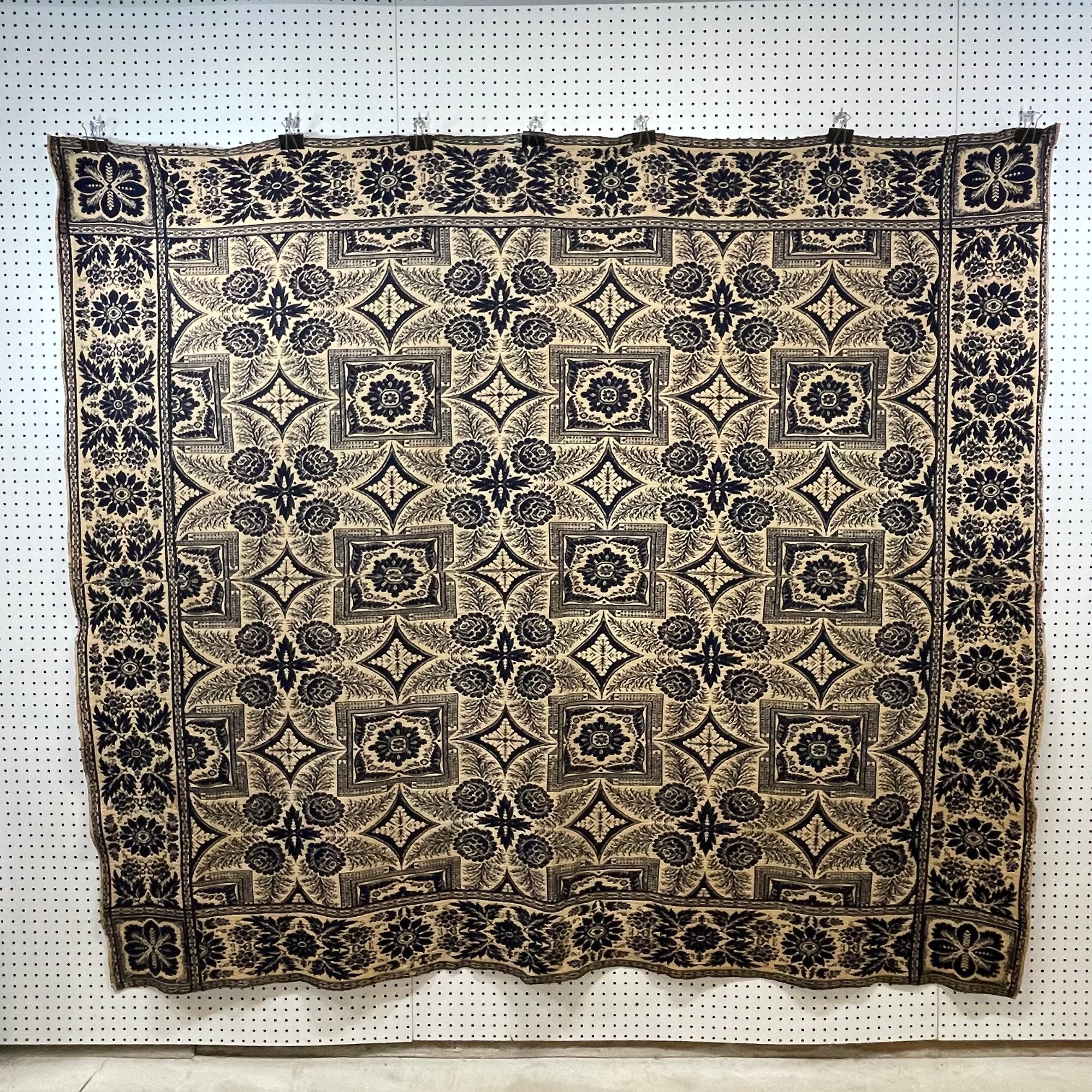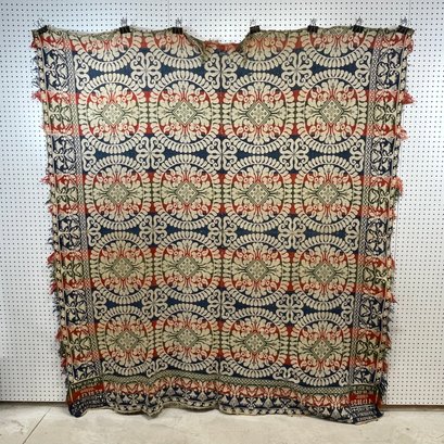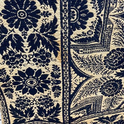 Blue and white coverlet: 73.25 in. x 87 in.