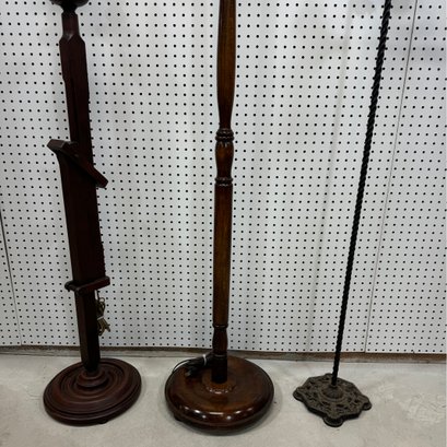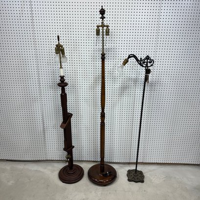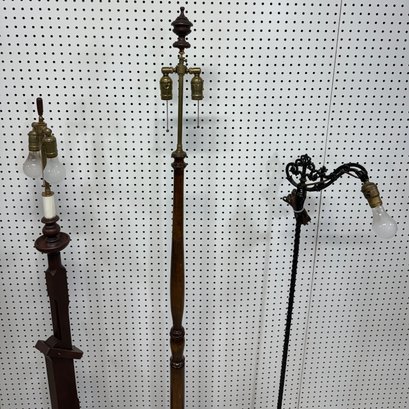 Ratchet Floor Lamp, Turned Floor Lamp and Painted Metal Bridge Lamp.
