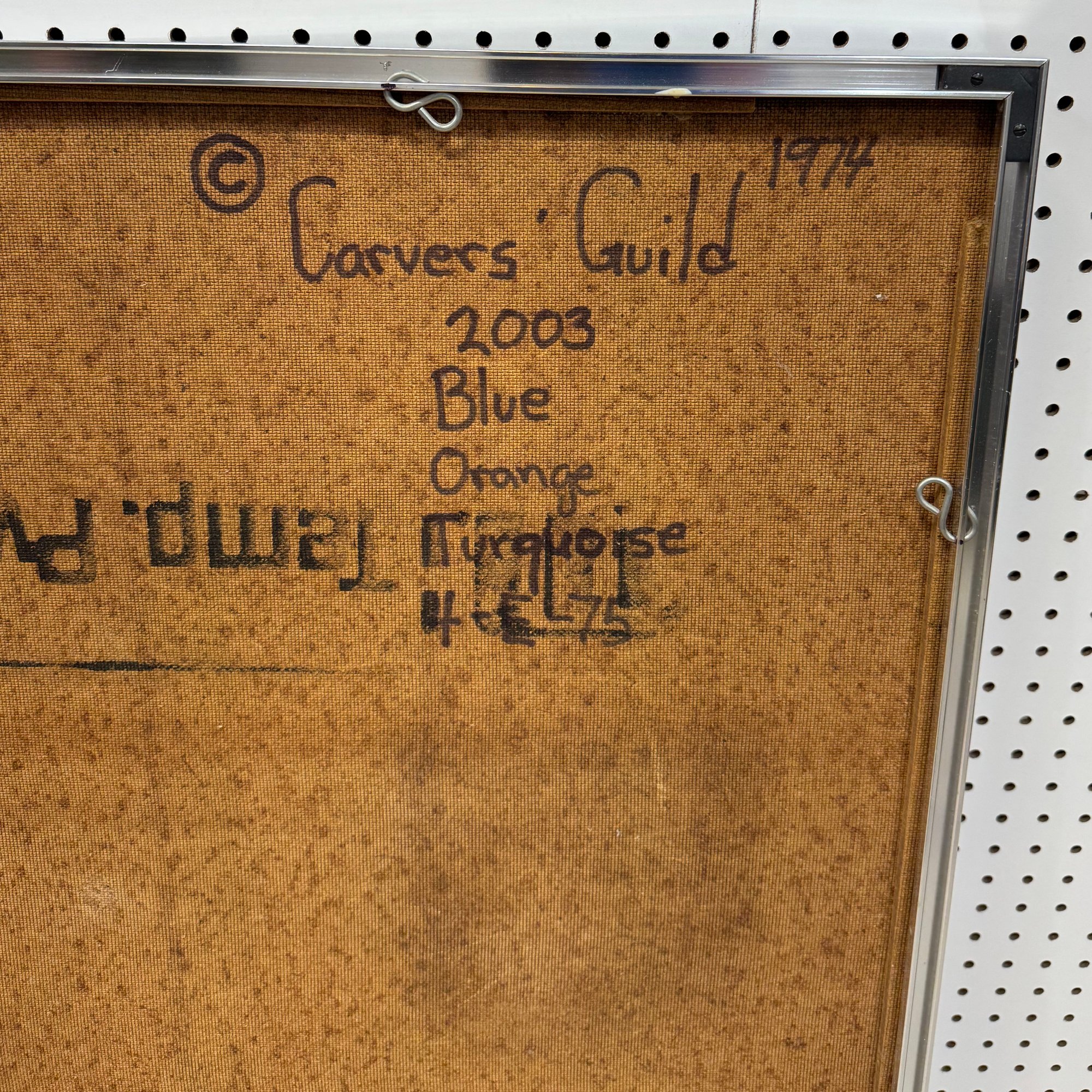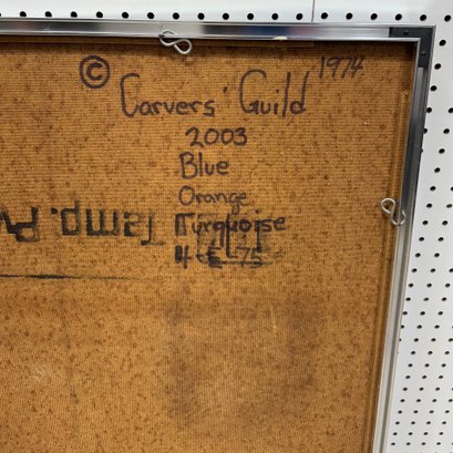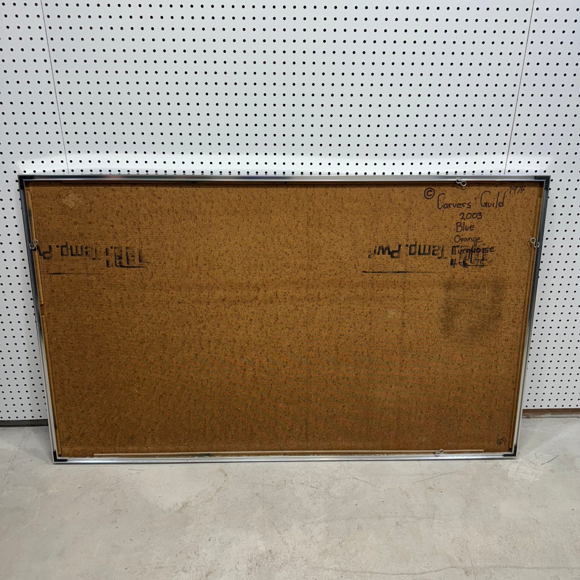 Retro 1970's Wall Mirror Decorated with Orange, Blue and Turquoise Bands. Carver's Guild Model: 2003, 4-16-1974.