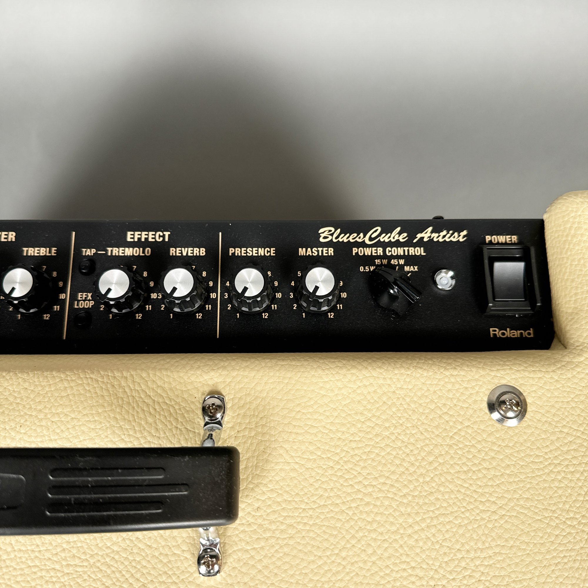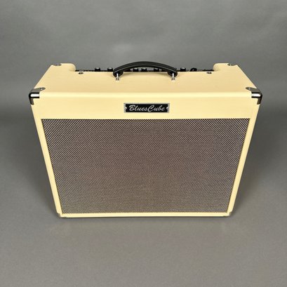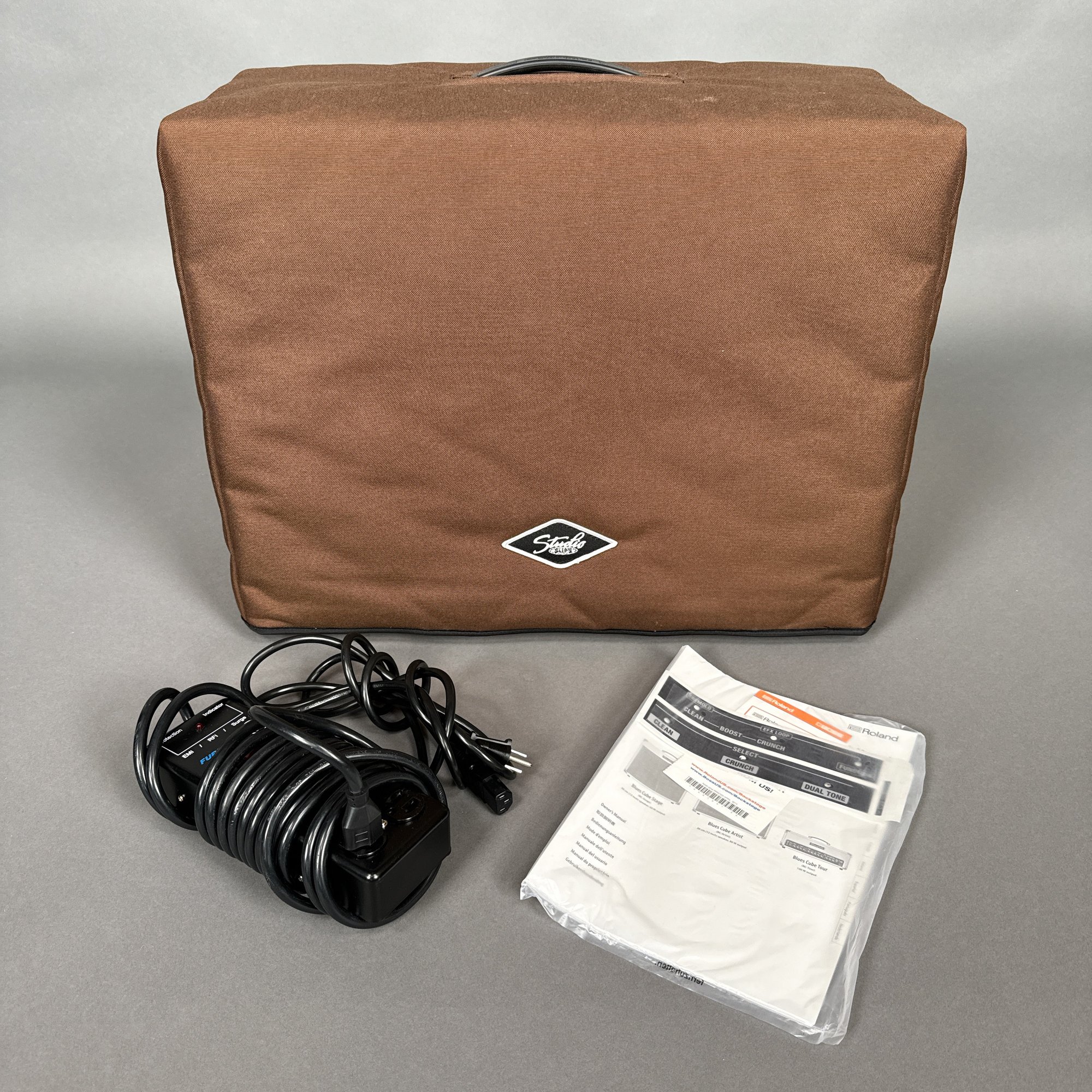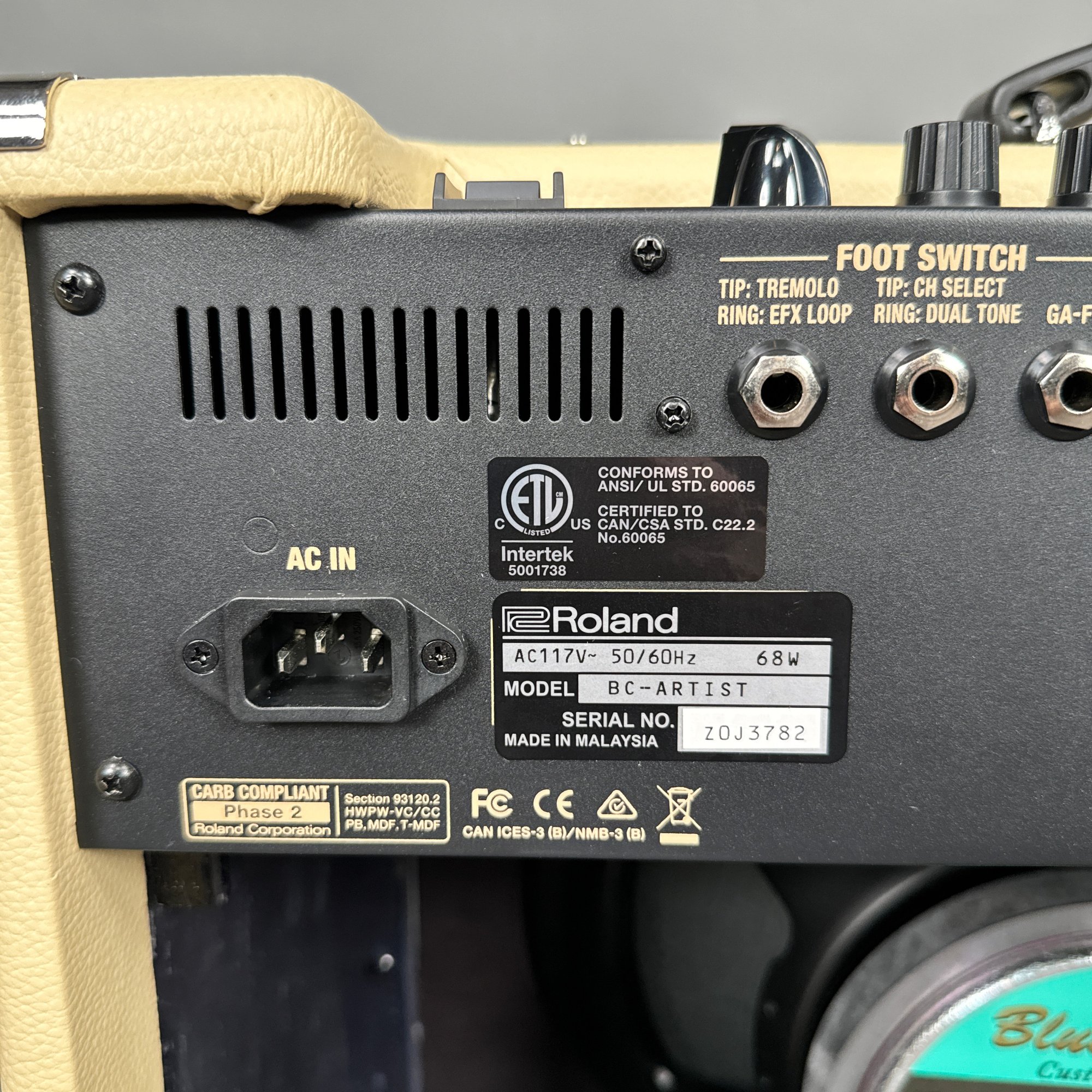 Roland Corporation Blue Cube Artist Amplifier, Serial Number Z0J3782. Including an owner's manual, accessories and a "Studio/ SLIPS" brown cover.