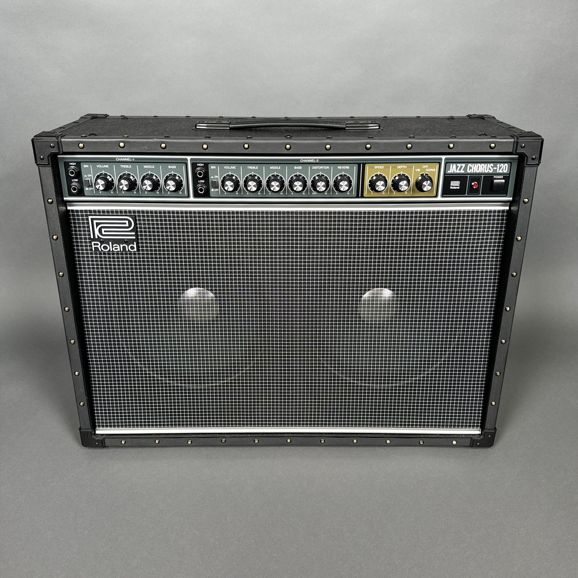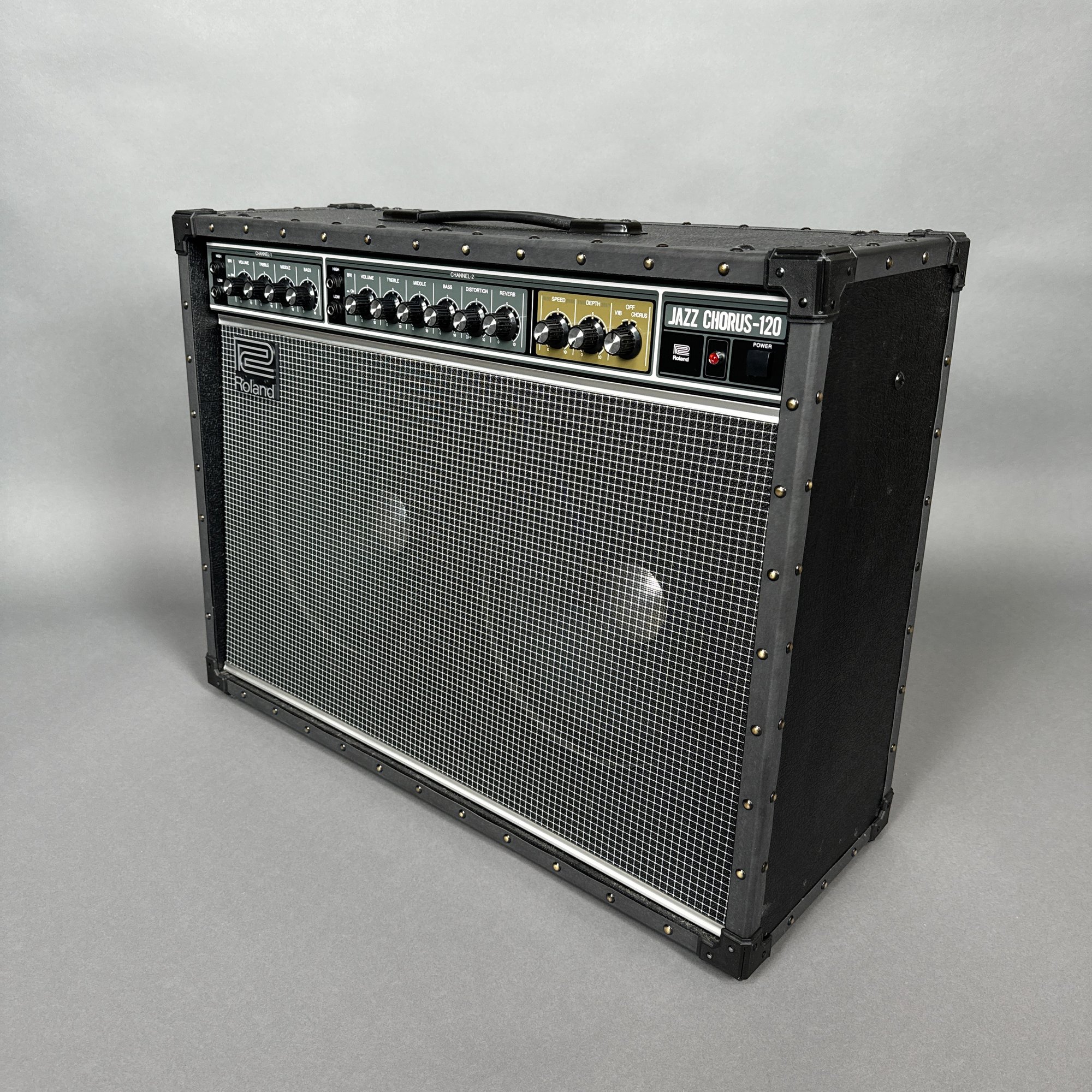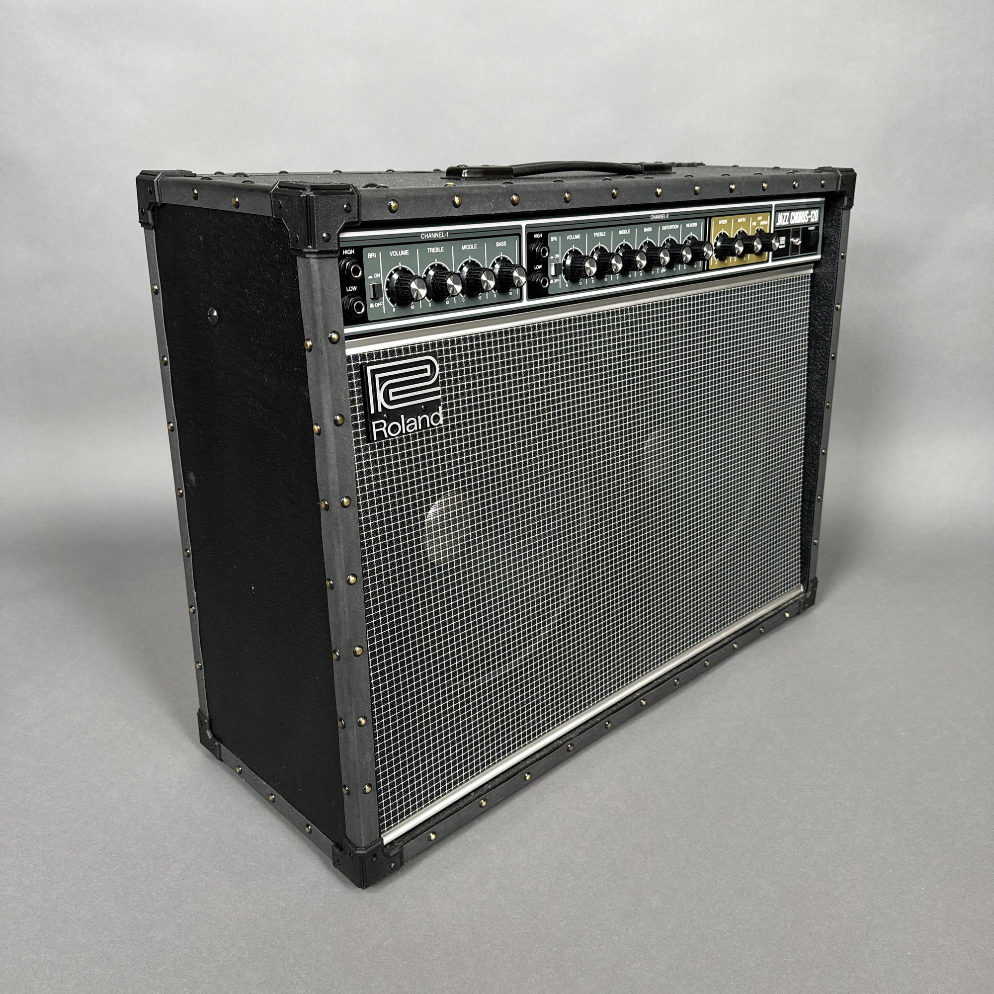 Roland Corporation Jazz Chorus-120 Amplifier, Serial Number Z8H2194. Including a "Studio/ SLIPS" brown cover.