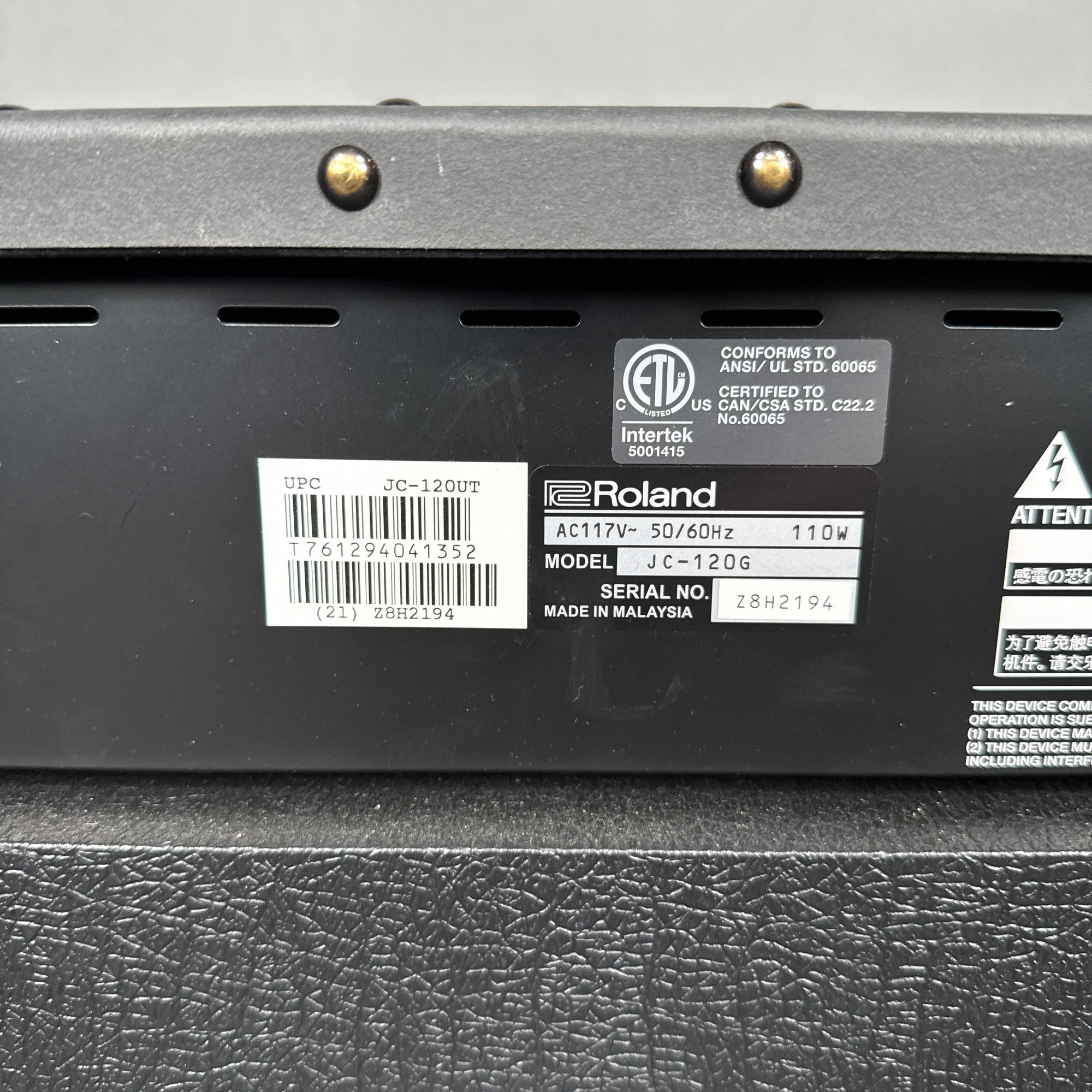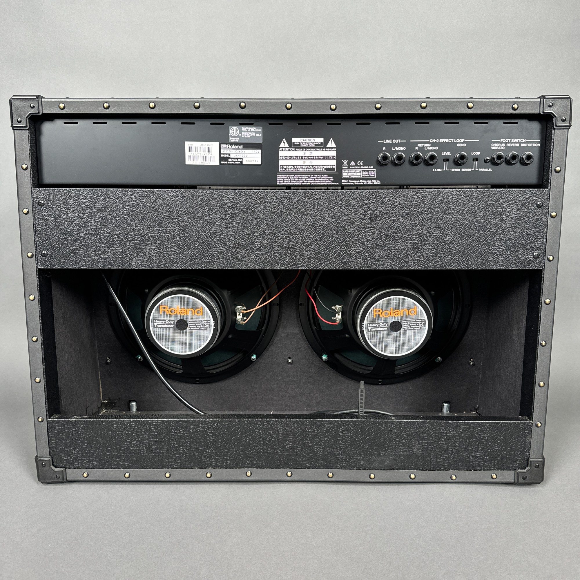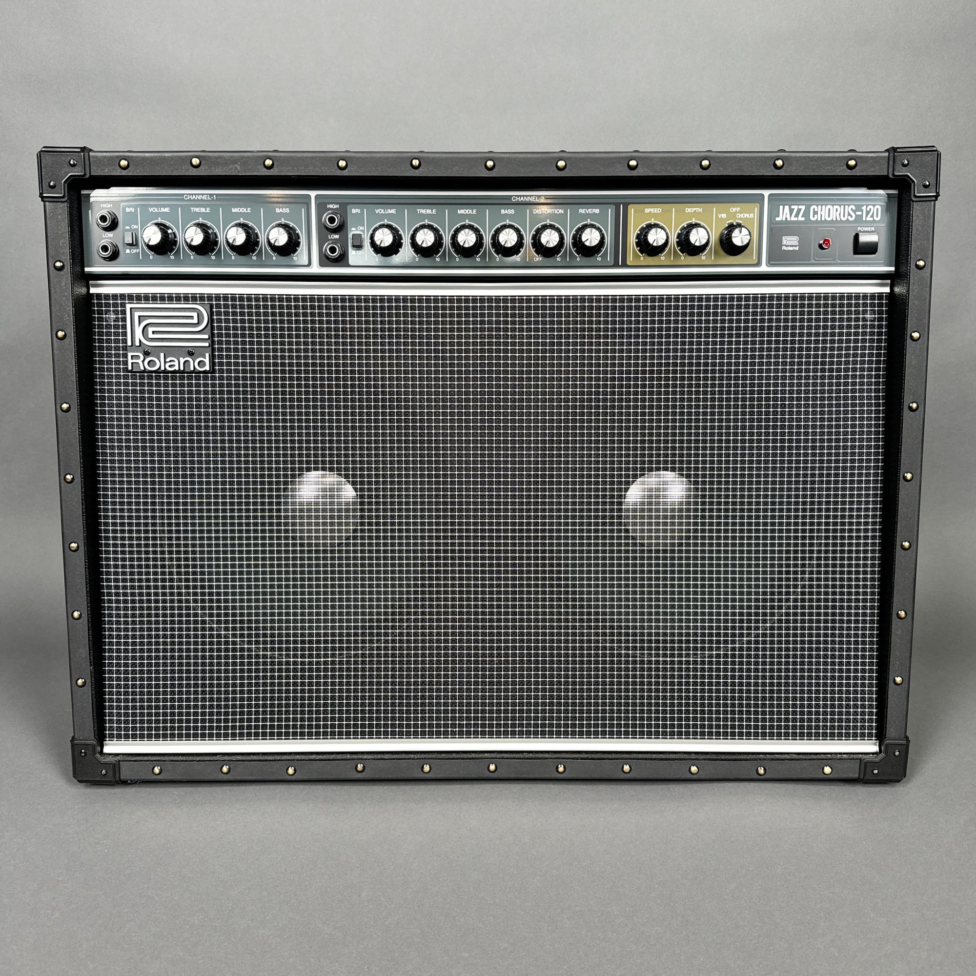 Roland Corporation Jazz Chorus-120 Amplifier, Serial Number Z8H2194. Including a "Studio/ SLIPS" brown cover.