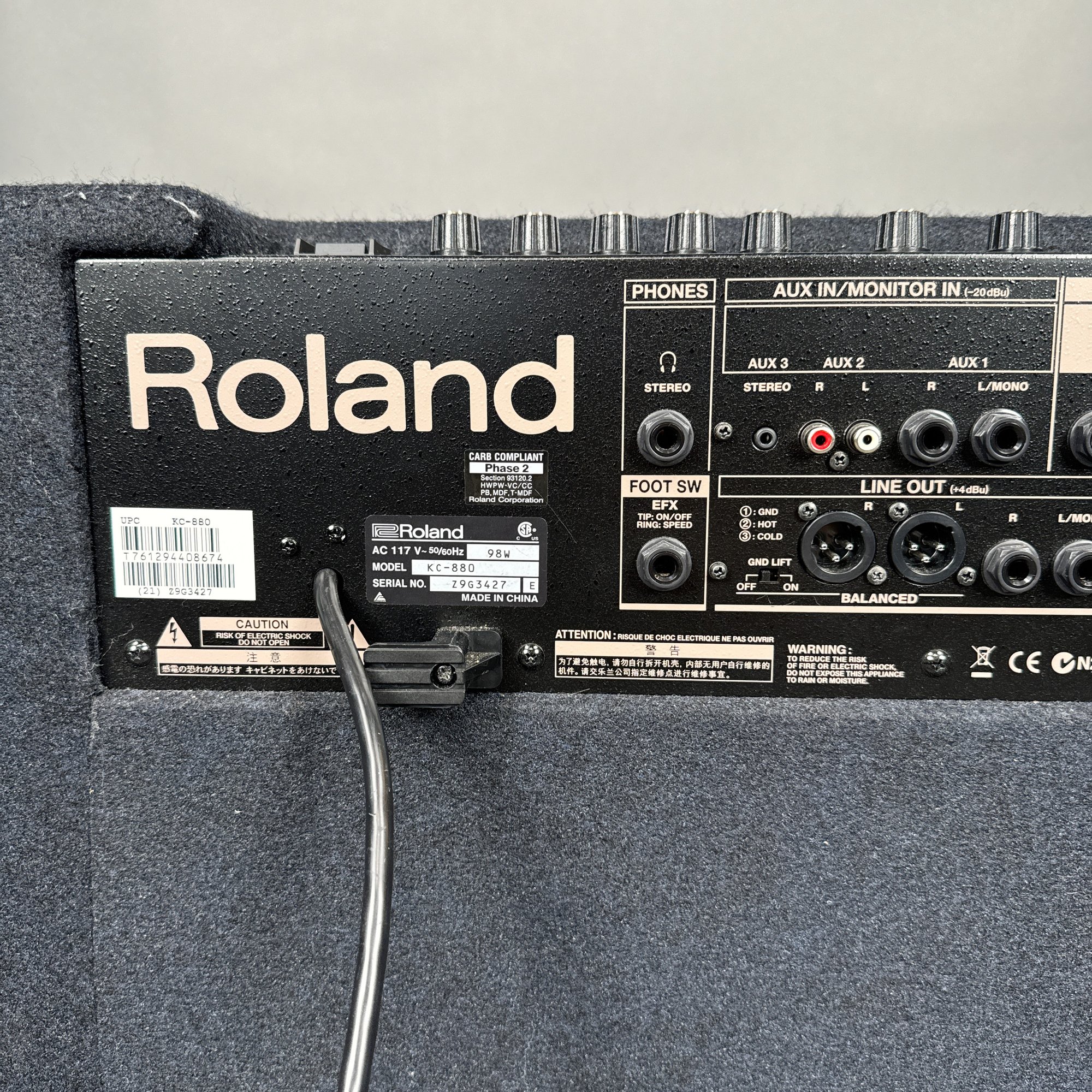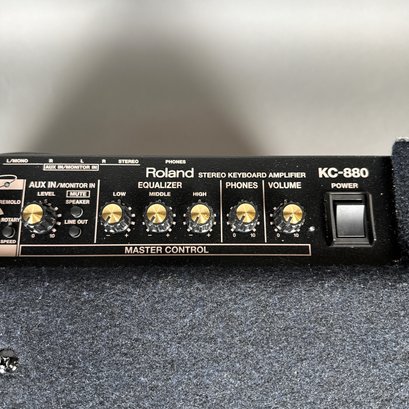 Roland Corporation KC-880 Stereo Amplifier, Serial Number ZOJ3782. Including a Naugahyde black and blue cover.