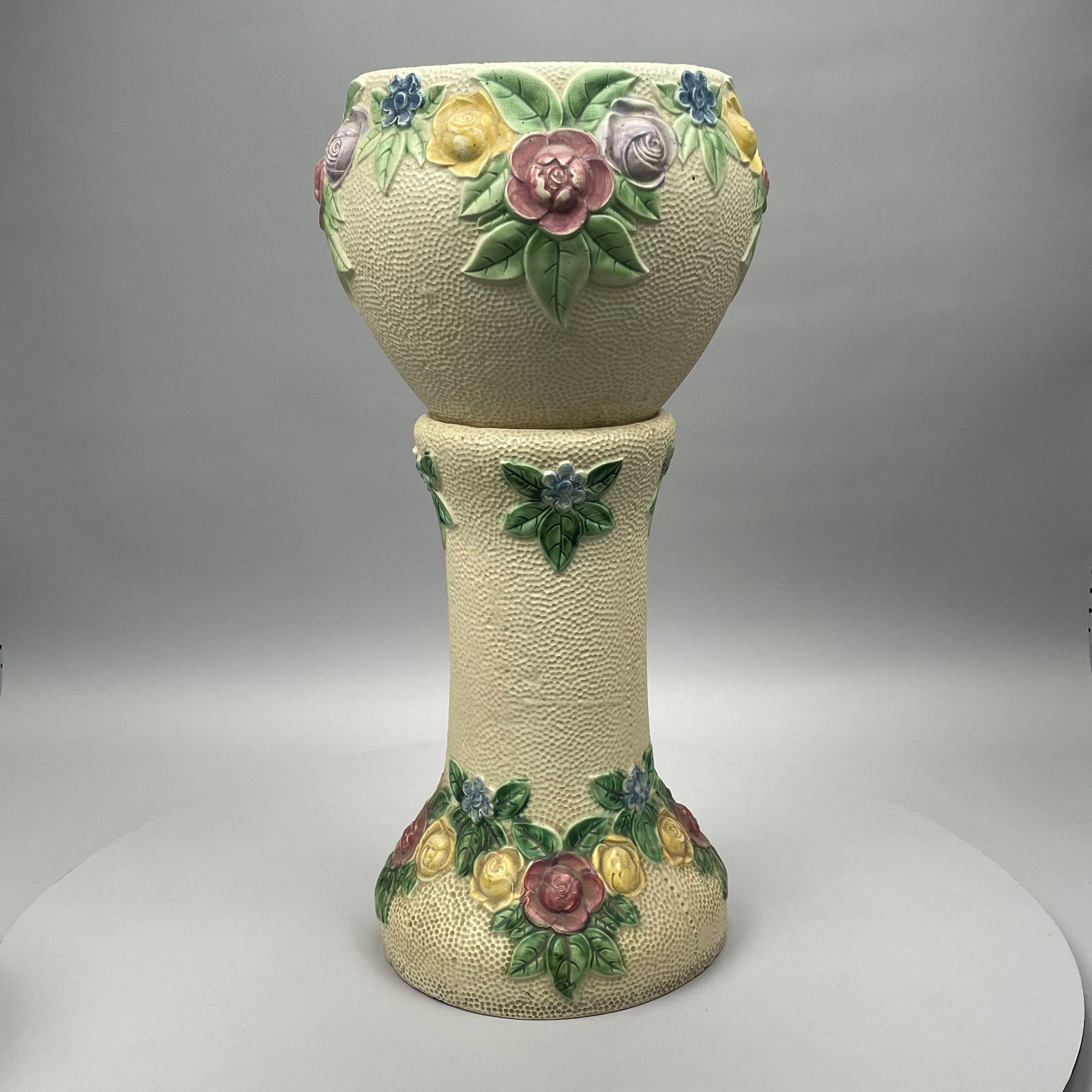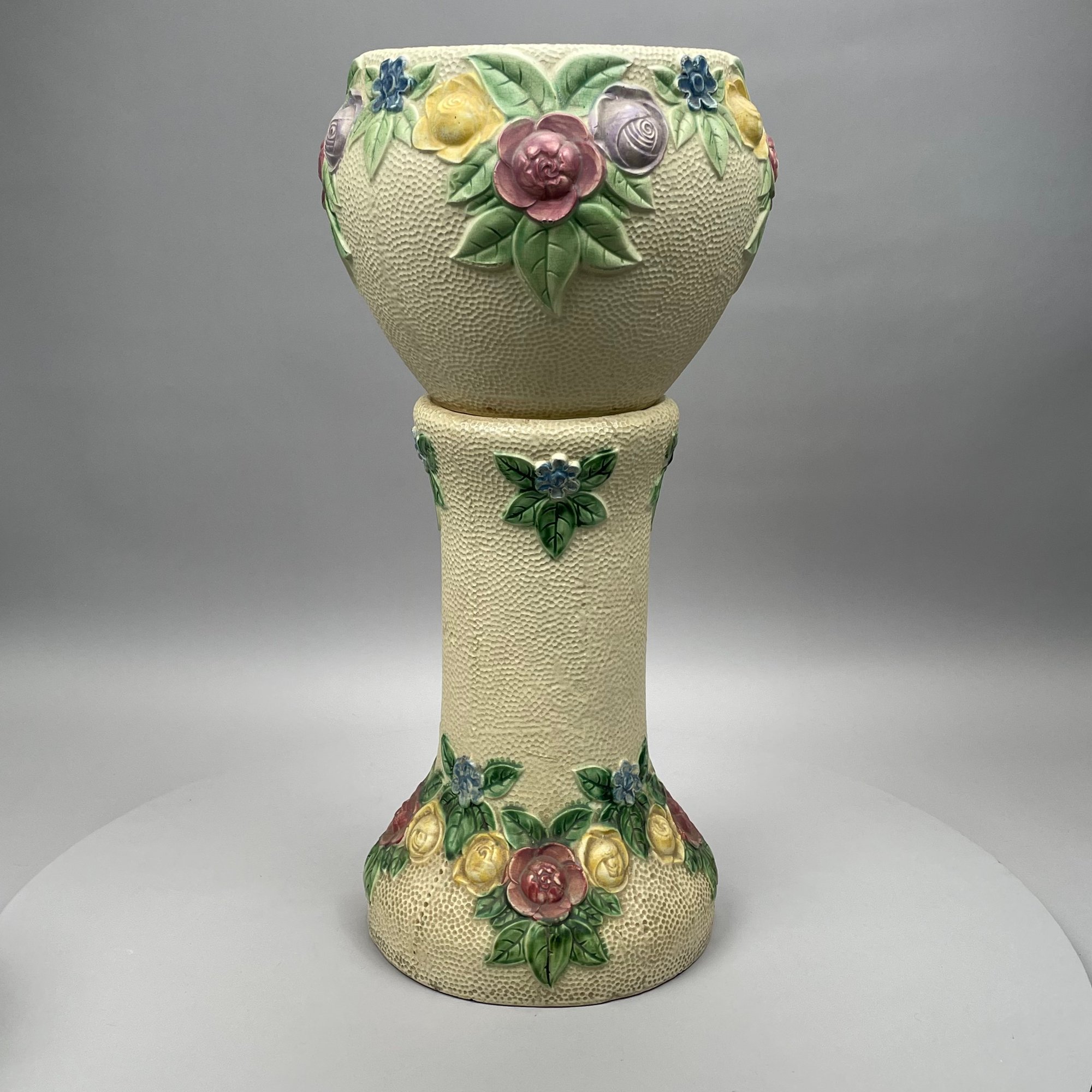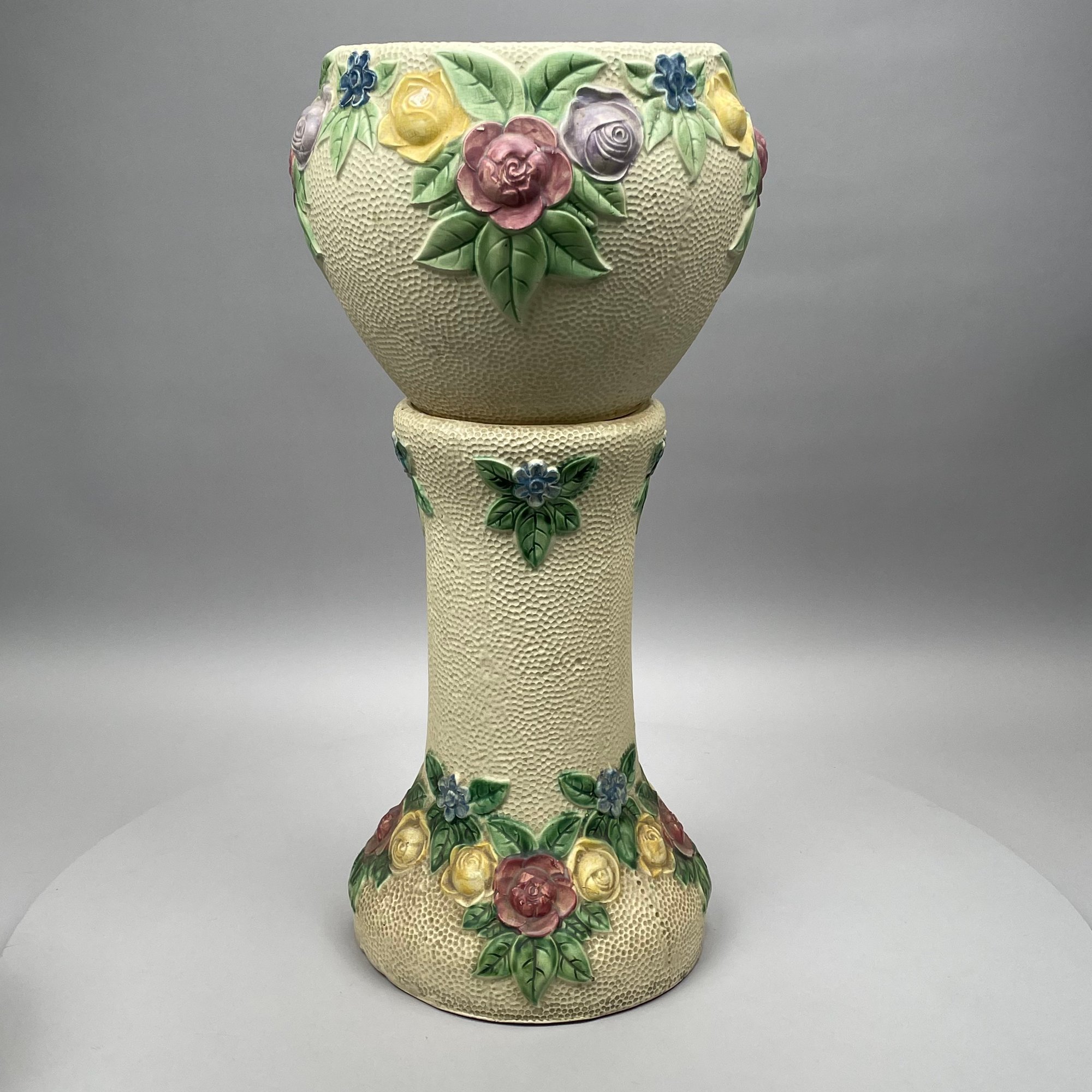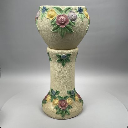 Jardiniere and pedestal: H: 28 in., Diam: 12.625 in.