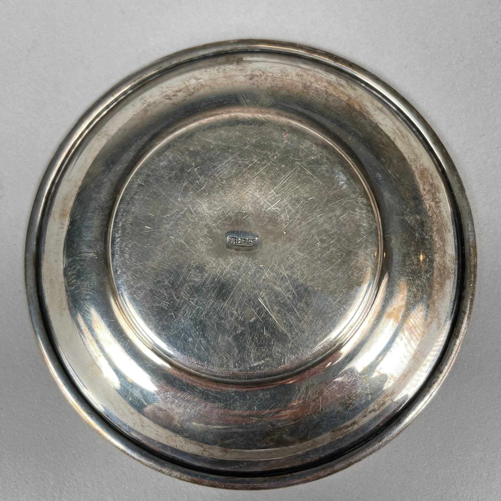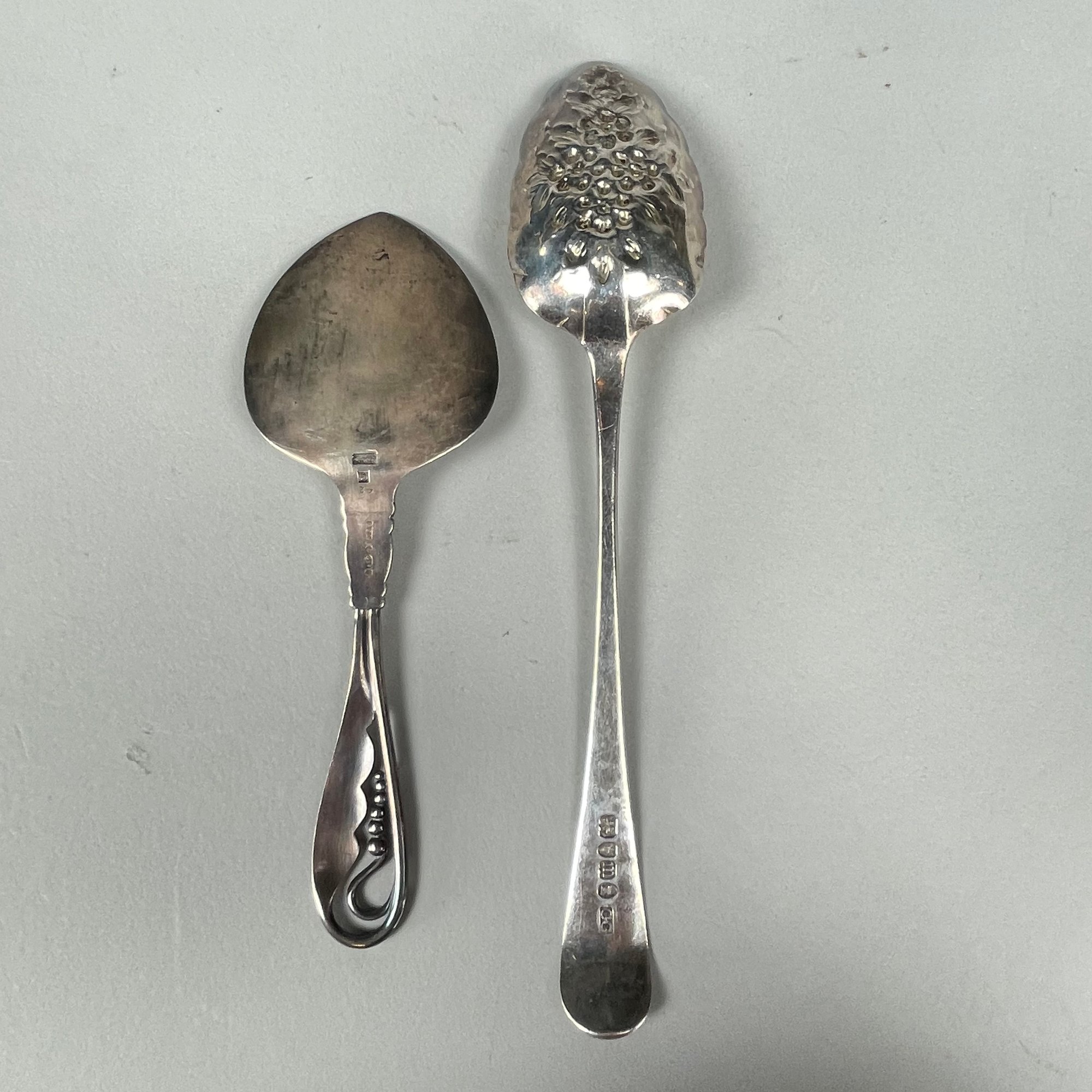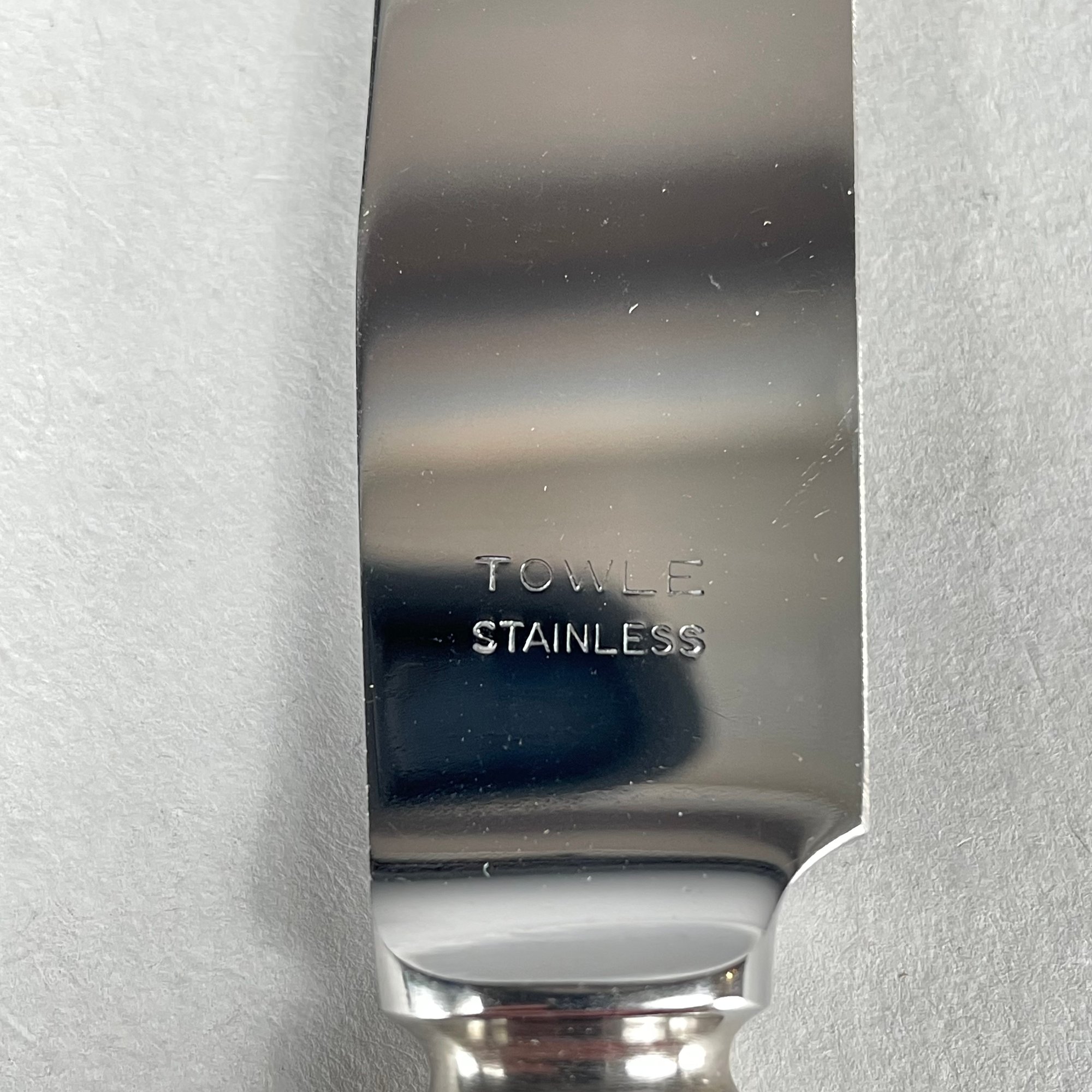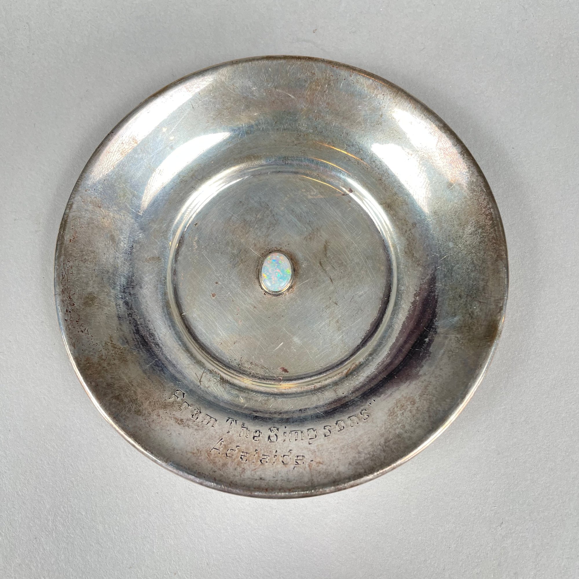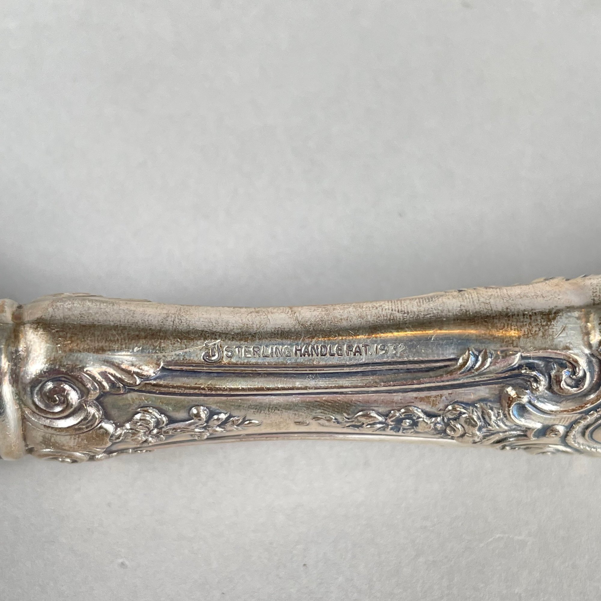 Group of Australian, Danish, English and American Sterling Silver Flatware and Table Objects. Comprising an Australian dish mounted with a moonstone, engraved "from The Simpsons Adelaide," marked "STG.SIL.;" a Danish Georg Jensen pastry server, 1933-44; an English silver-gilt circular box; a George III later repousse dessert spoon, George Gray, London, 1787; a Tiffany & Co. scallop shell nut dish; a Lunt infant's bunny fork and spoon; and a set of ten Towle Silversmiths 'King Richard' pattern dinner knives, various monograms, all marked. (16)