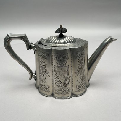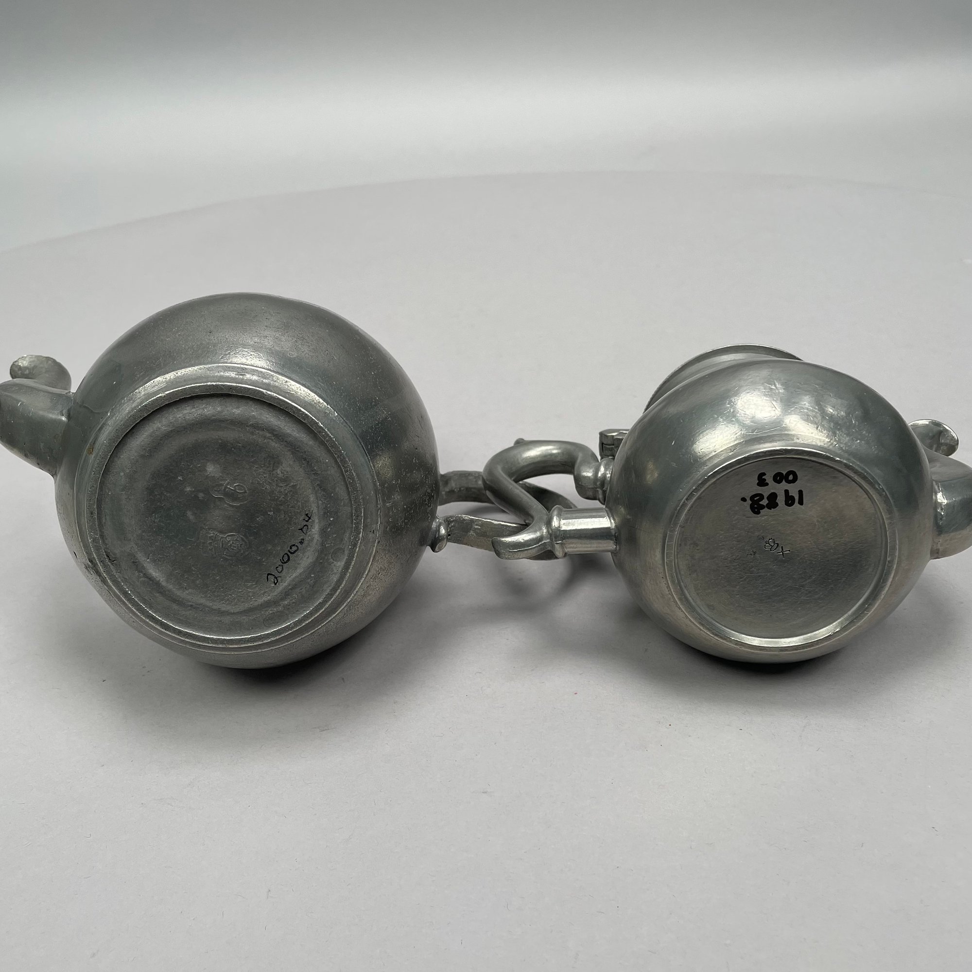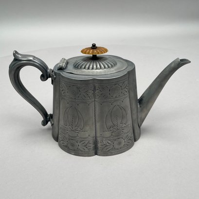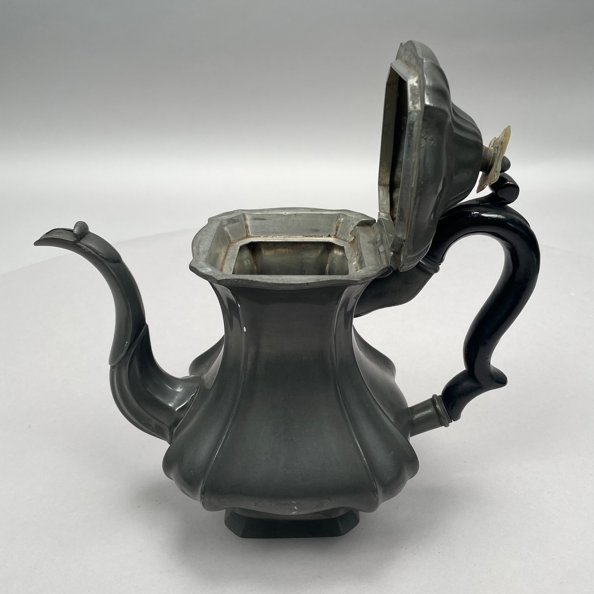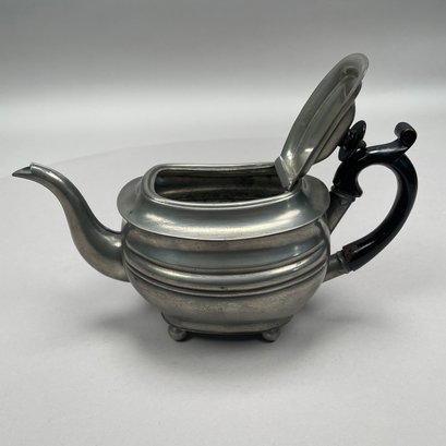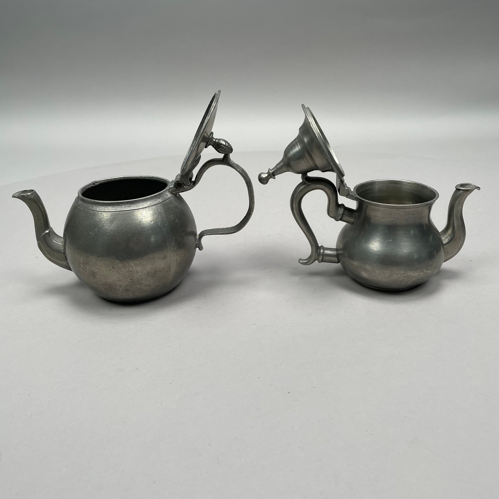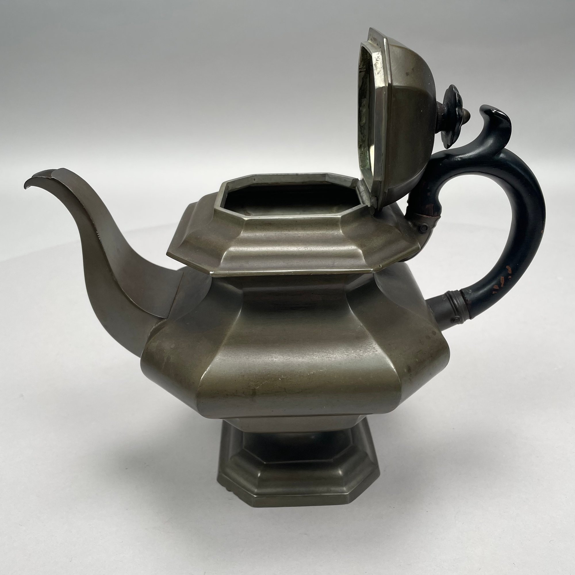 Group of English and Continental Pewter and Silverplate Wares, Late Eighteenth-Nineteenth Century. Comprising a Continental globular teapot, a Victorian teapot in the Queen Anne style, a teapot with seamed spout, two James Dixon & Son teapots, and two silverplate teapots (one worn). (7)