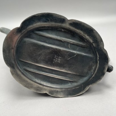 Globular teapot: H: 4.5 in., W: 7.5 in., D: 4 in.