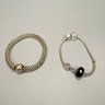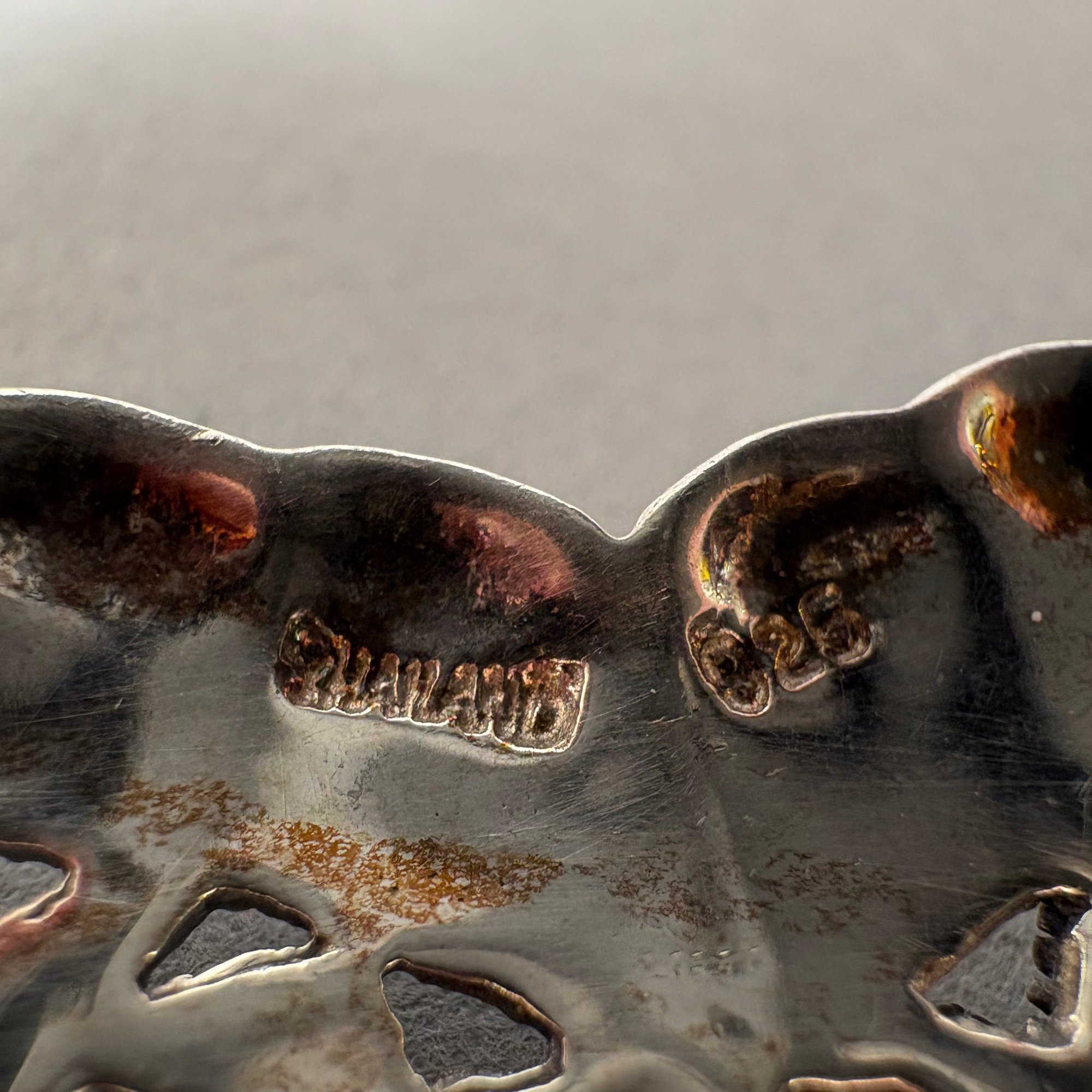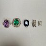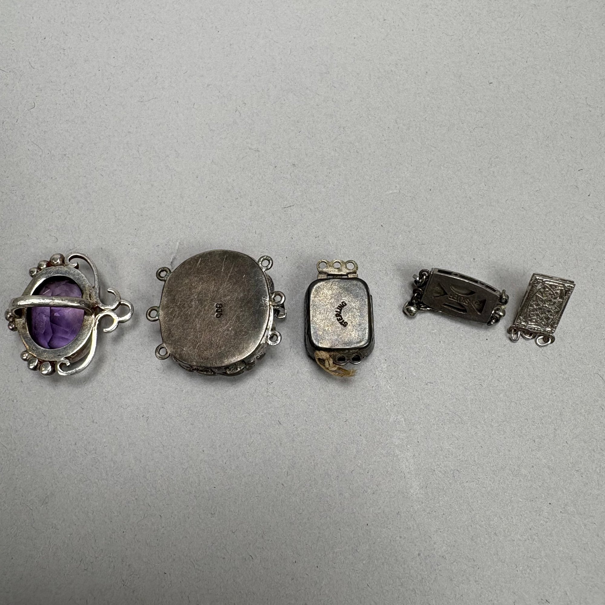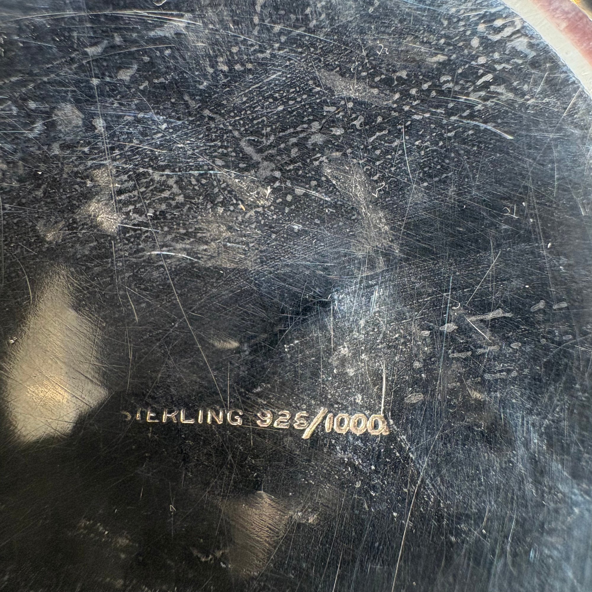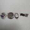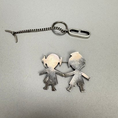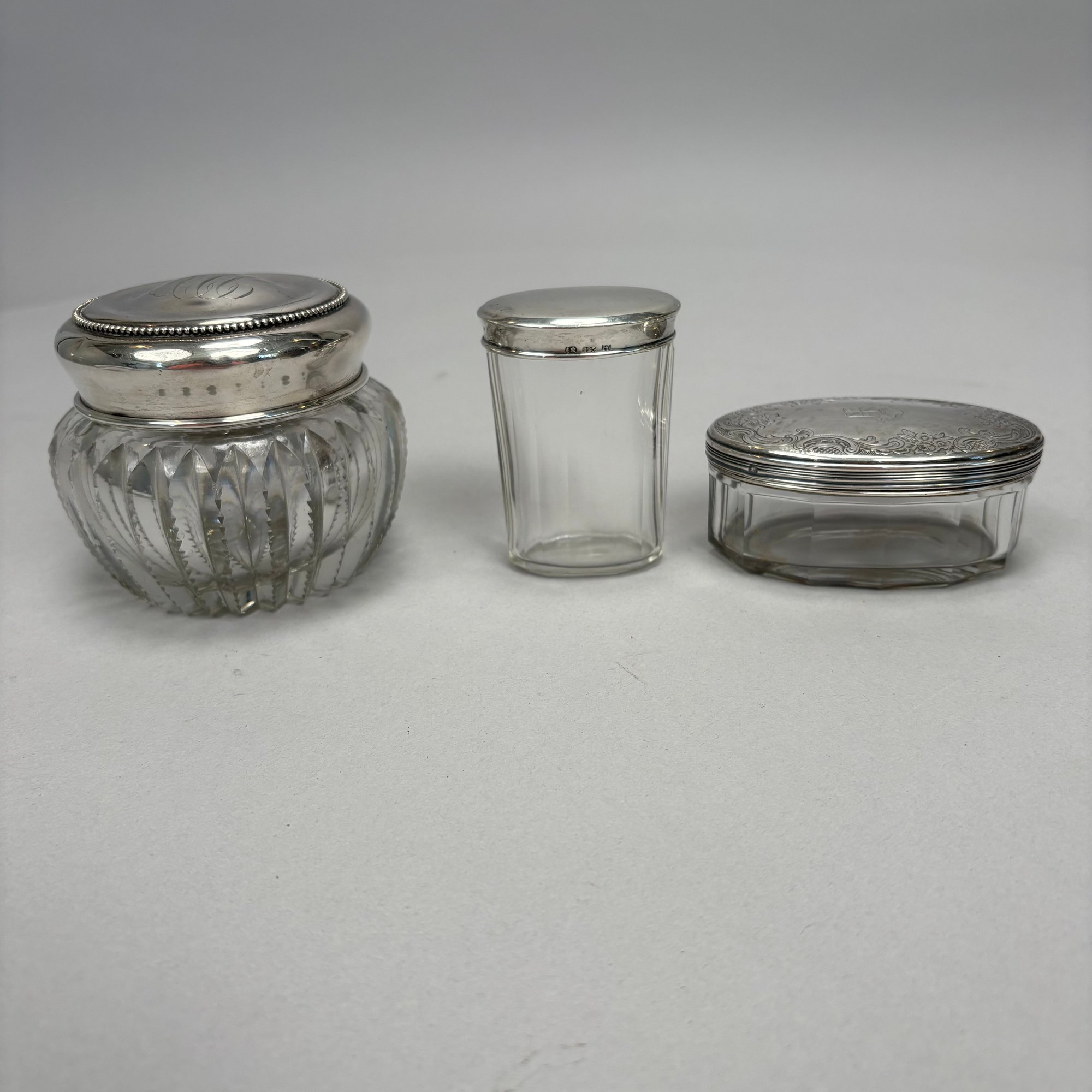 Group of American and Continental Sterling Silver and Silverplate Table Objects and Jewelry. Comprising a powder jar, small jar, armorial trinket box, footed oval salt, silverplate salt mill or grinder, wood picture frame with repousse surround marked "925," a heart-shaped filigree brooch marked "THAILAND 925," a Mexican pin of two children marked "925/ MEXICAO/ TH-53," a pair of screw-back earrings marked "STERLING 0925/ RF.C/ FC OEH MEXICO;" a pair of enamel and silver snowflake screw-back earrings marked "STERLING;" a keychain marked "STEIG STERLING," a silver-gilt clip monogrammed "XMAS," London, 1910, probably William Edward Hurcomb; and a necklace, two bracelets and five glass or semi-precious stone pendants or mounts. (22)