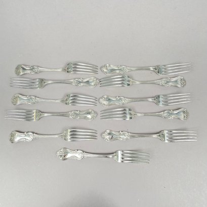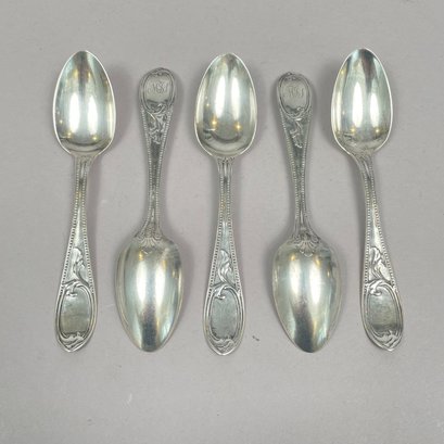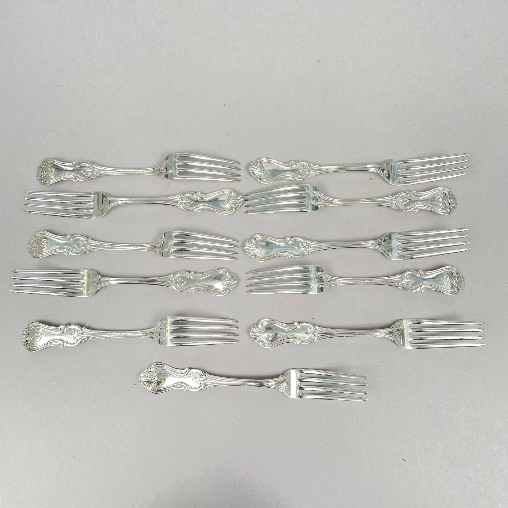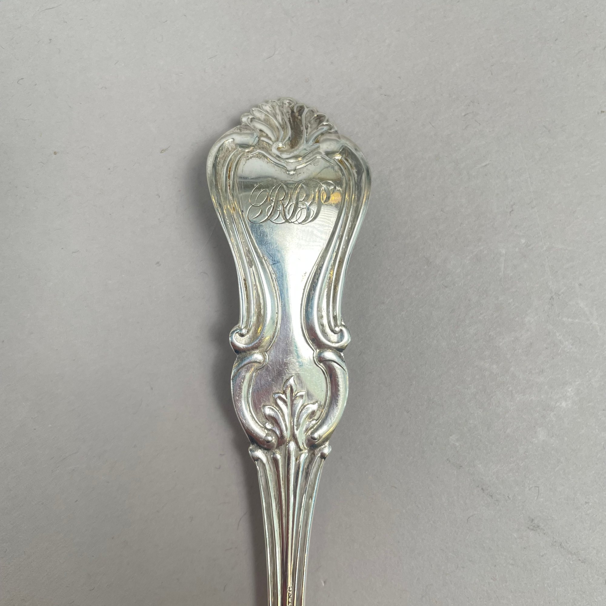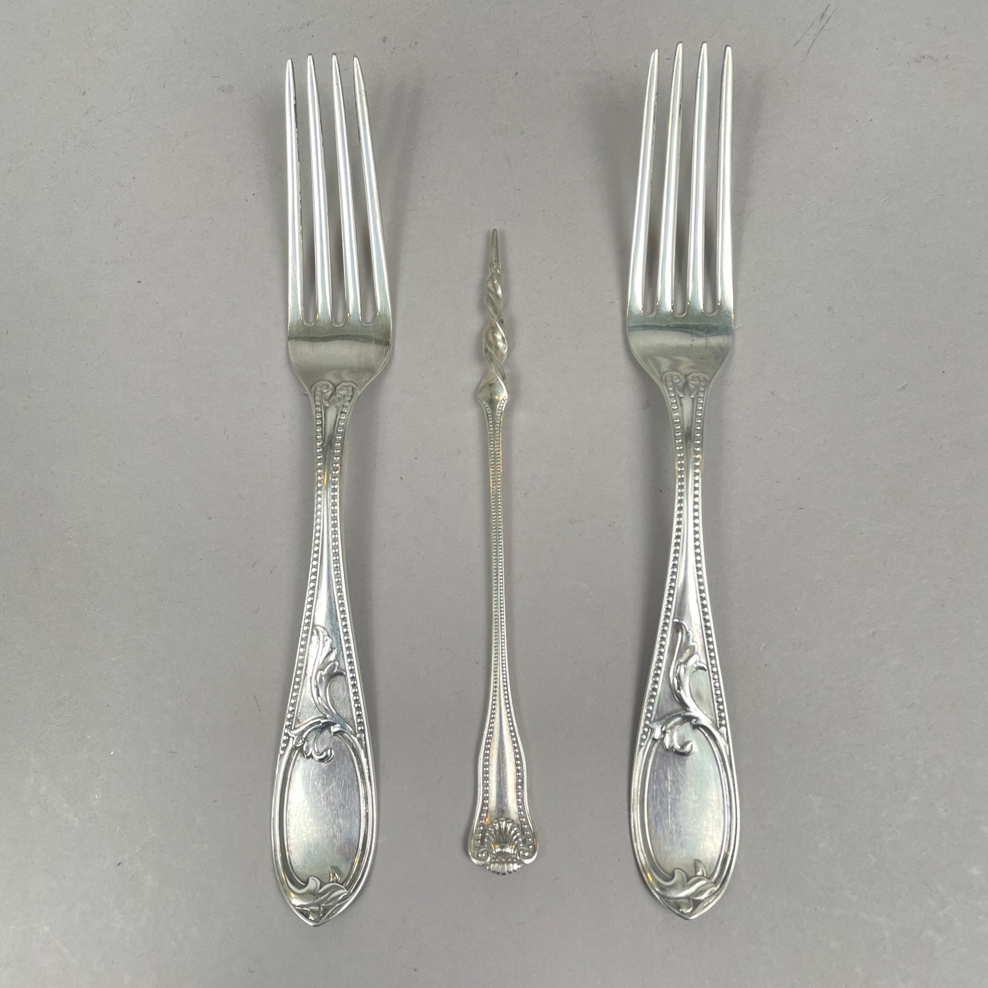 Group of American Coin and Sterling Silver Flatware in Various Patterns, Nineteenth Century. Comprising eleven dinner forks, Lincoln & Foss, Boston Massachusetts, 1848-57; one fiddle-handled tablespoon, and a set of two dinner forks and five teaspoons, E.K. Lakeman, Salem, Massachusetts, circa 1830; a fiddle- handled tablespoon applied with a shell, J.B. Jones, Boston, circa 1830; and a nutpick, Bigelow & Kennard & Co., Boston, after 1867. (21)