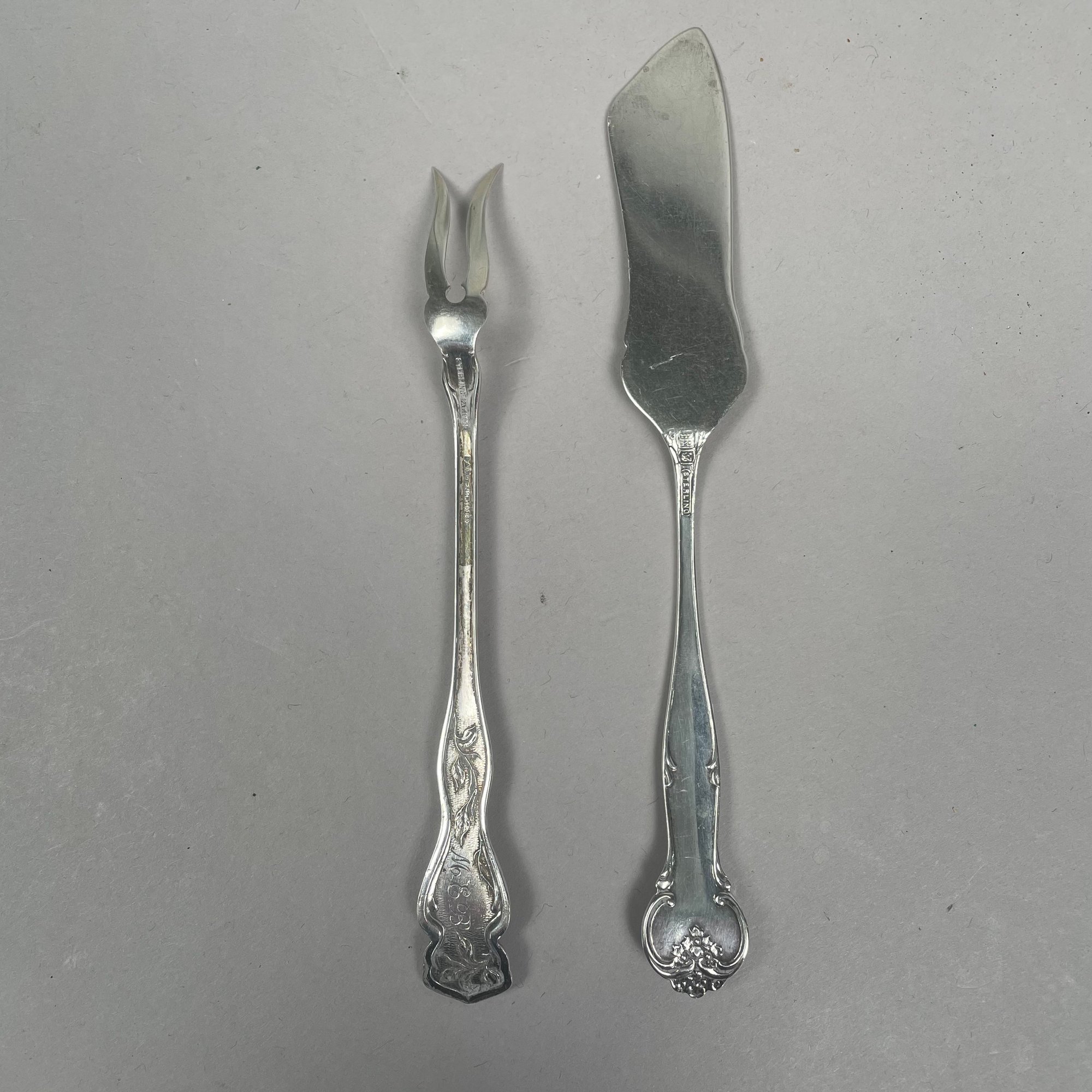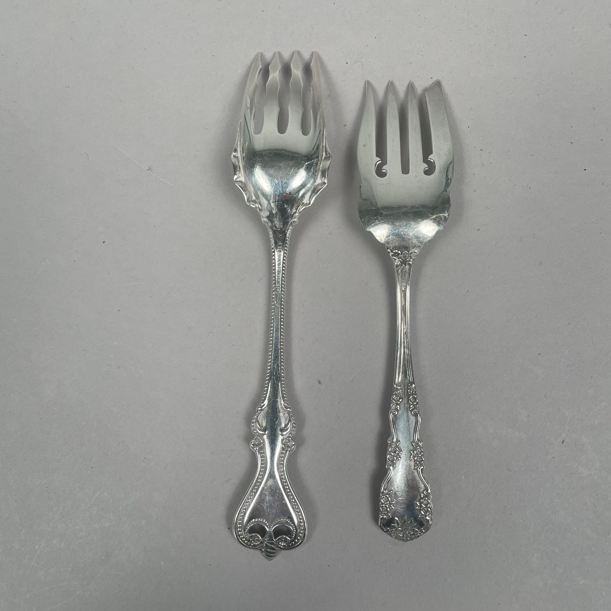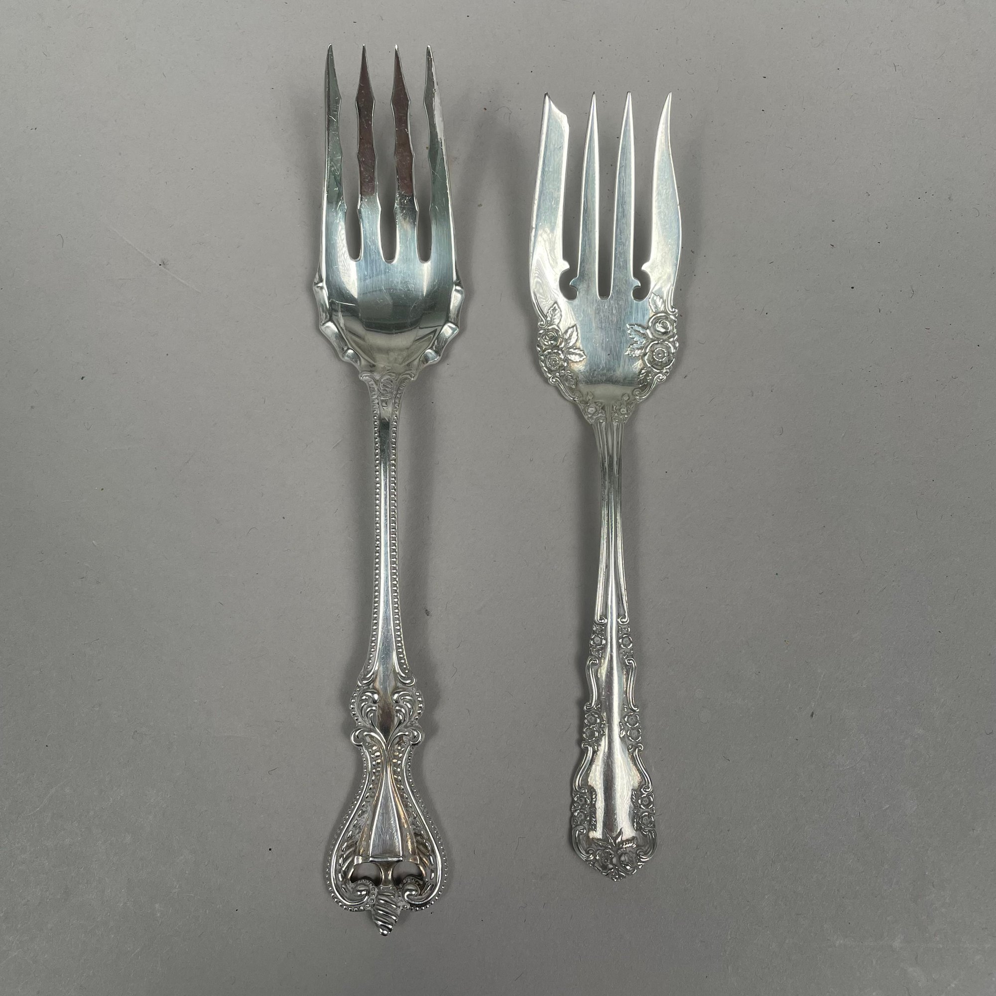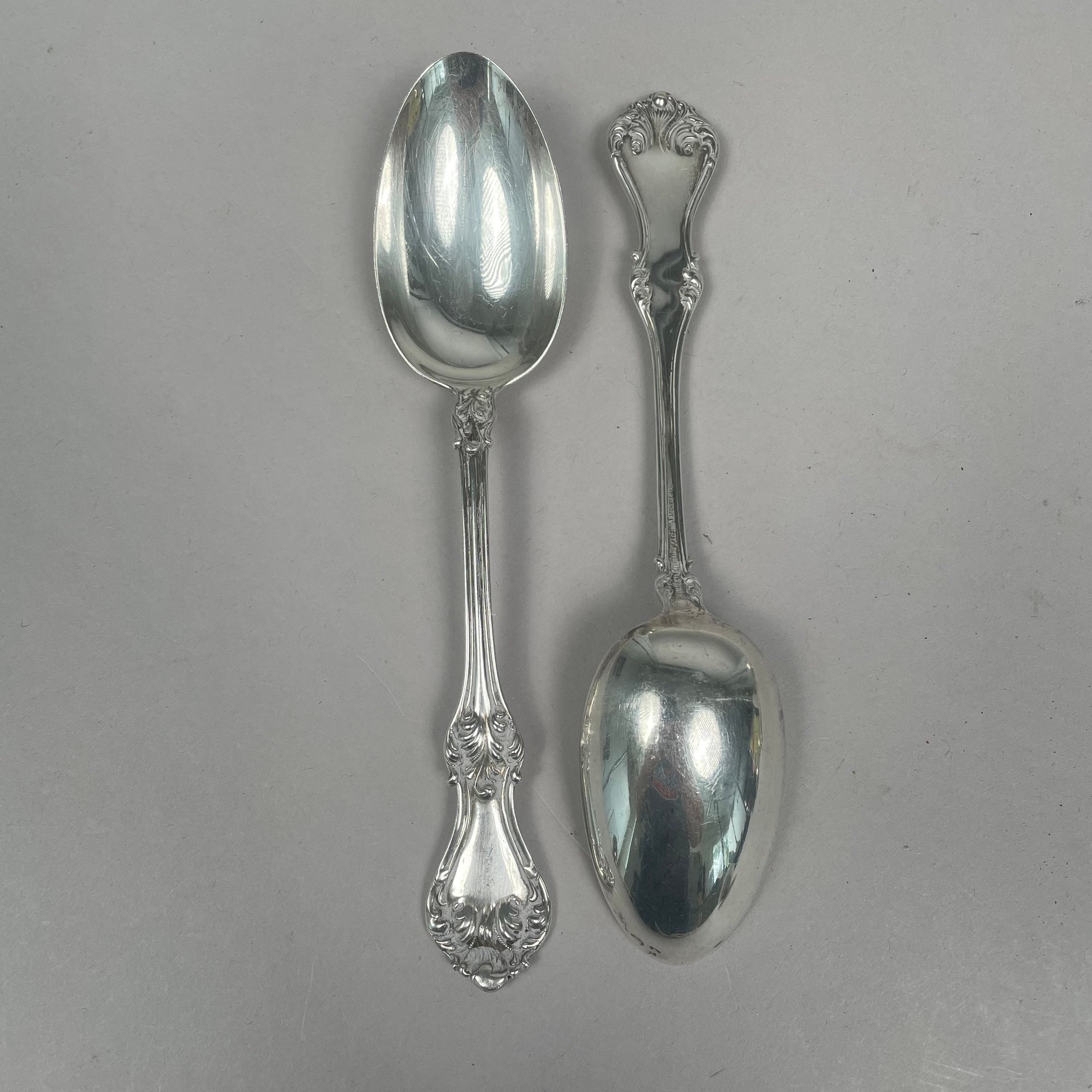 Group of American Sterling Silver Flatware, Twentieth Century. Including a pair of 'Old English' pattern tablespoons designed by George P. Tilton, Towle Silversmiths/ Mfg. Co., Newburyport, Massachusetts, 1892-1996; and a pair of 'Corinthian' pattern tablespoons designed by Theodore Bender, Roger Williams Silver Co., introduced in 1902, various monograms and marks. (14)