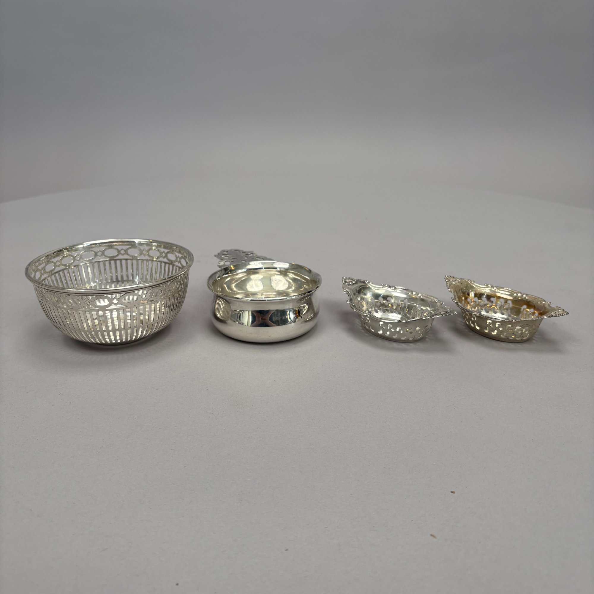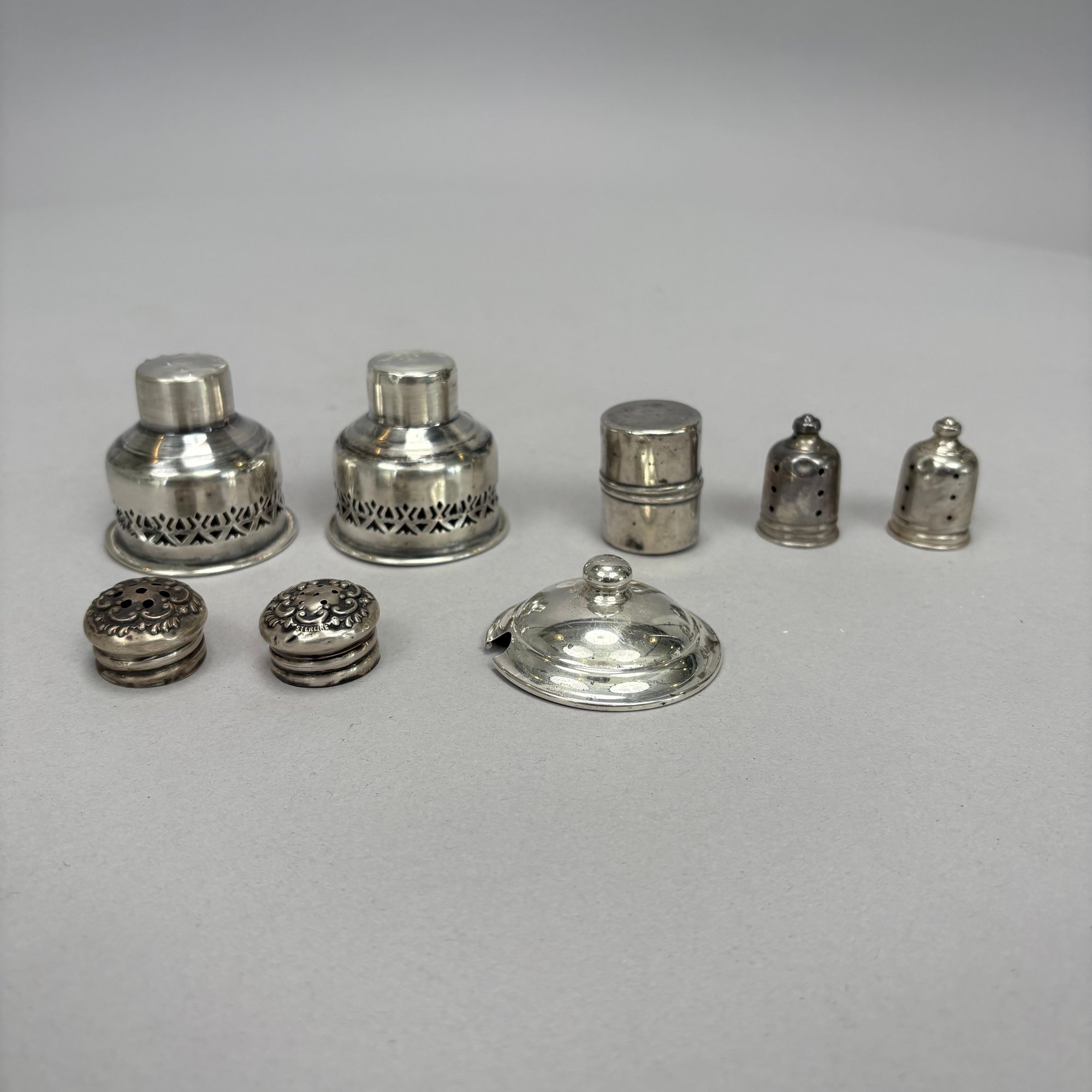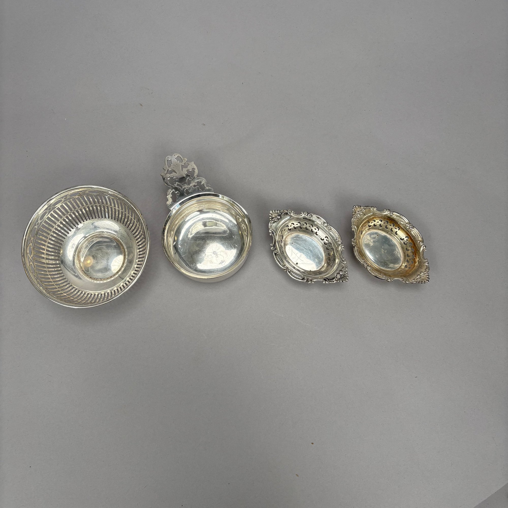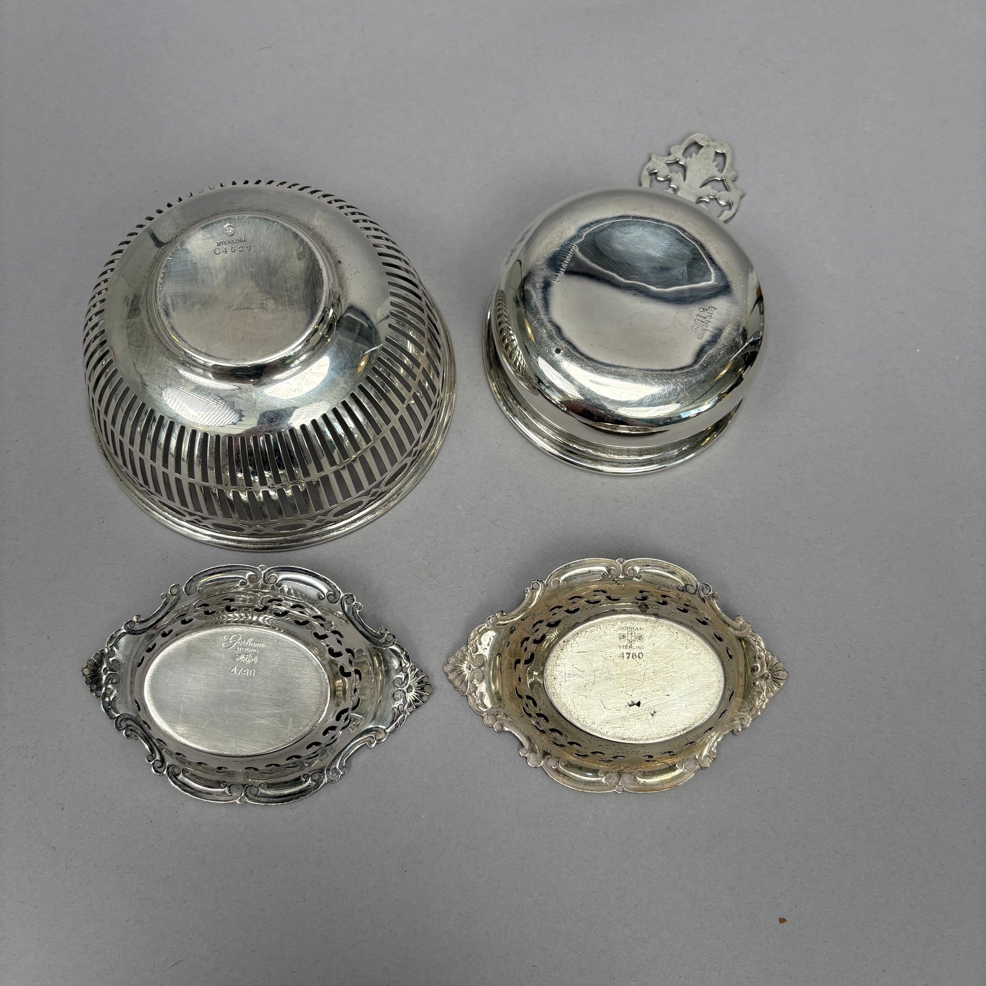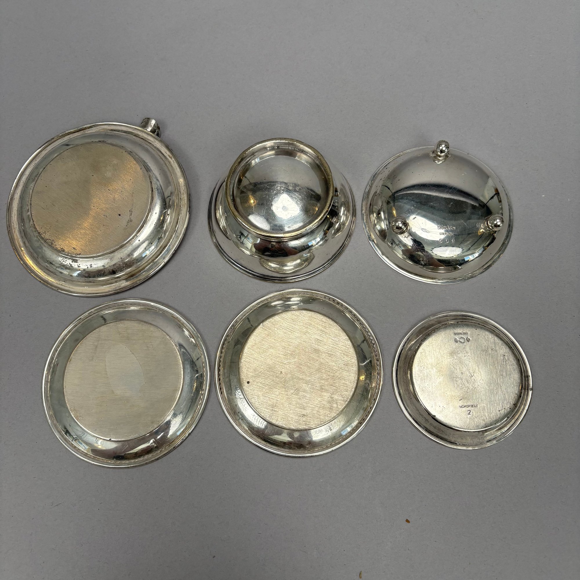Group of American Sterling Silver Table Objects, Various Makers, 20th Century. Comprising a children's porringer, Udall & Ballou, New York, New York; a pair of boxed salt shakers, Wolfenden; and assorted bowls, liners, cups, nut dishes, shakers and casters, pair of salt cellars, vases and scrap items.