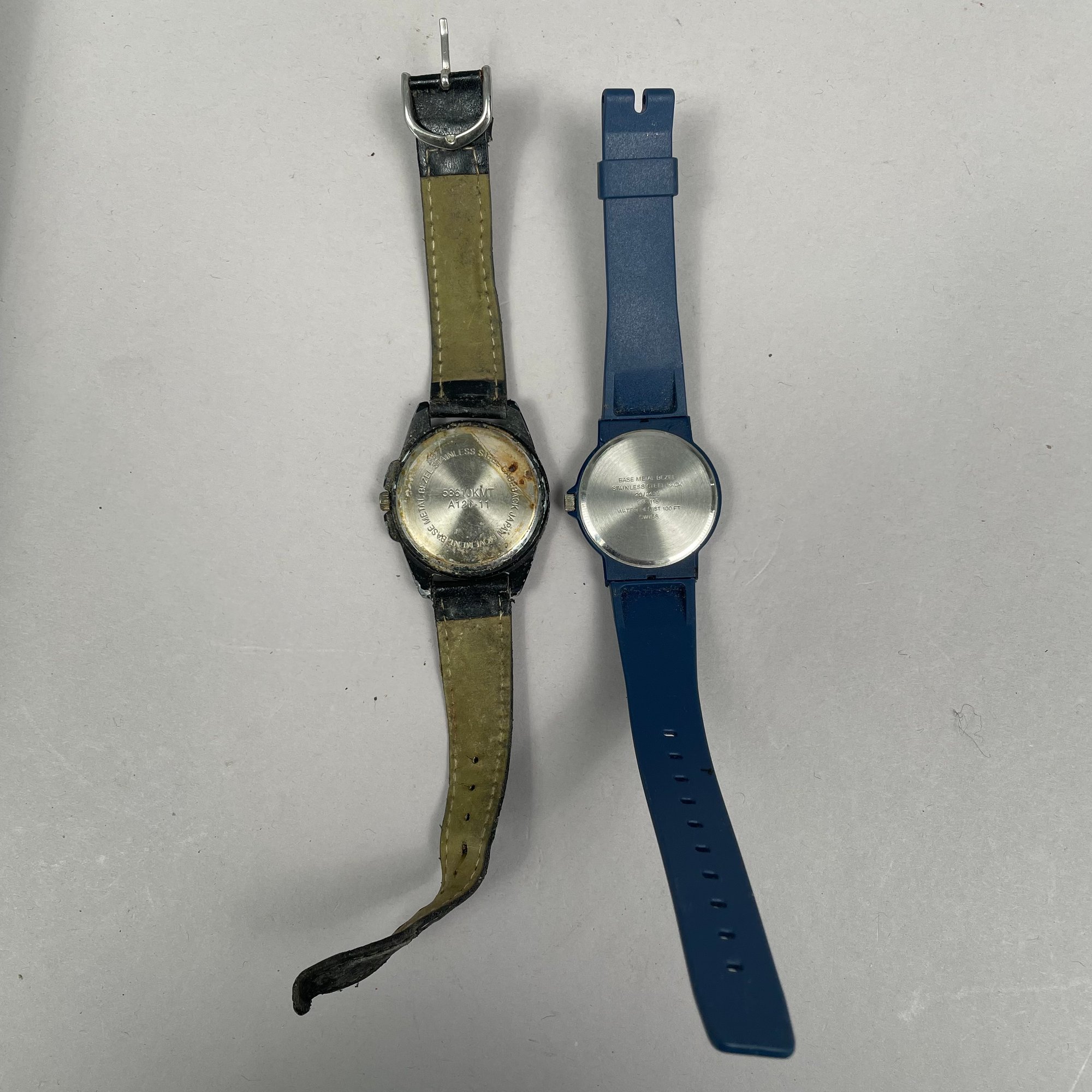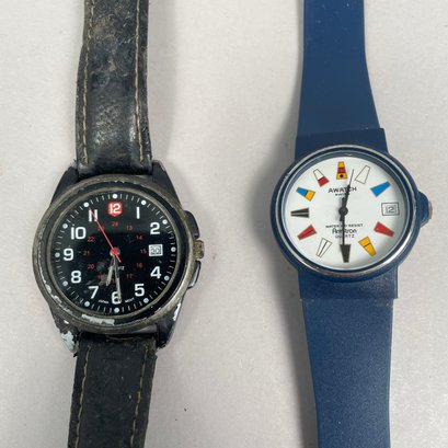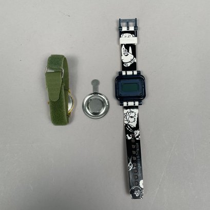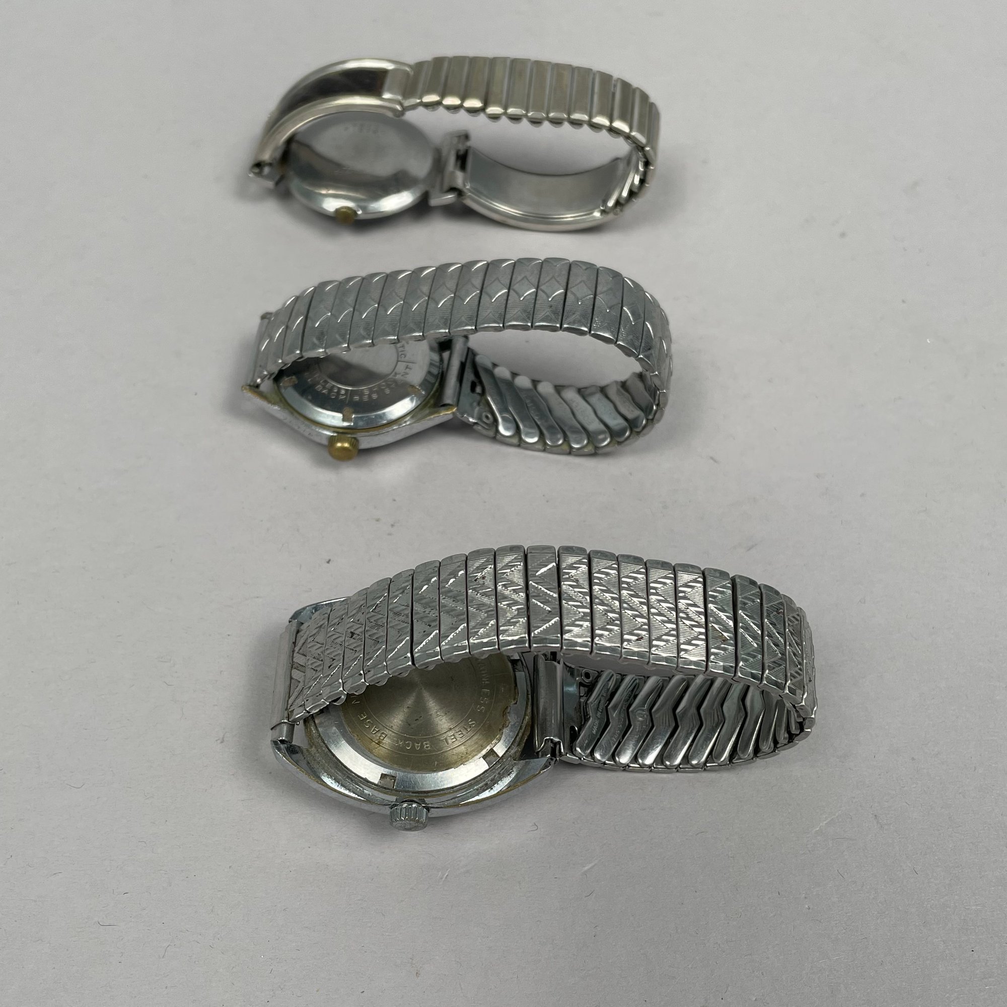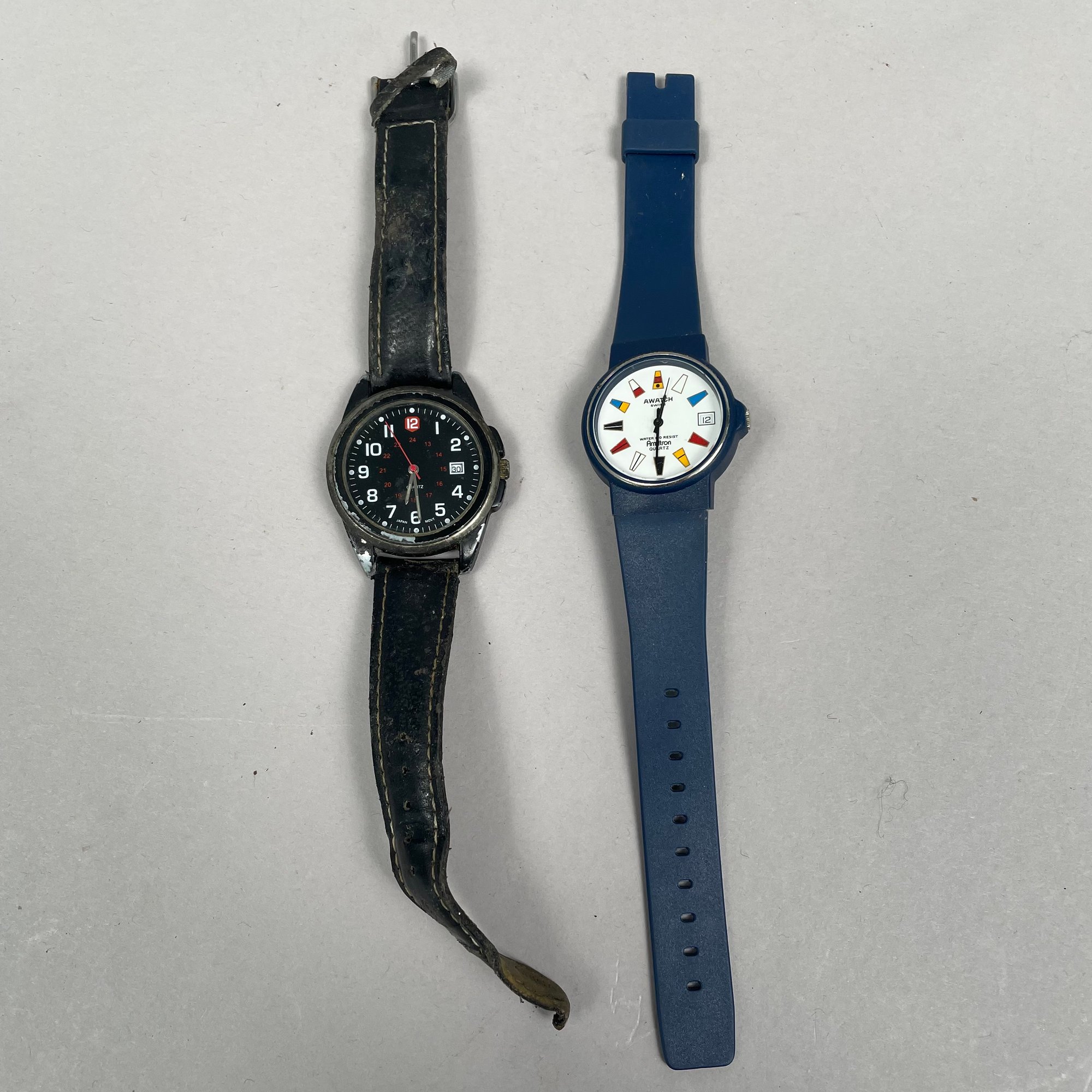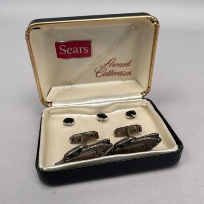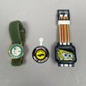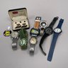 Group of Folding and Other Pocket Knives. Including an English horn-handled fleam or blood-letting knife, James Fox, Sheffield; and a knife with antler handle and leather holder, together with group of Gentleman's wrist watches, Boxed Pair of Sears T-Bird Cufflinks and Three Collar Studs.