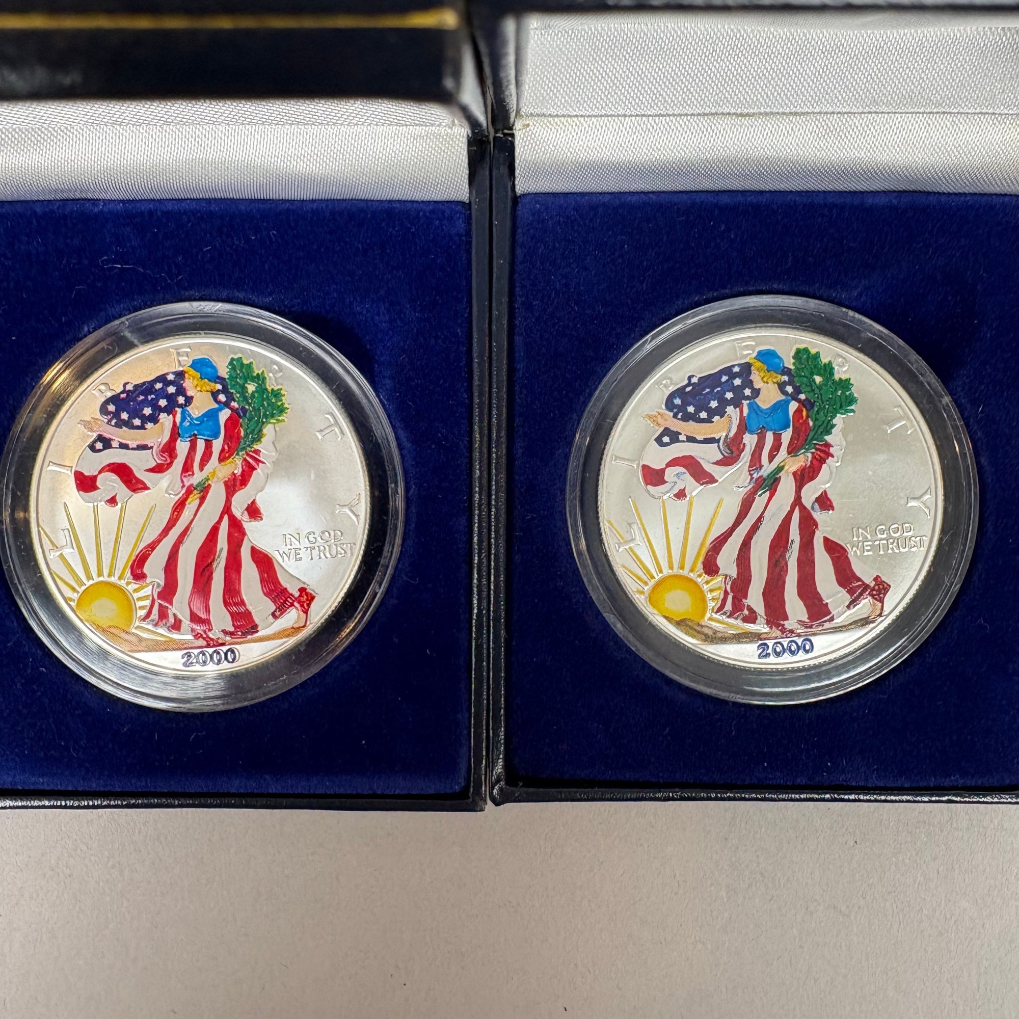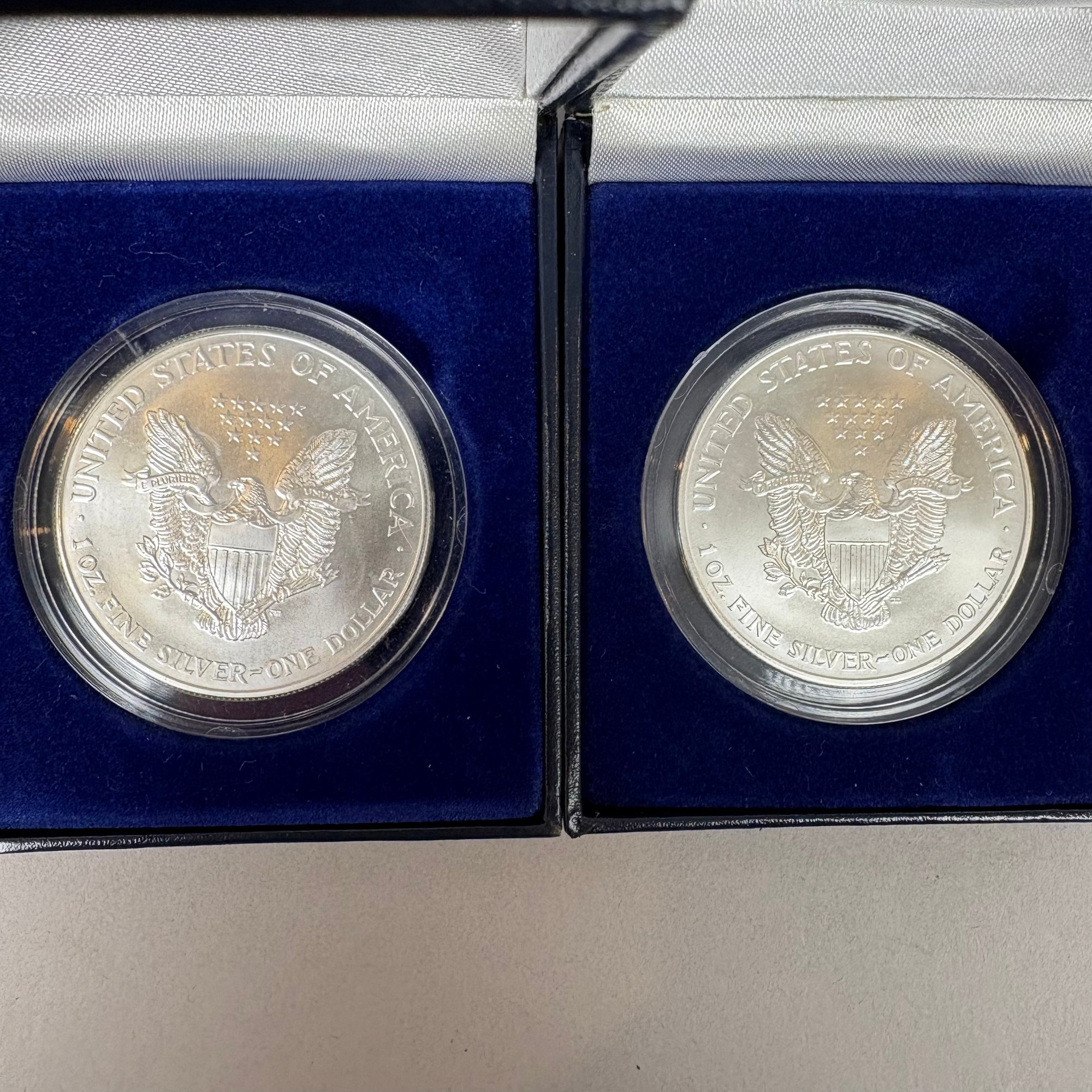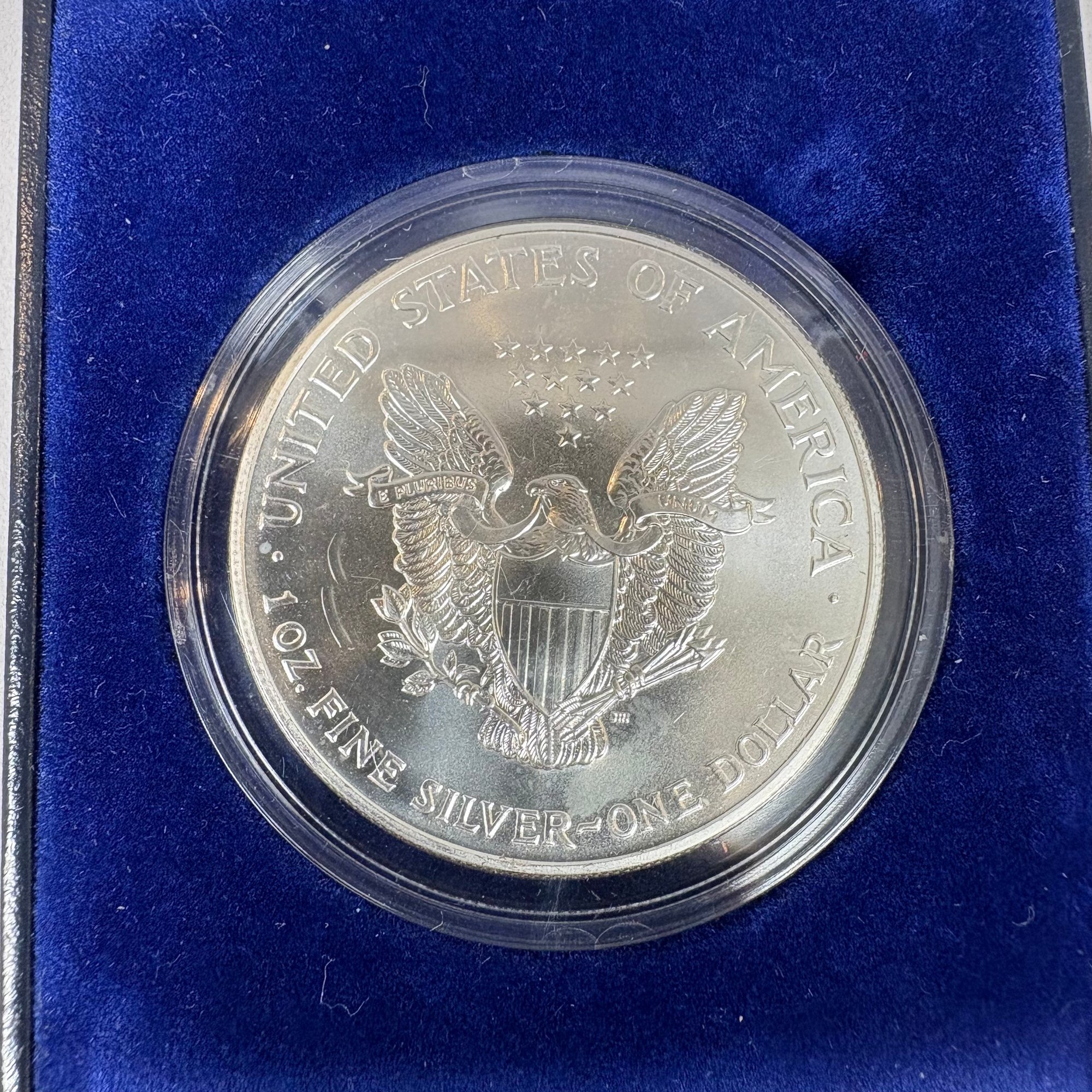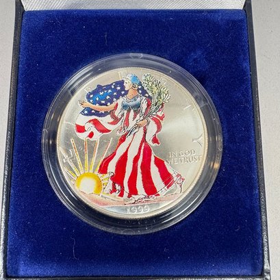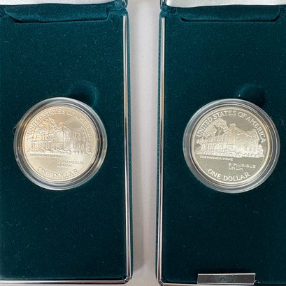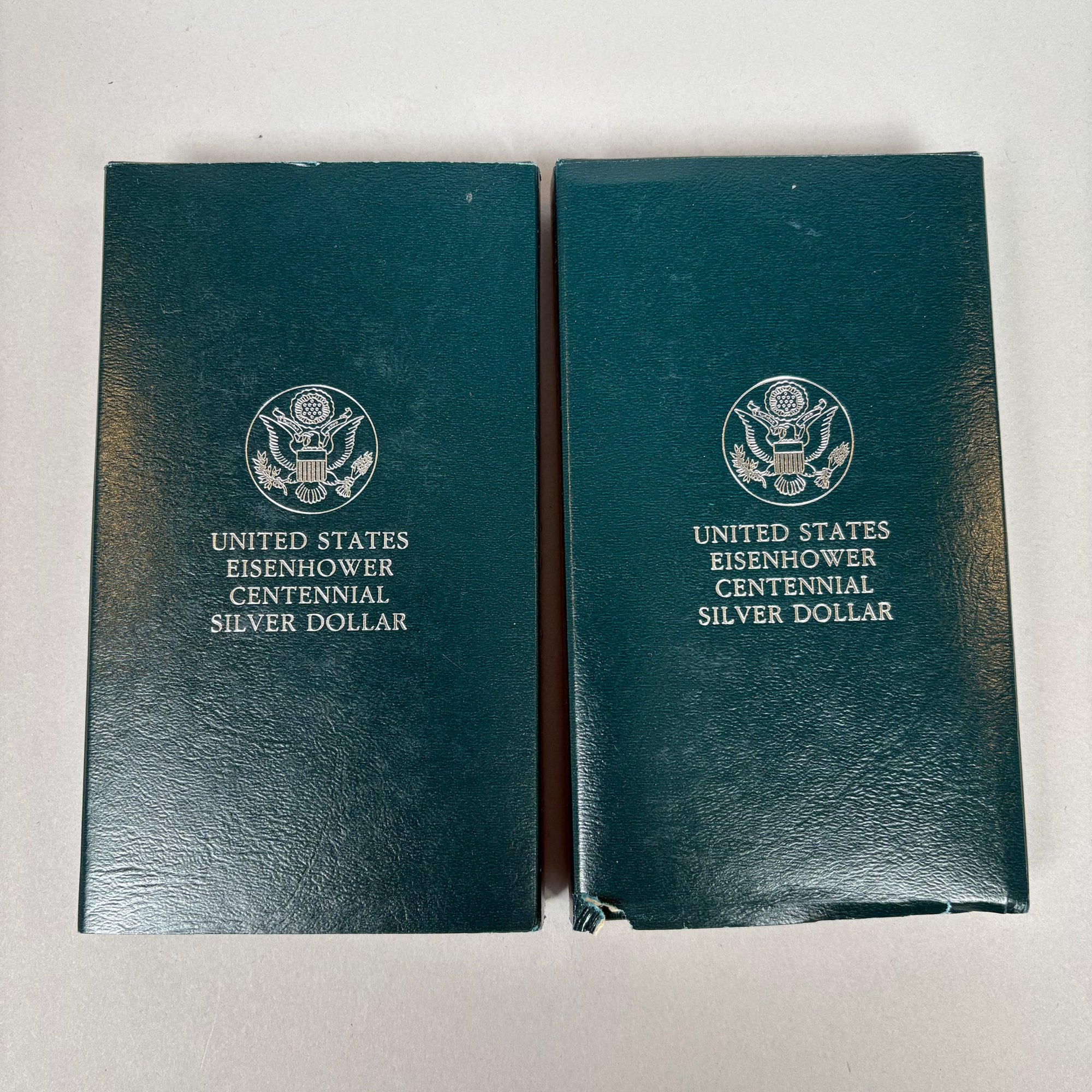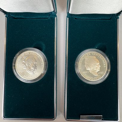 Group Of Assorted United States Coins and a Silver Commemorative Ingot. Including two Eisenhower centennial silver dollars; 1999 American Eagle; two 2000 American Eagles; Bicentennial sterling silver commemorative ingot (1.87 troy oz,) and cent albums (3).