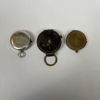 Abercrombie & Fitch Co. compass: H: 3.25 (Including ring hanger), Diam: 2.125 in., Depth: 0.75 in.