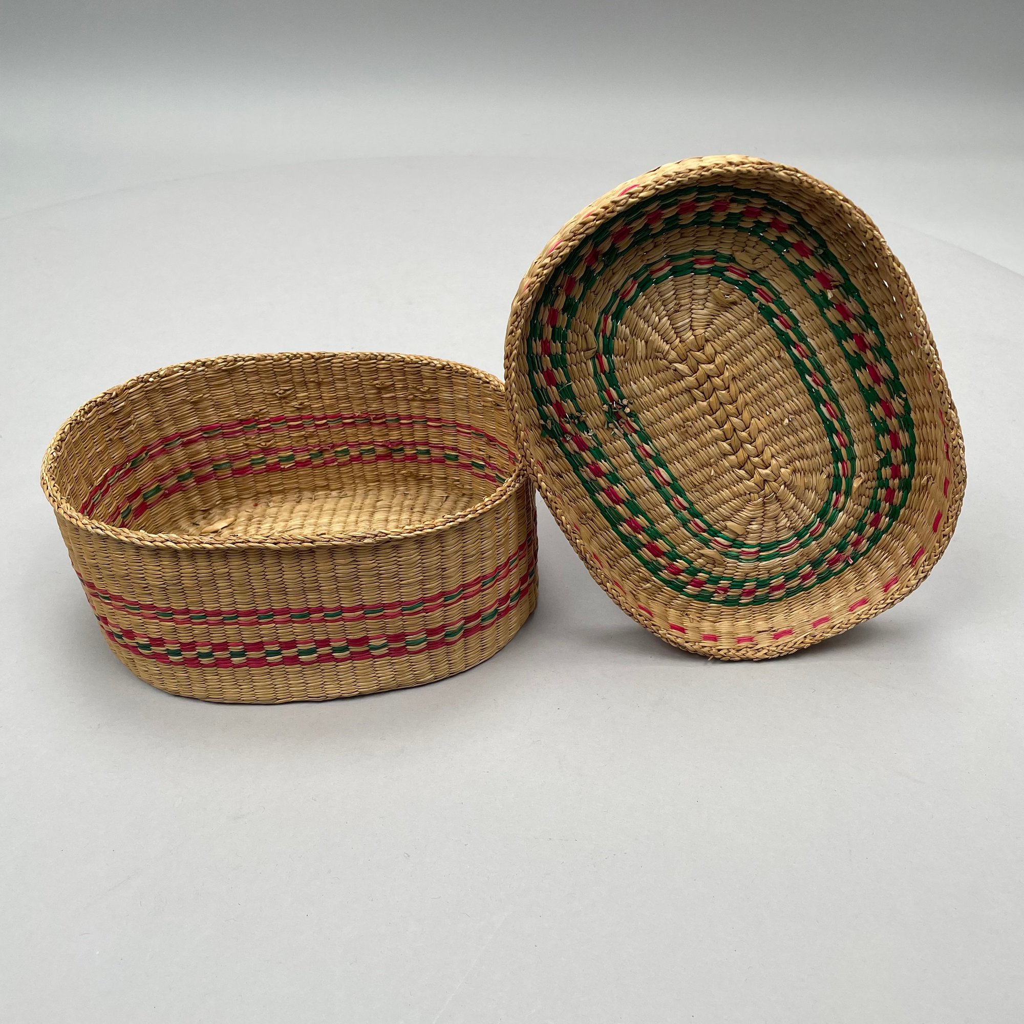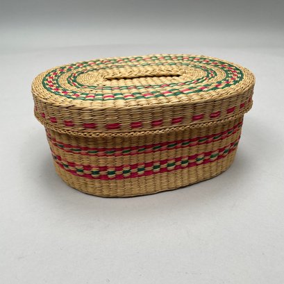 Woven basket: H: 3.375 in., W: 7.75 in., D: 5.75 in.