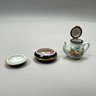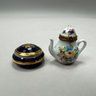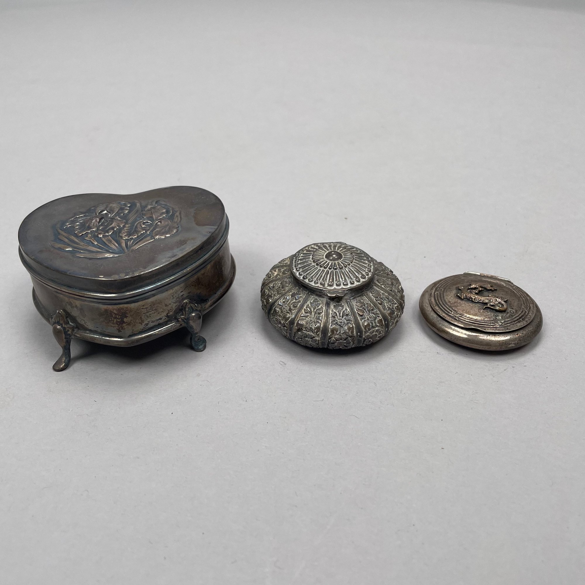 Heart-shaped trinket box: H: 1.375 in., W: 2.625 in., D: 2.5 in.