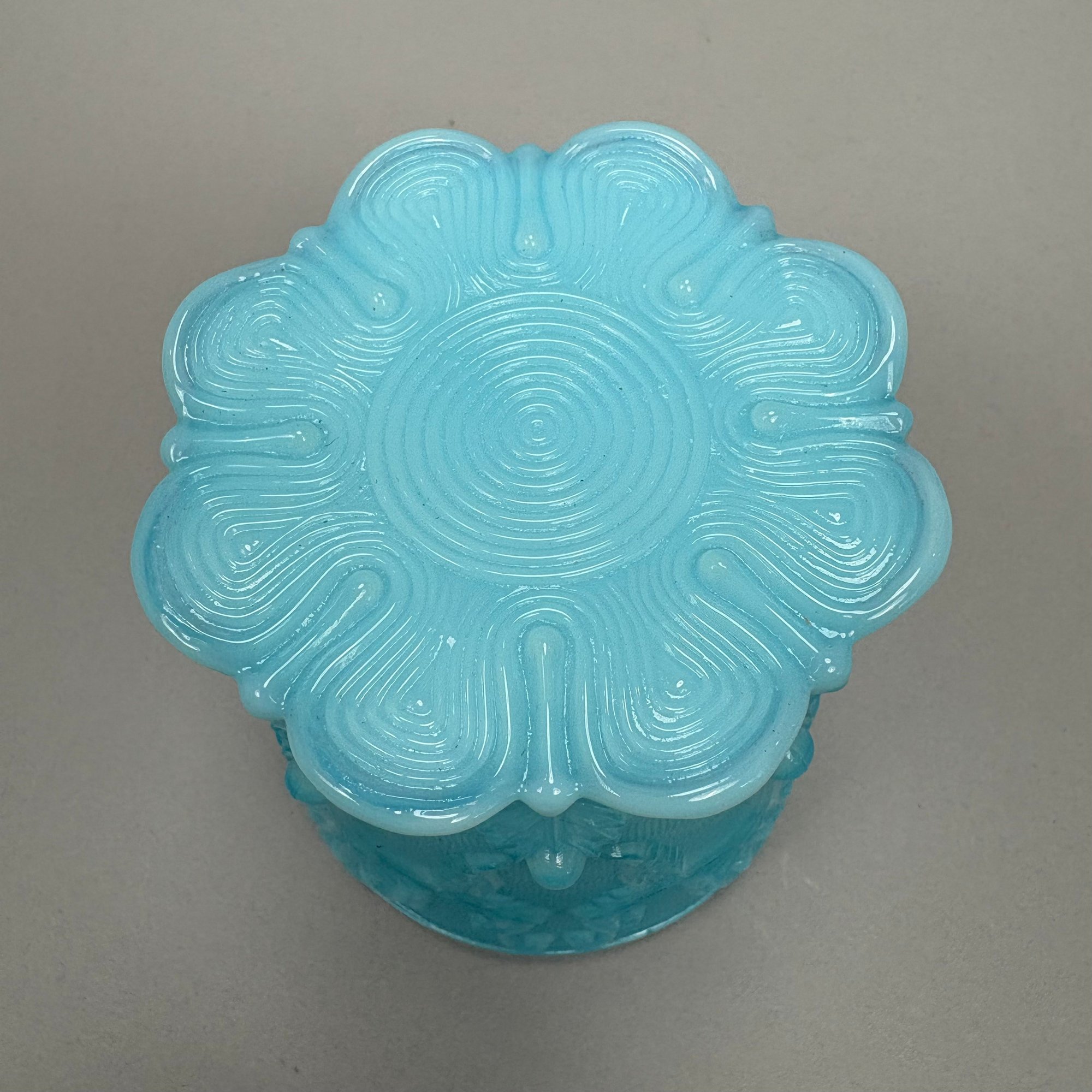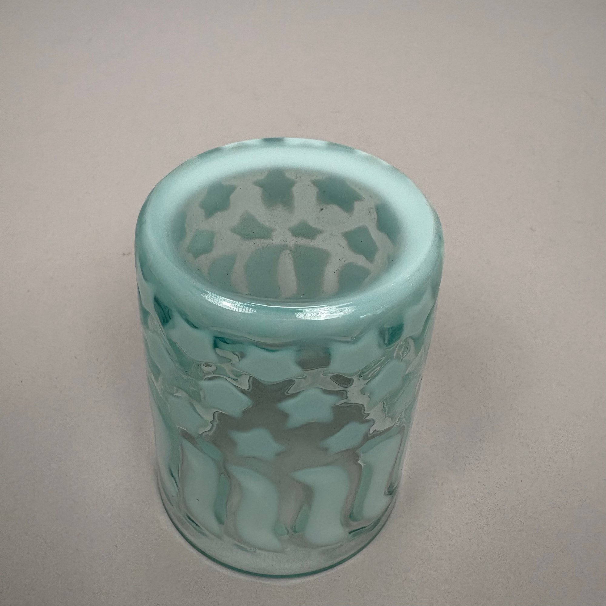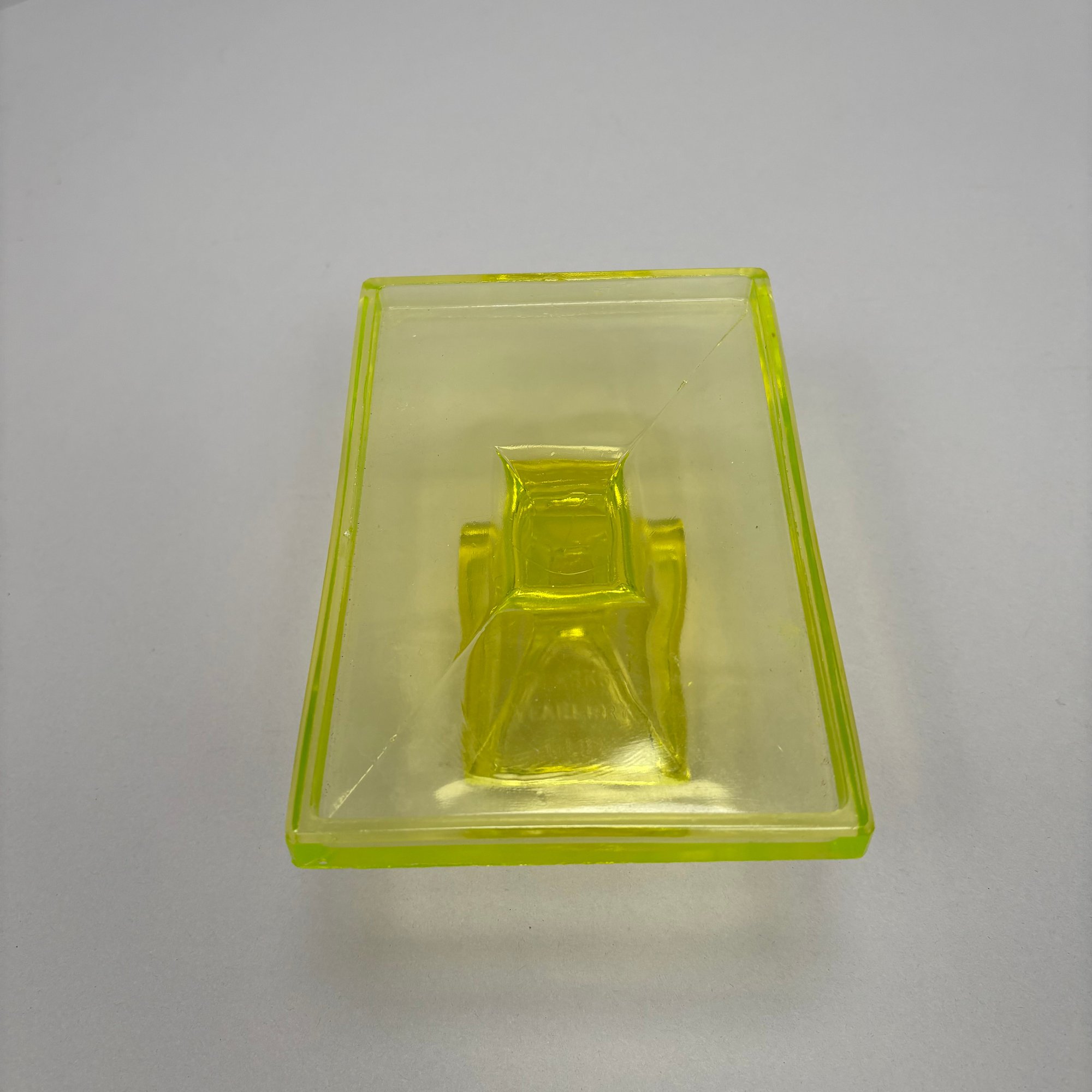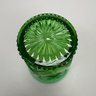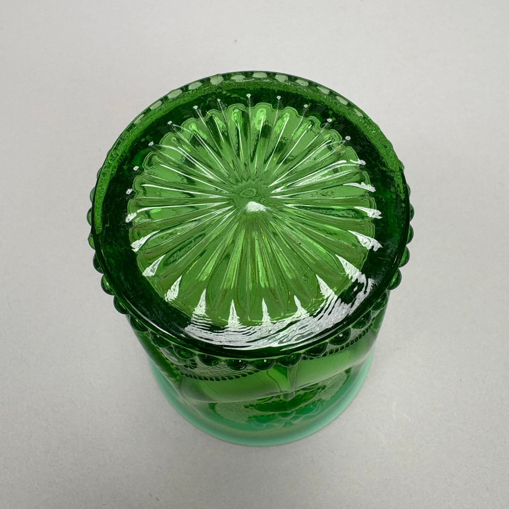 Group of Early American Pattern Glass, 20th Century. Comprising a yellow-green (uranium/ Vaseline glass) Clarks Teaberry gum advertising stand for the D.L. Clark Co., Pittsburgh, Pennsylvania, circa 1930, molded on each side of the base "CLARKS TEABERRY GUM;" and five pattern glass tumblers including an opalescent blue 'Stars and Stripes' tumbler, Fenton Art Glass Co., Williamstown, West Virginia / L.G. Wright Glass Co., New Martinsville, West Virginia. (6)