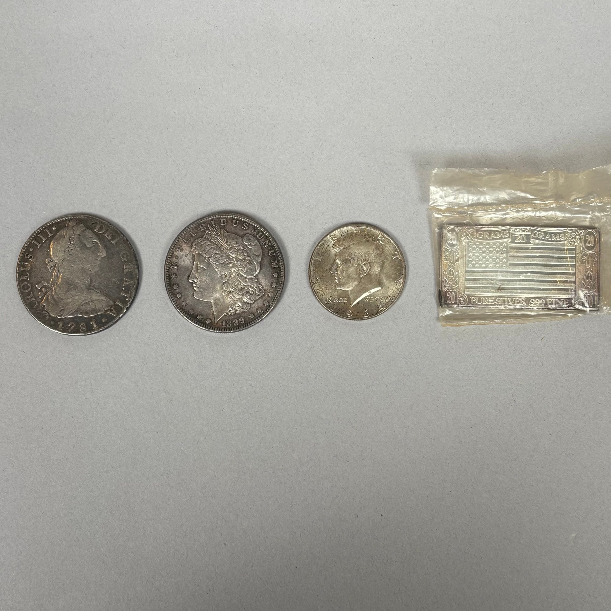Group of Foreign and United States Coins. Including a 1781 eight Reale, Mexico; and an 1826 capped bust half dollar. (18)