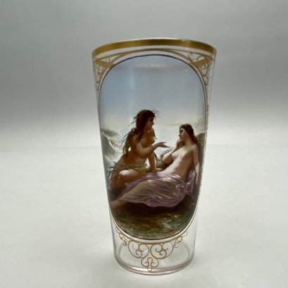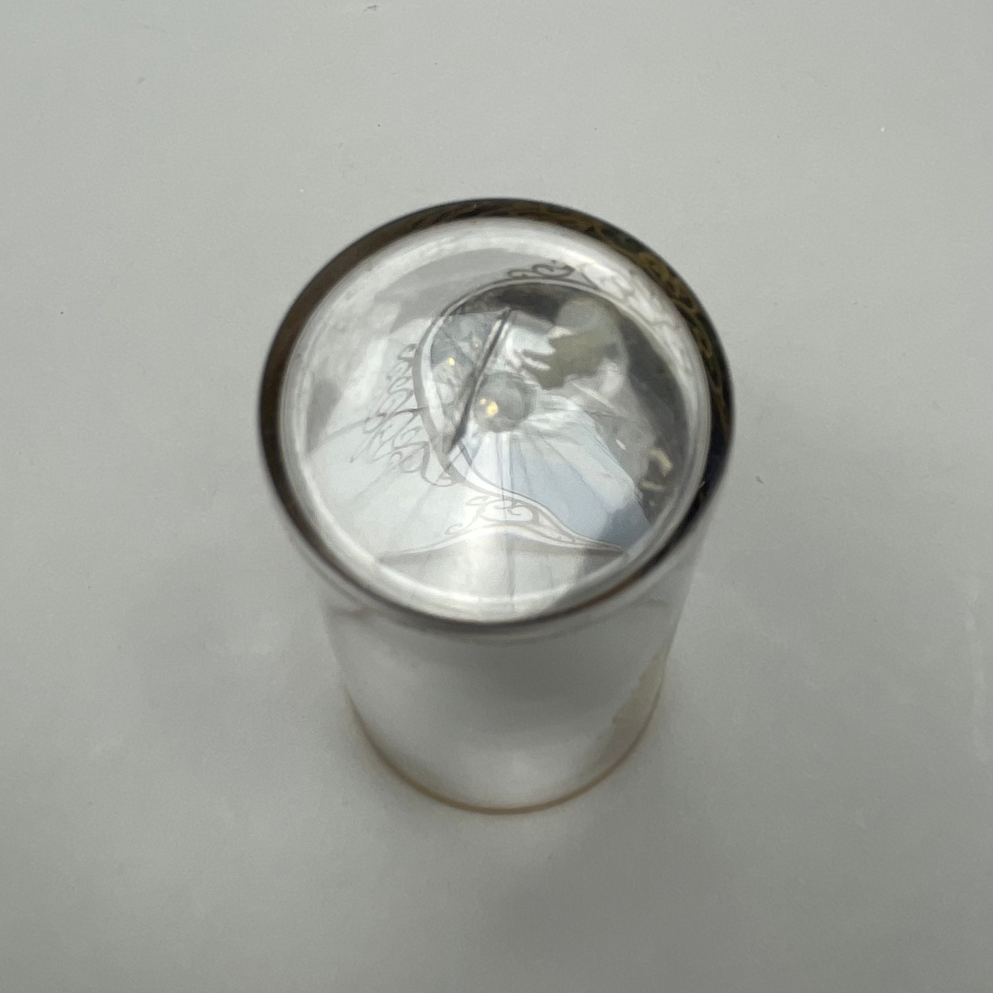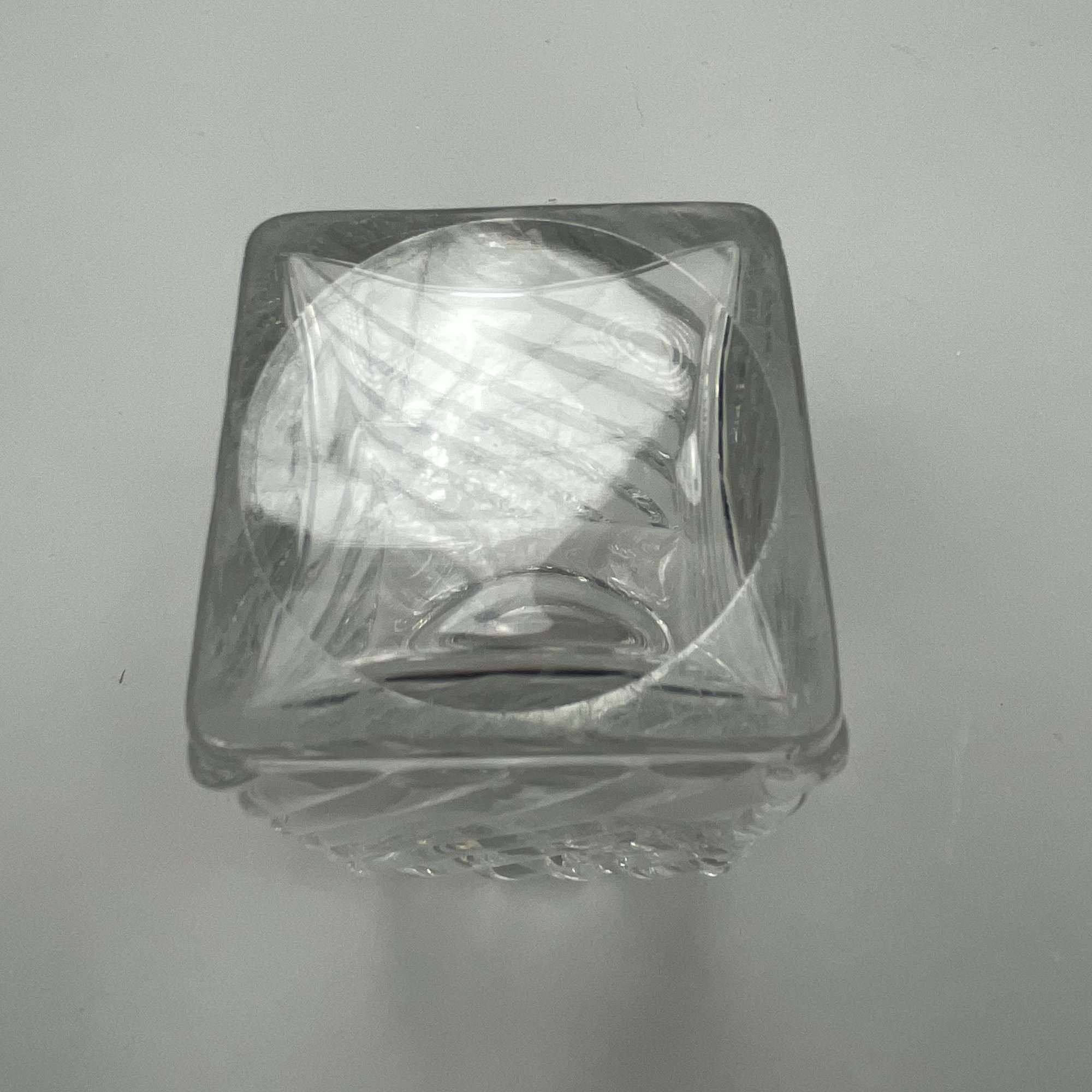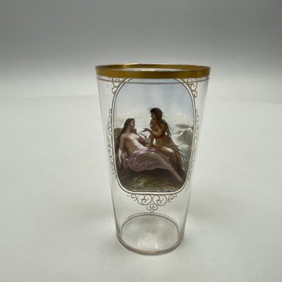 Drinking glass: H: 3.875 in., Diam: 2.125 in.