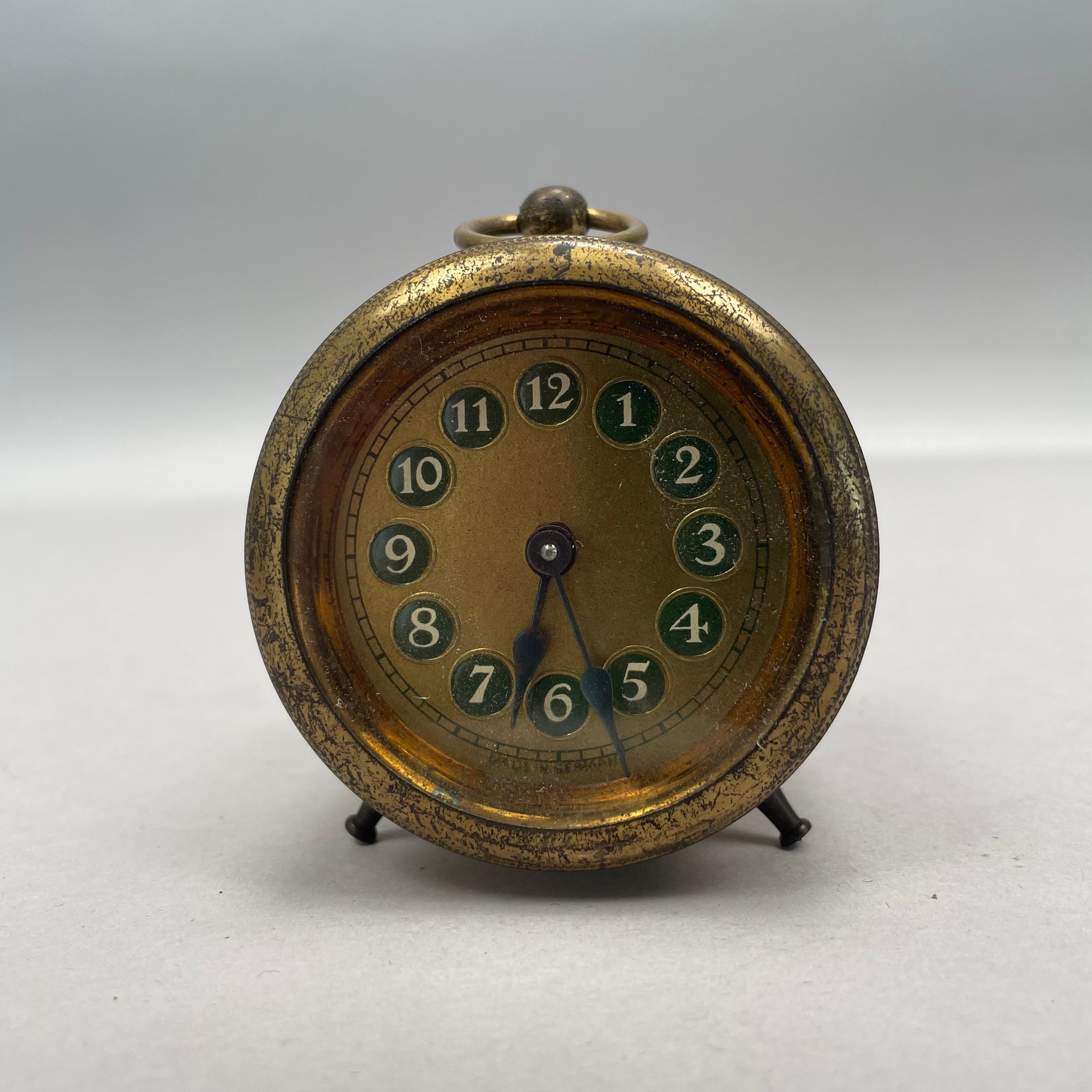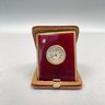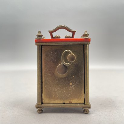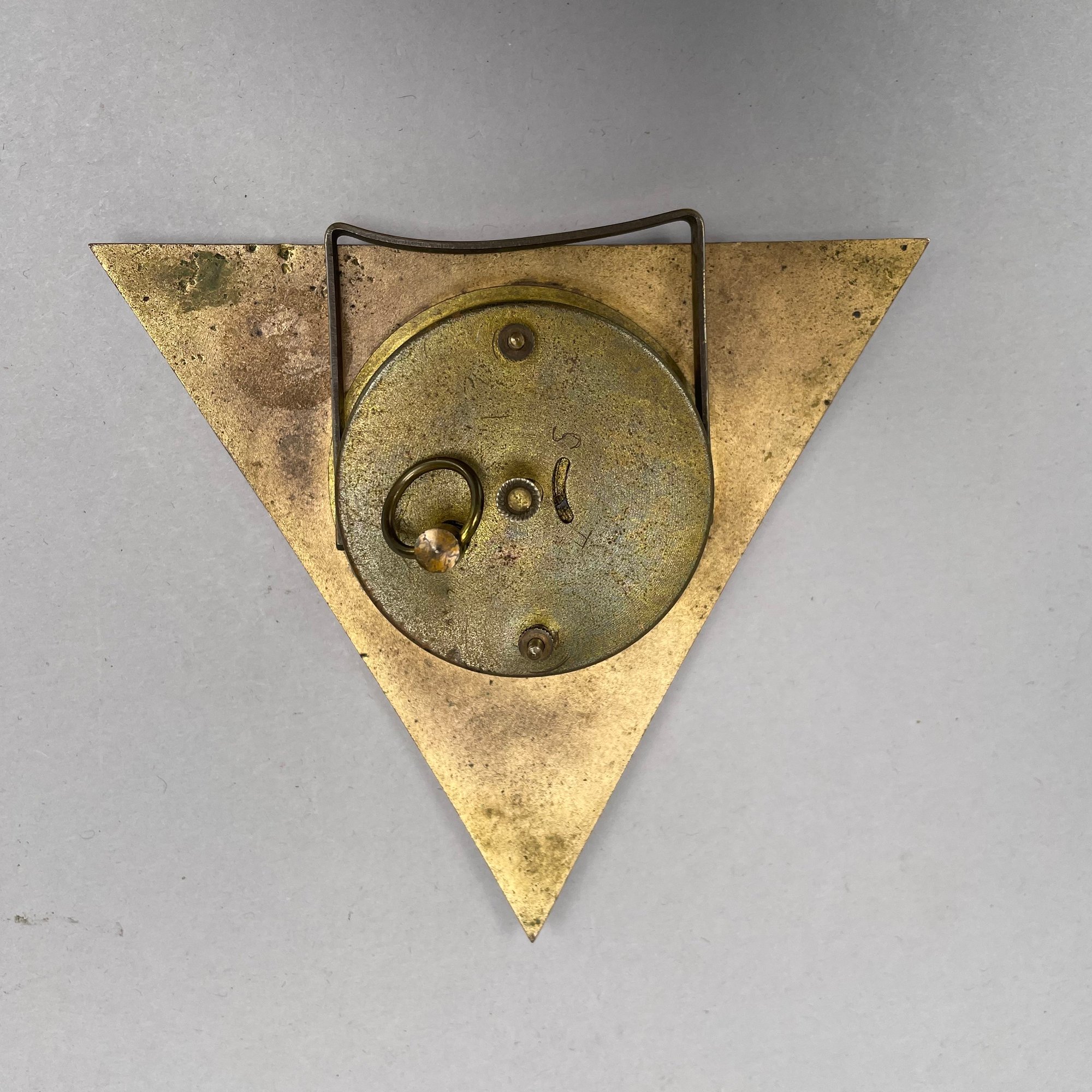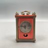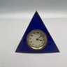 Art Deco clock: H: 4.5 in., W: 4.75 in., D: 1.25 in.