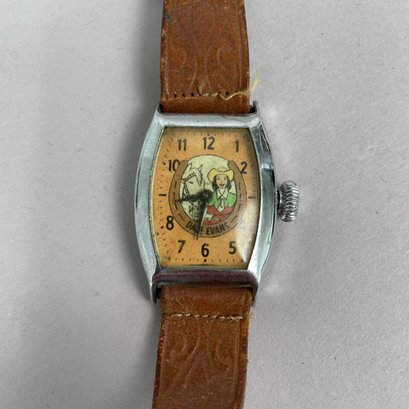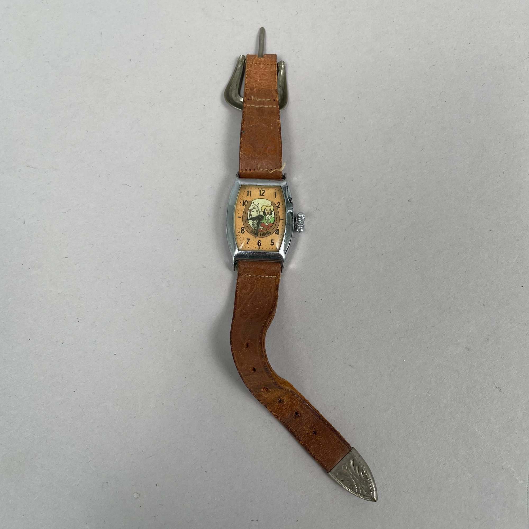 Group of New, Vintage & Novelty Wrist Watches. Including a Dale Evans wrist watch with tooled leather band and stirrup buckle.