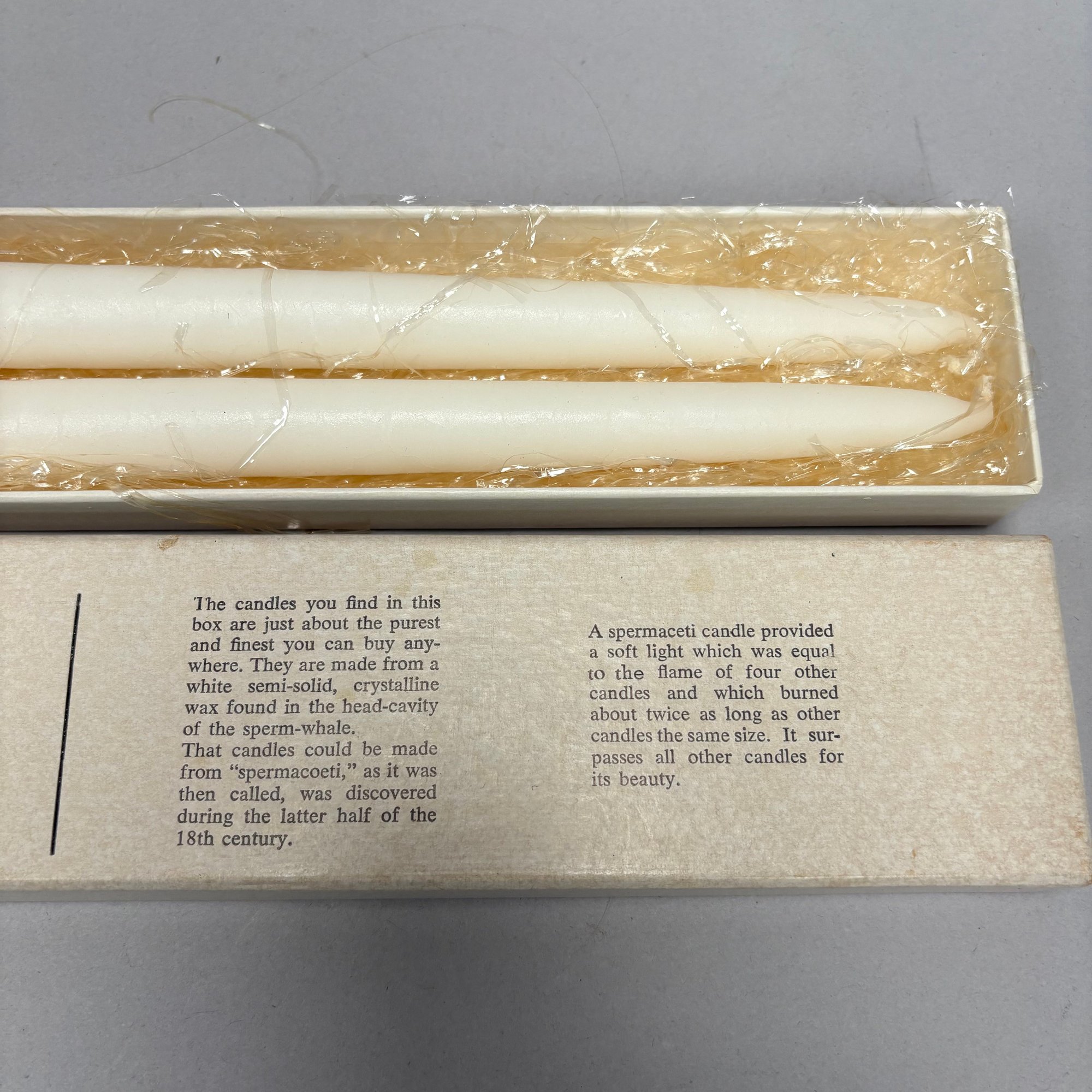 Box of candles: L: 15.375 in., W: 2.375 in., D: 1 in.