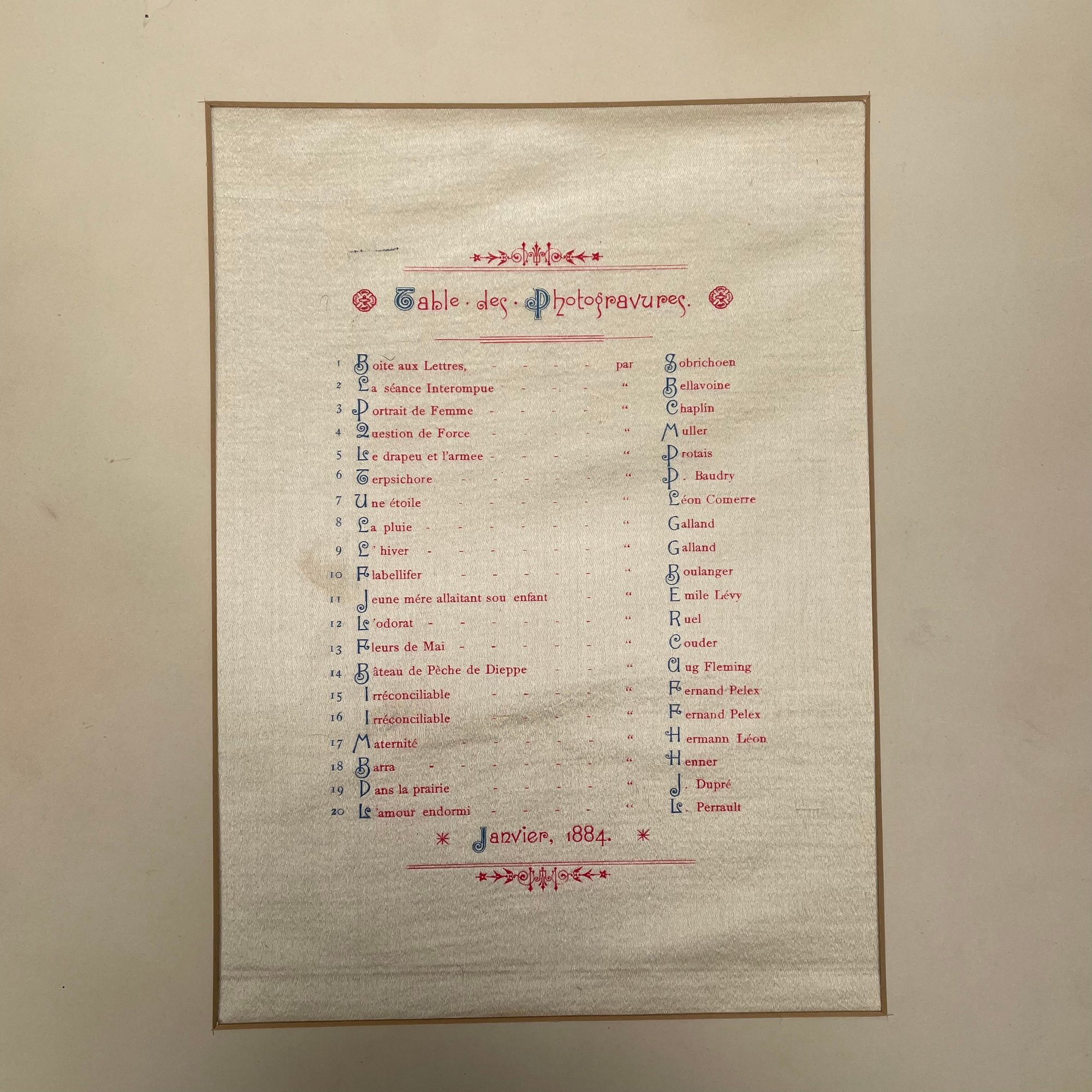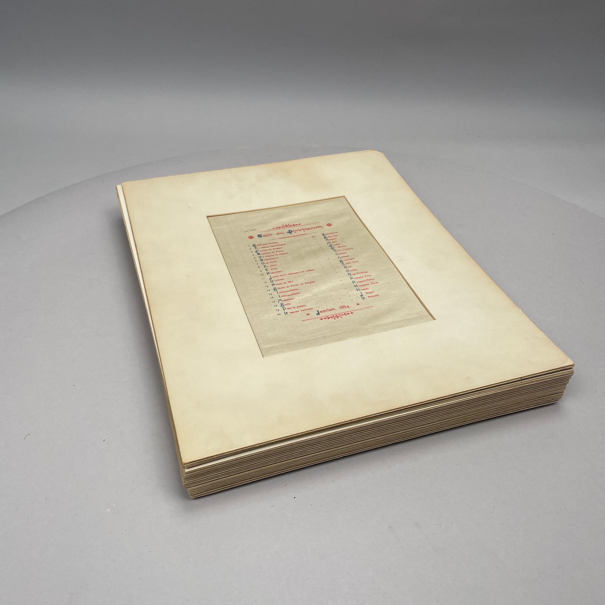 Set of Eighteen French Photogravures, January 1884. With a table of contents and eighteen plates (missing two).