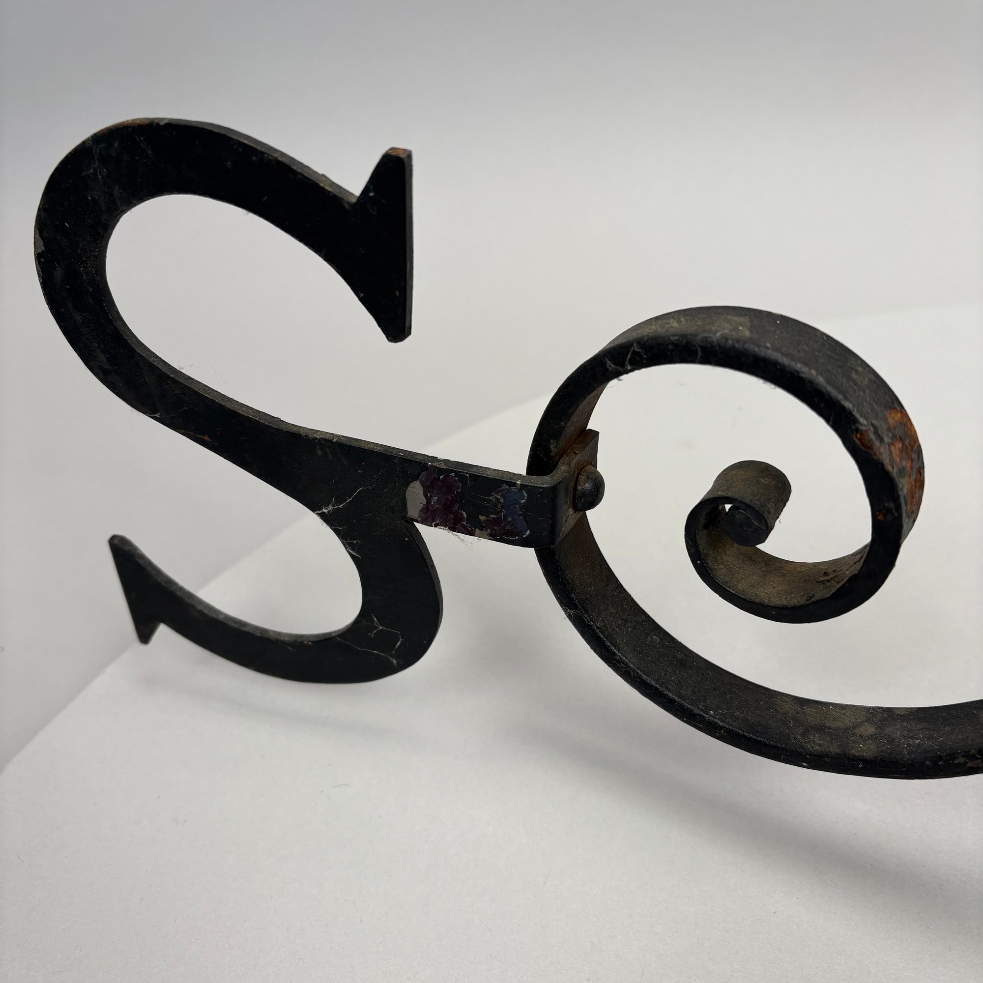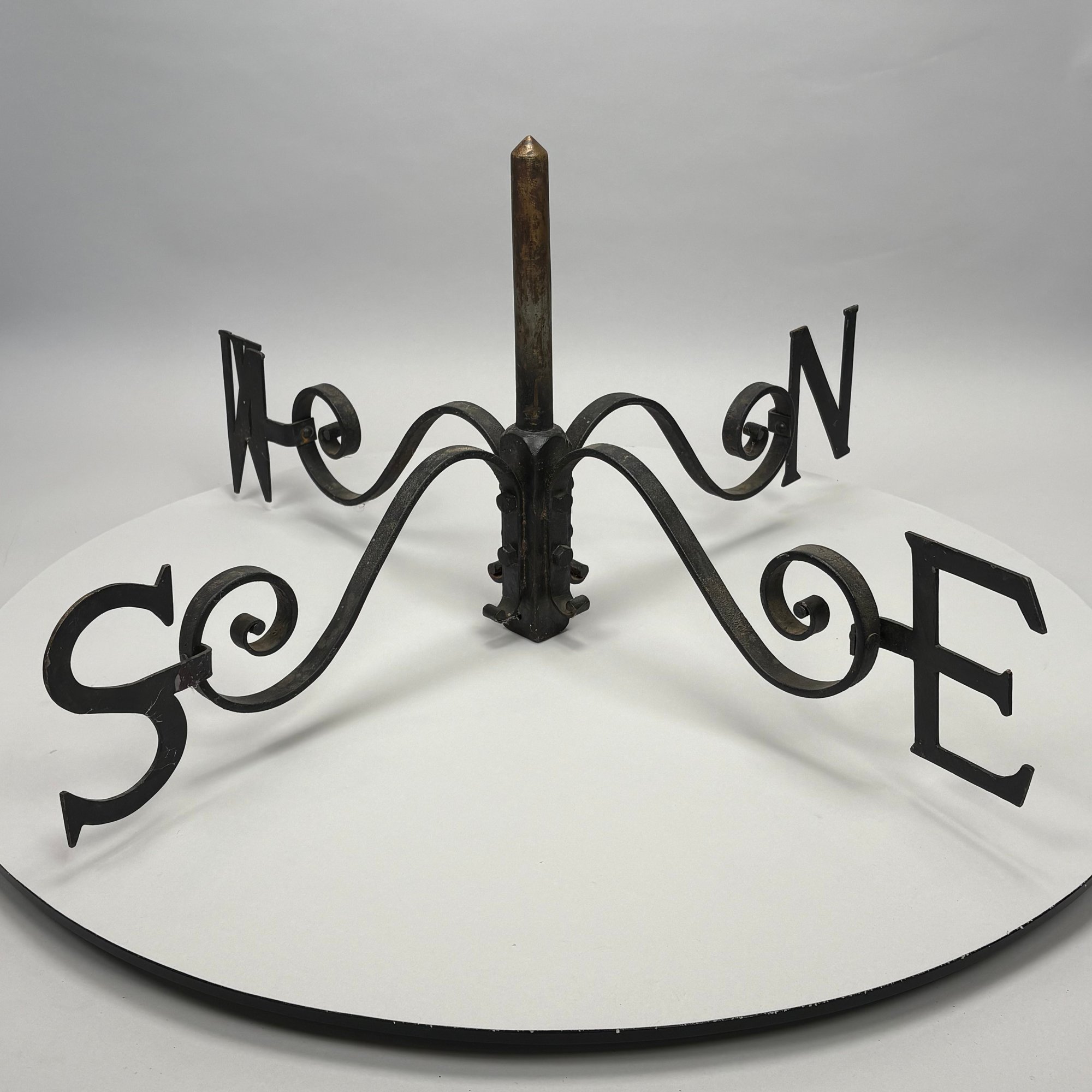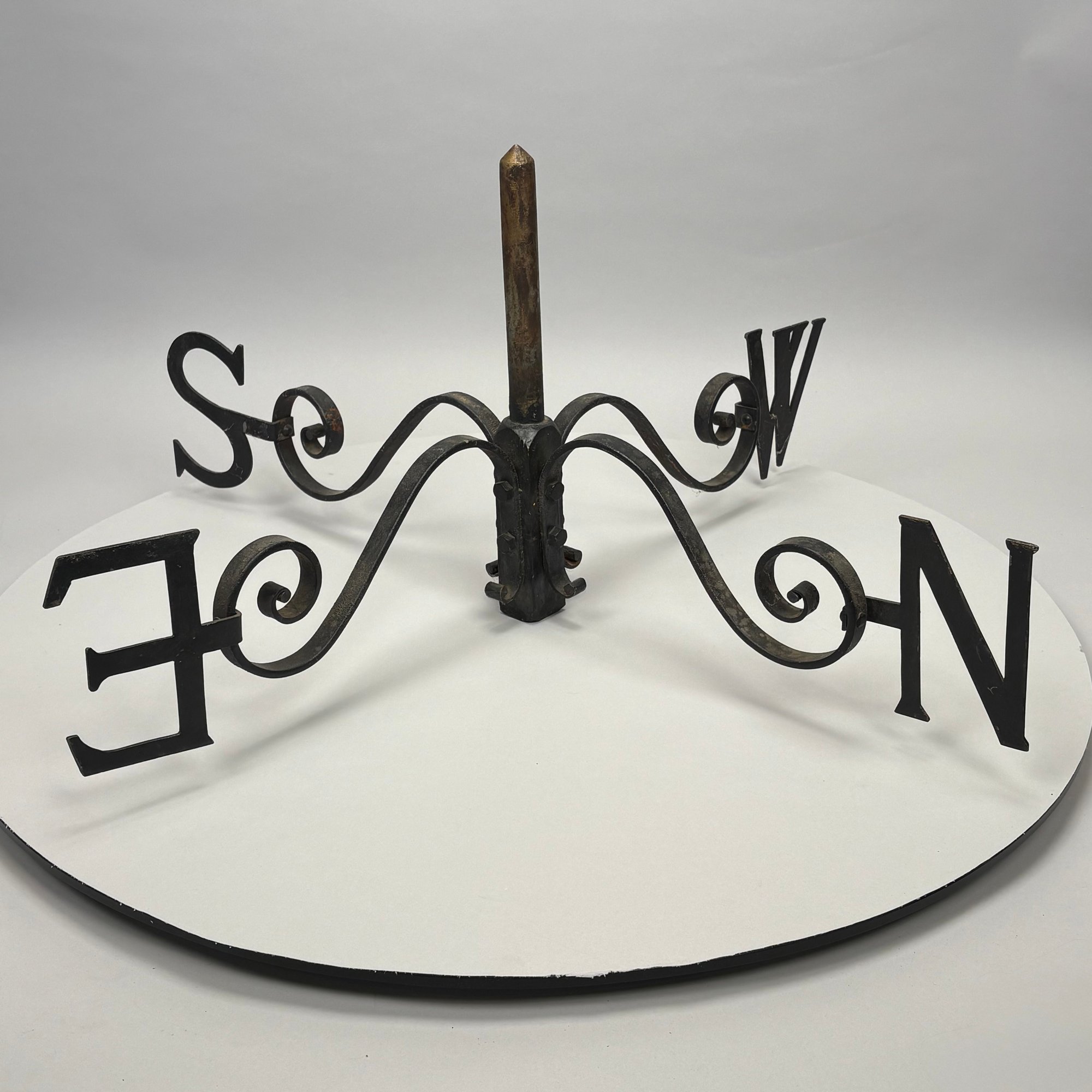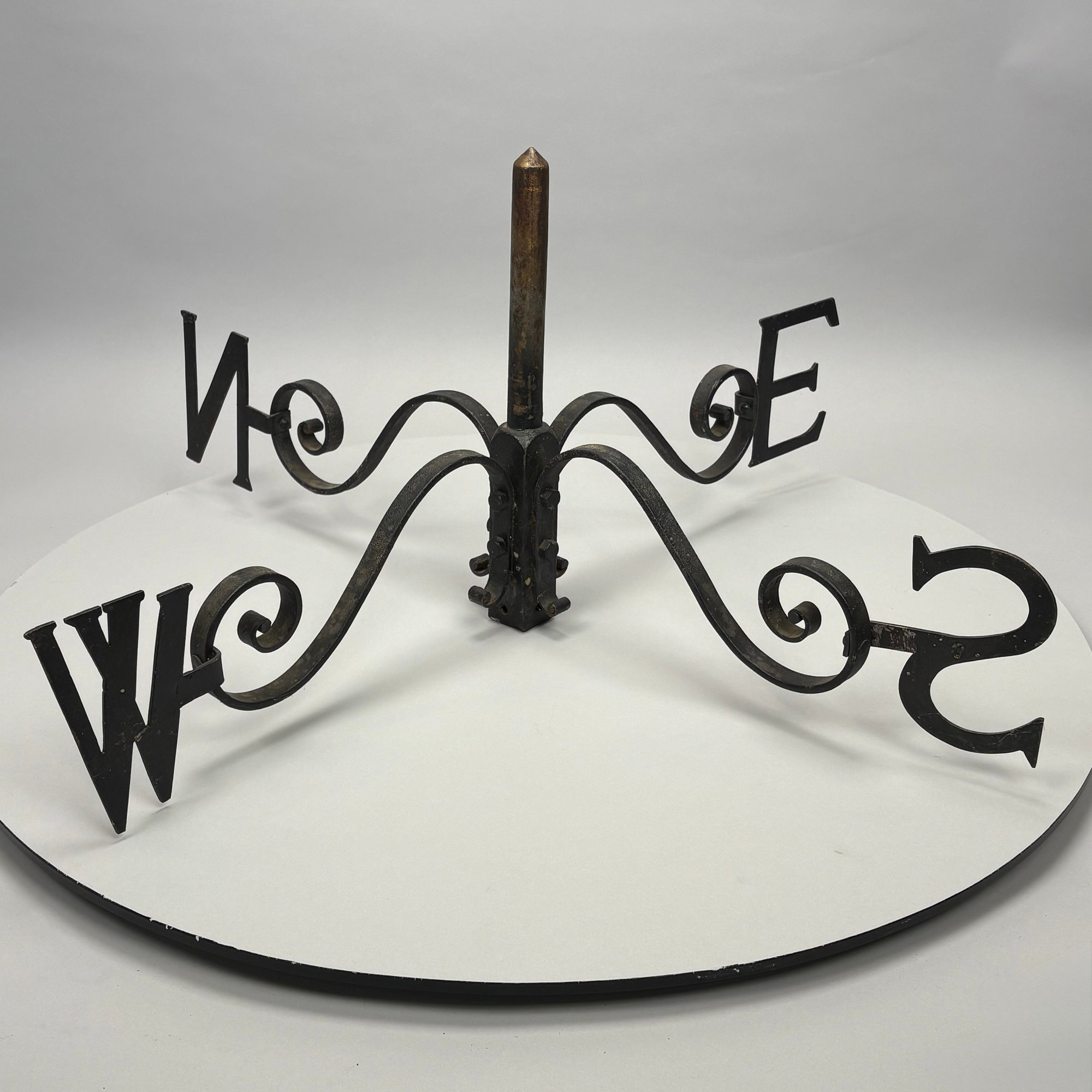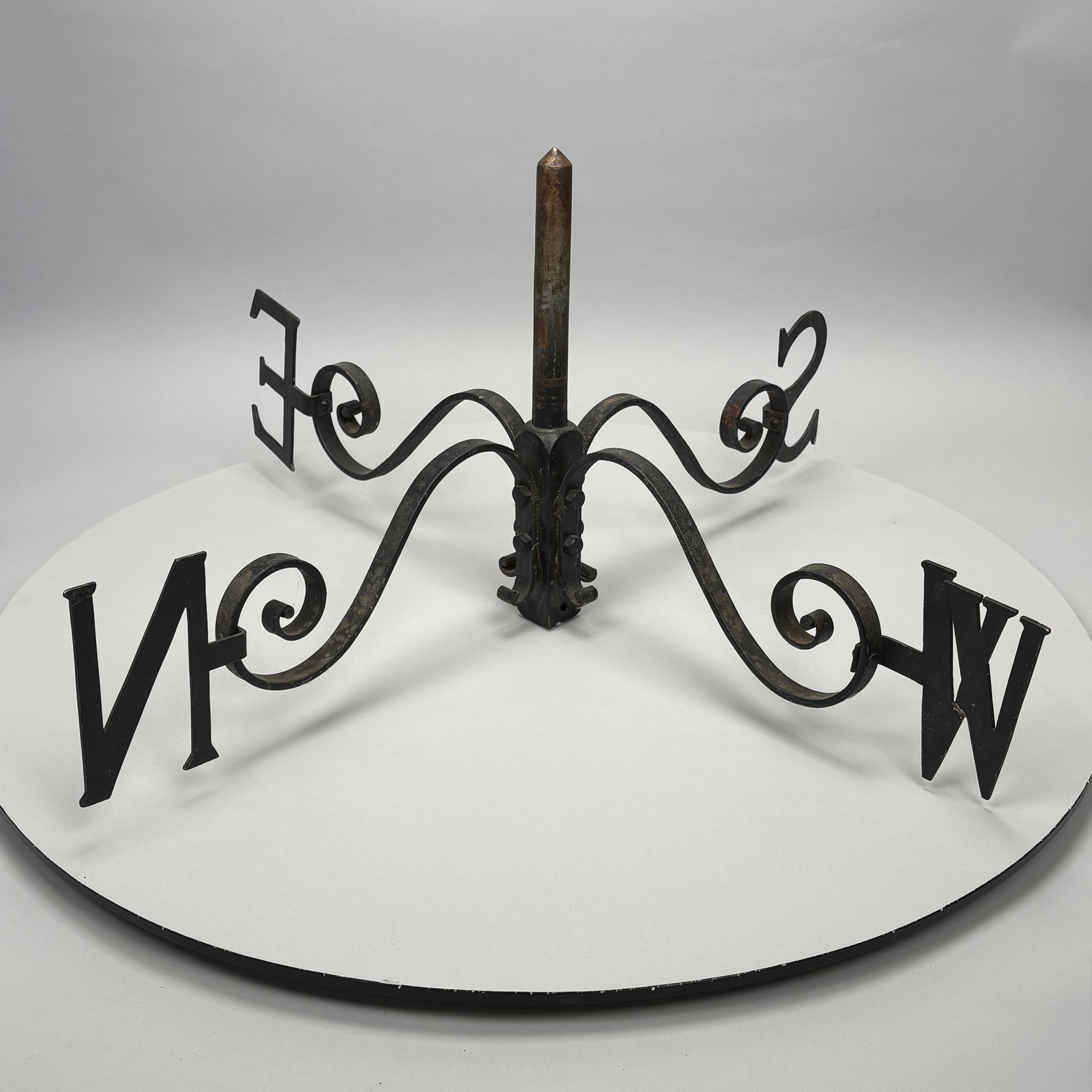 Set of Iron Weathervane Directionals. Each S-scroll arm fitted on the curled end with the serif initial for each direction.
