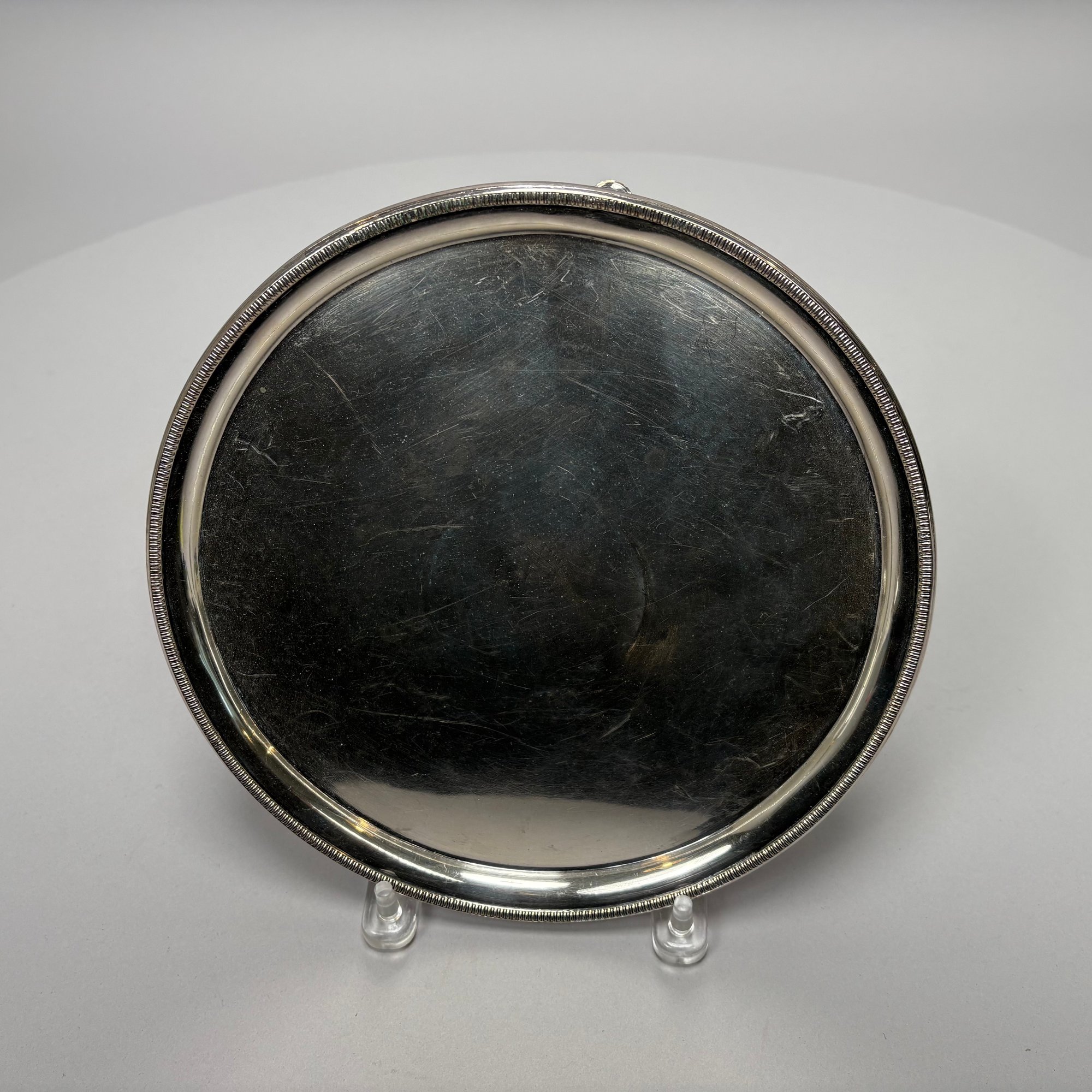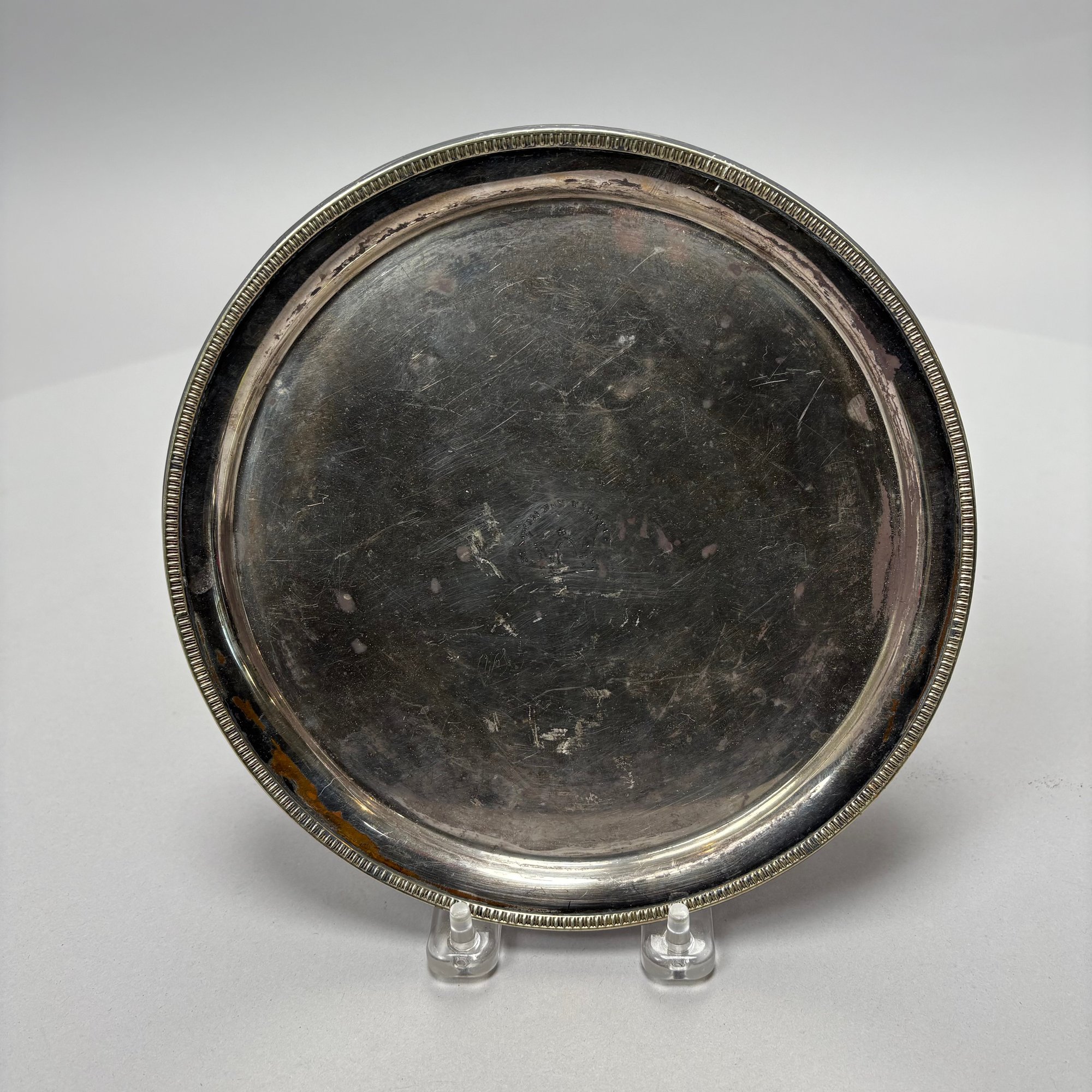 Set of Three English Silverplate Crested Salvers, 19th Century. Each engraved with a crest and motto.