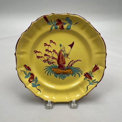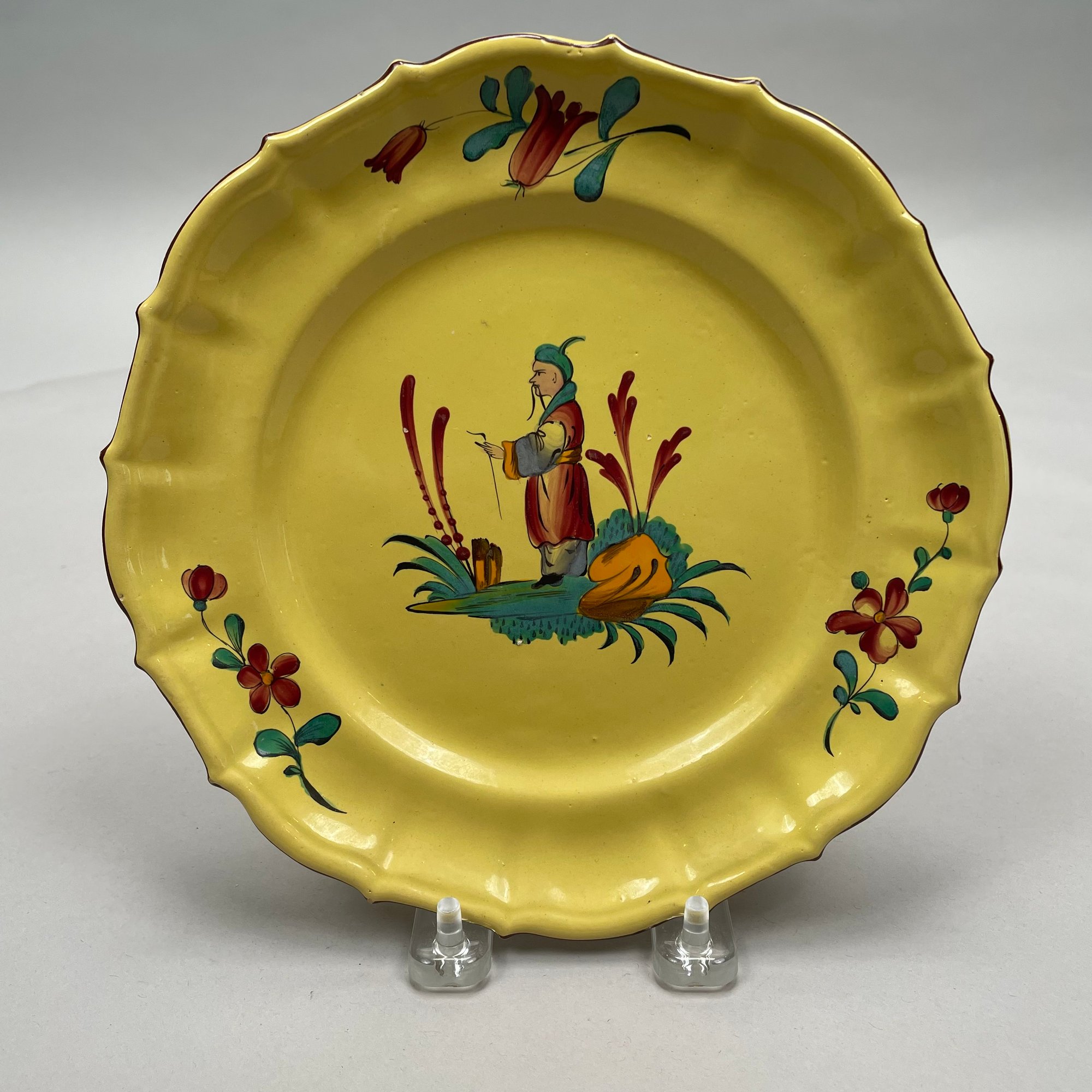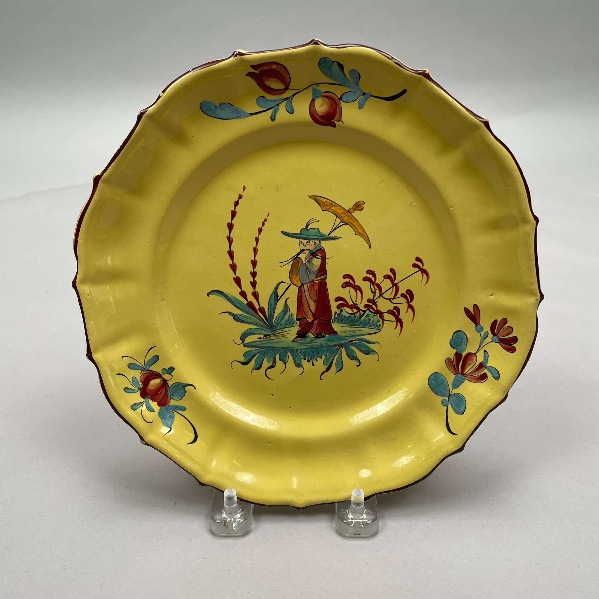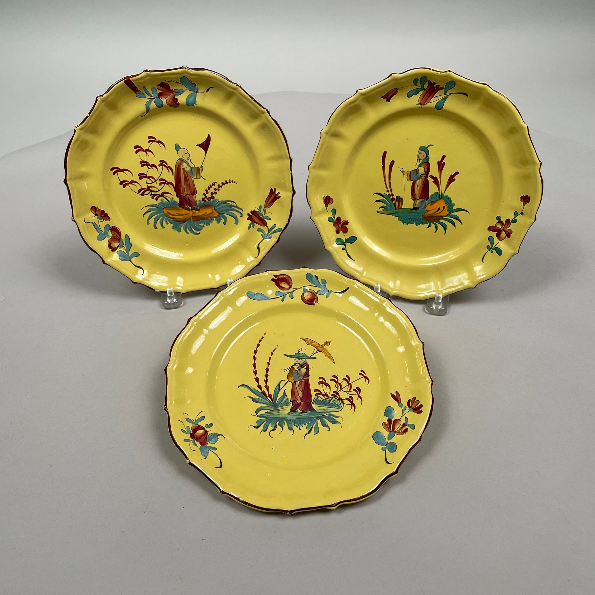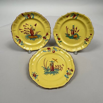 Set of Three French Faience Chinoiserie Enamel-Decorated Yellow-Ground Plates, Late Nineteenth-Early Twentieth Century.
