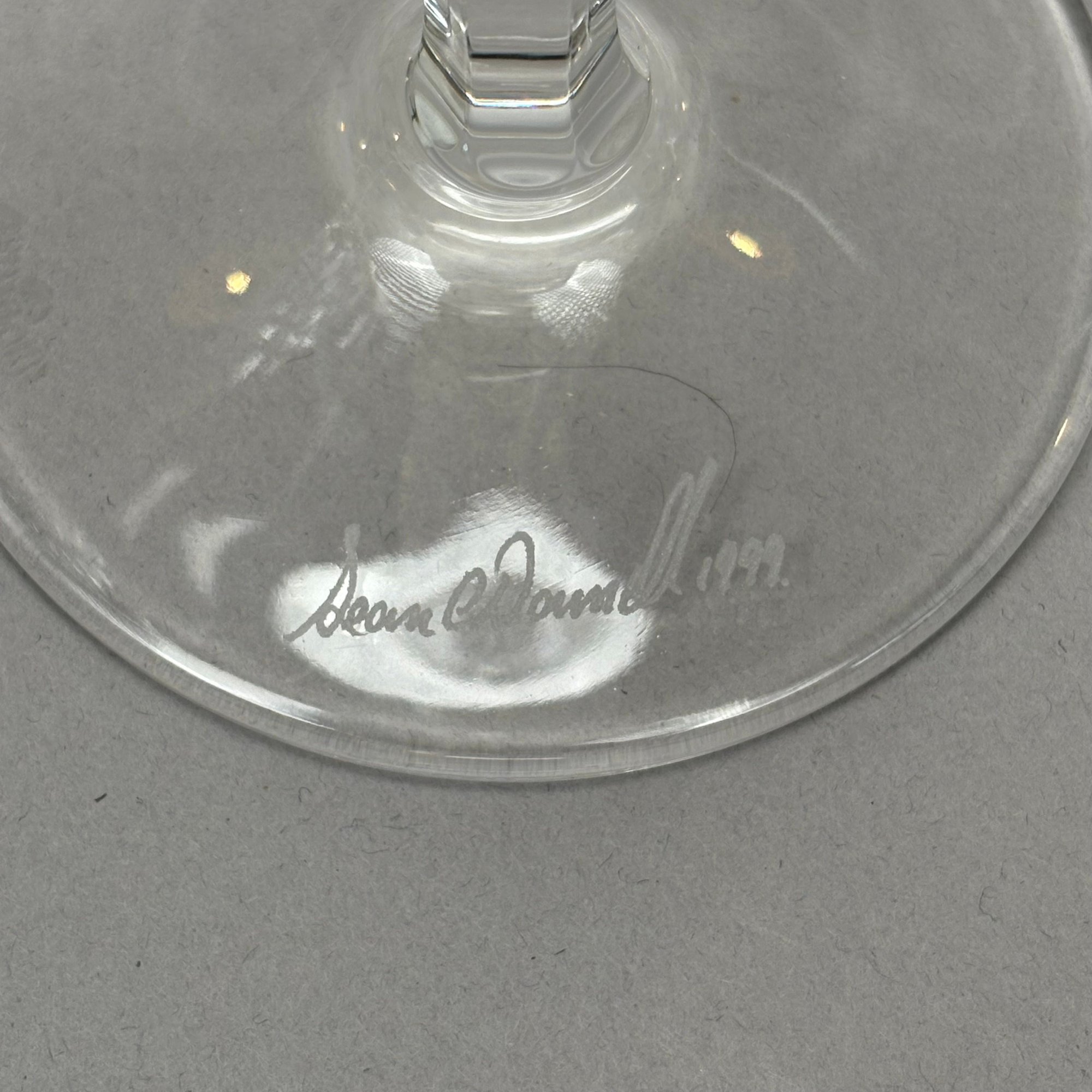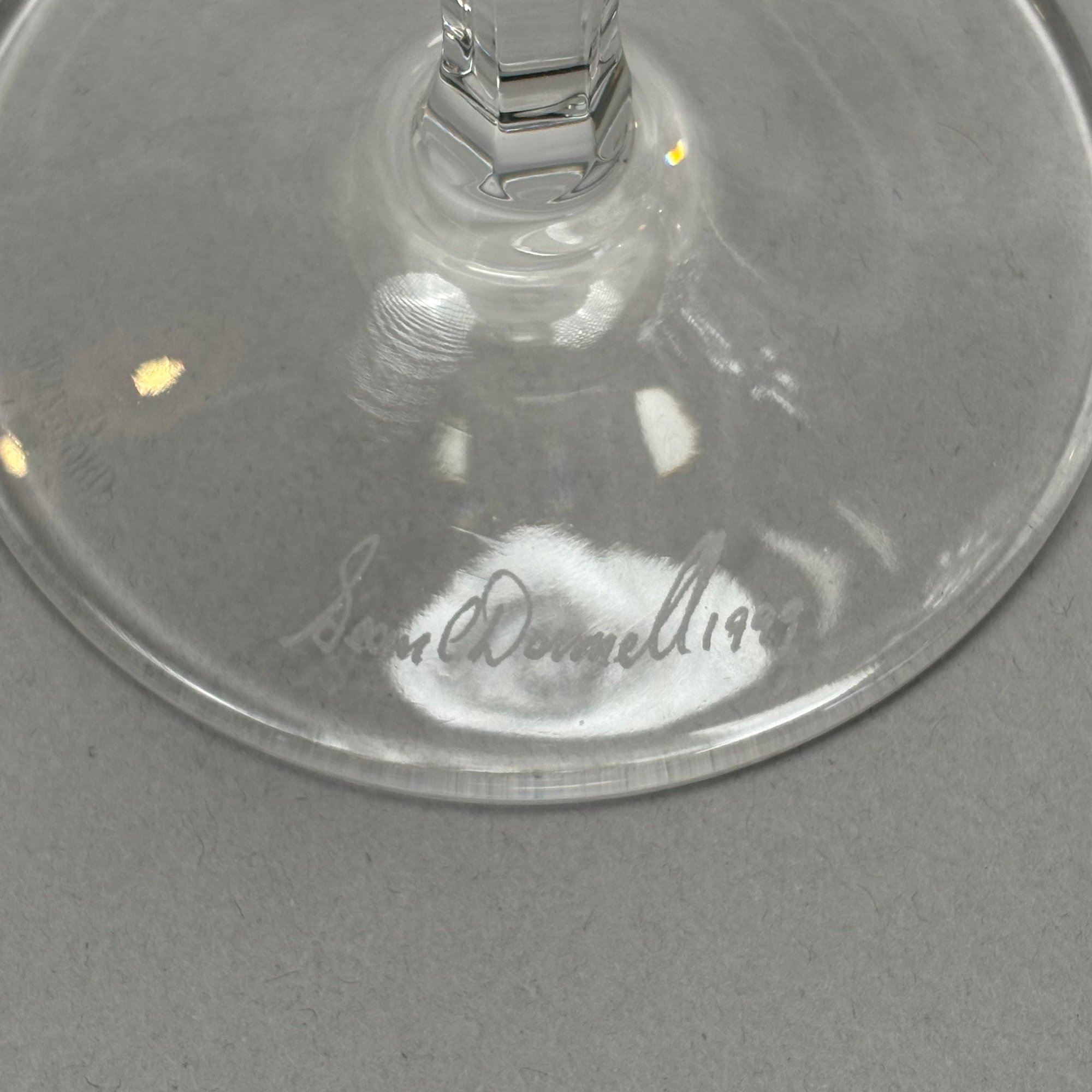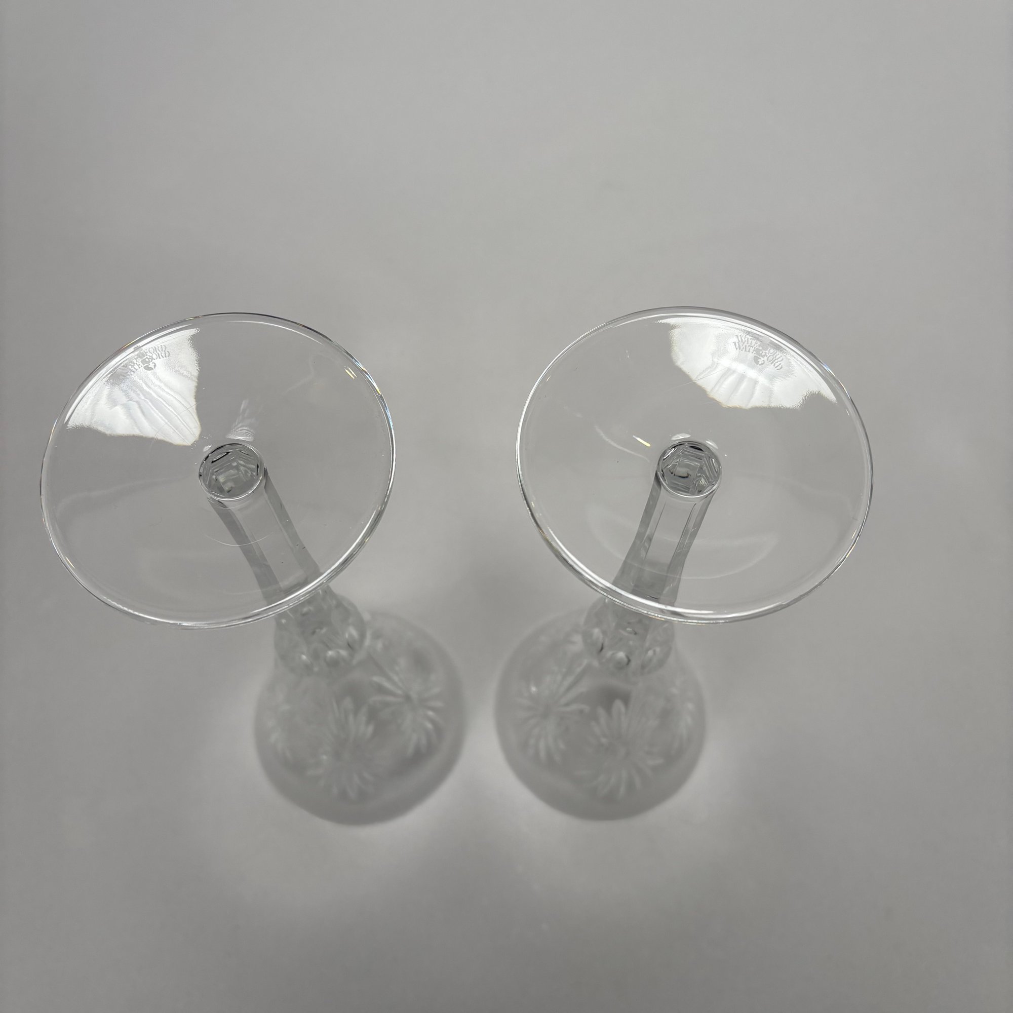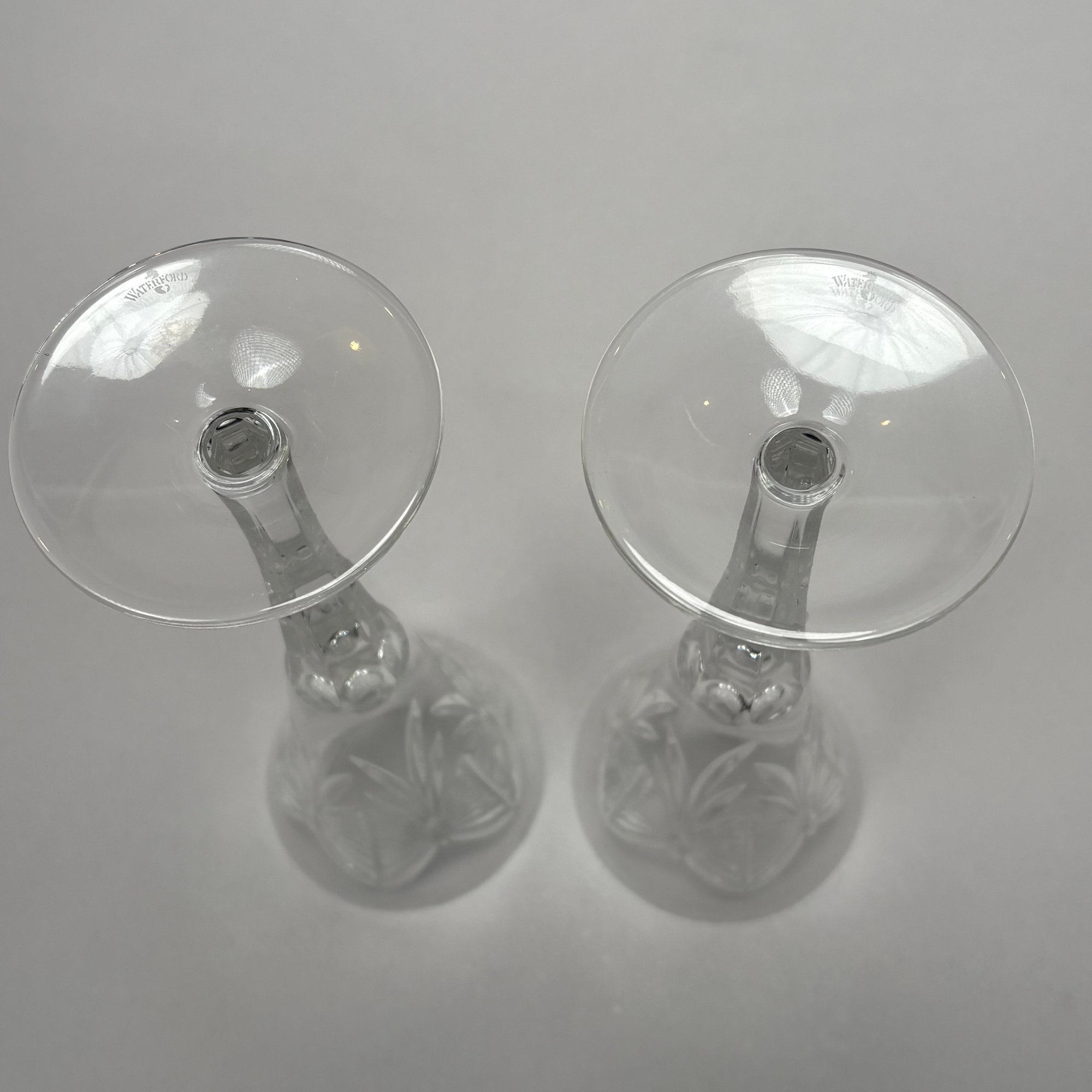 Set of twelve Waterford Crystal Millenium Collection toasting flutes celebrating the turn of the millenium. Comprising six pairs, each of five pairs with designs corresponding to five symbolic toasts; the final pair of flutes featuring all five designs.