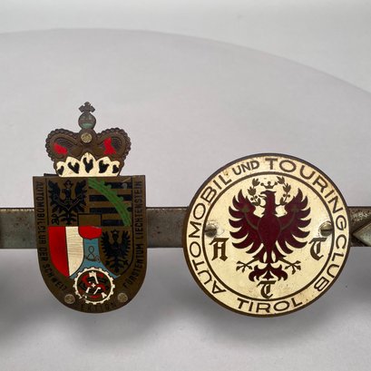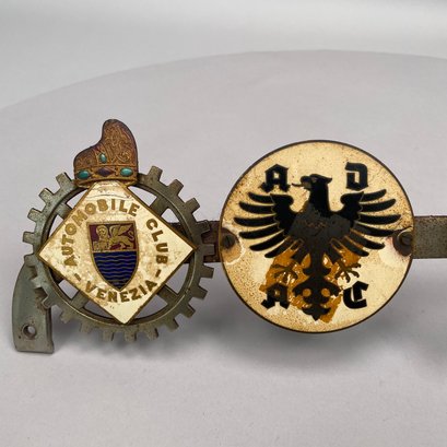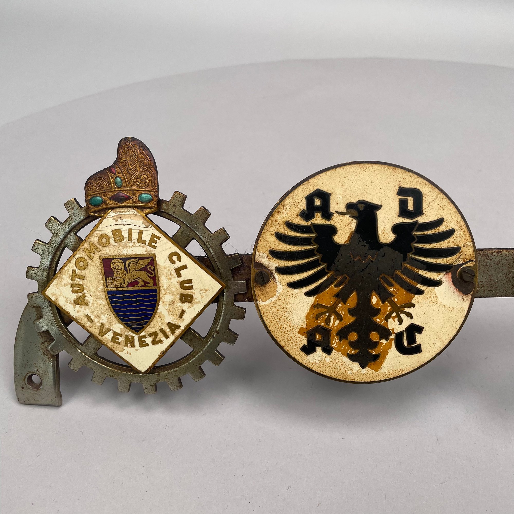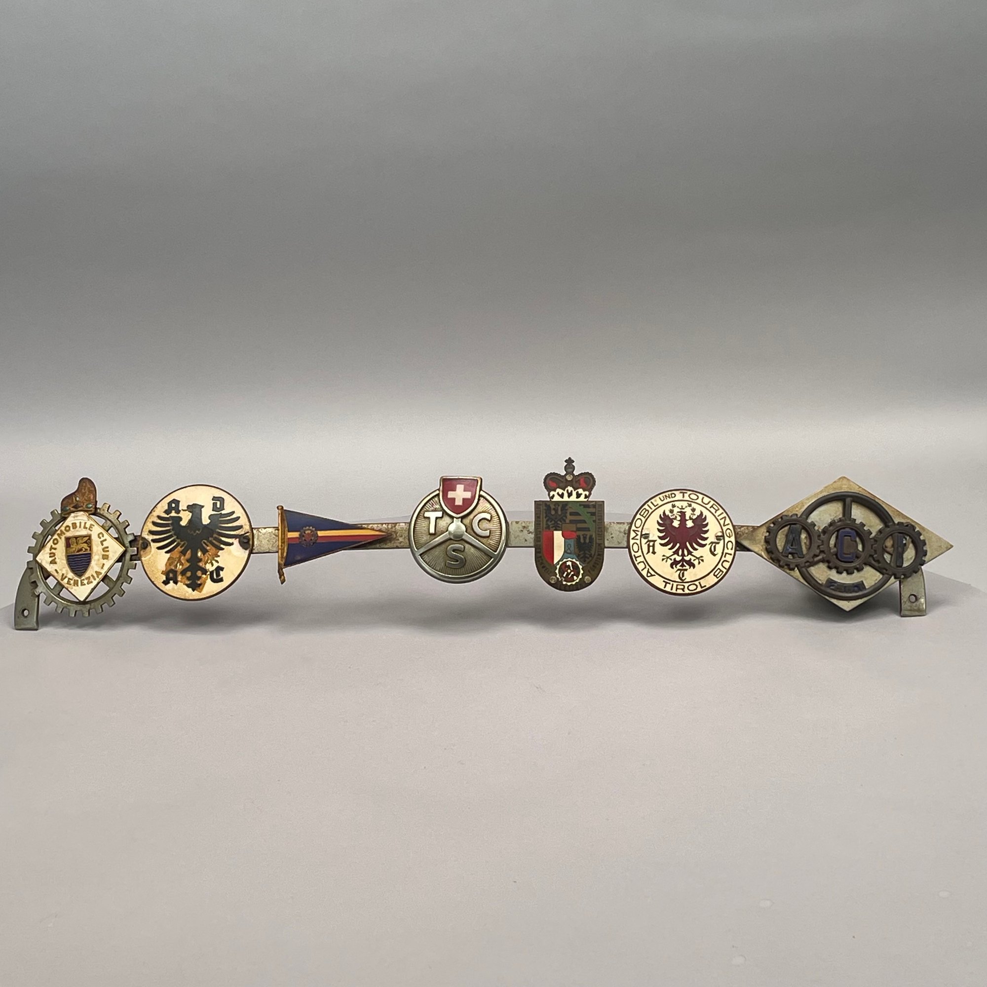 Seven Automobile Car Club Grill Badges, Mid-Twentieth Century. Comprising (left to right) clubs from Venice, Italy, Germany, Rome, Italy, Switzerland, Tirol, and "ACI F.I.A. Club D'Italia."