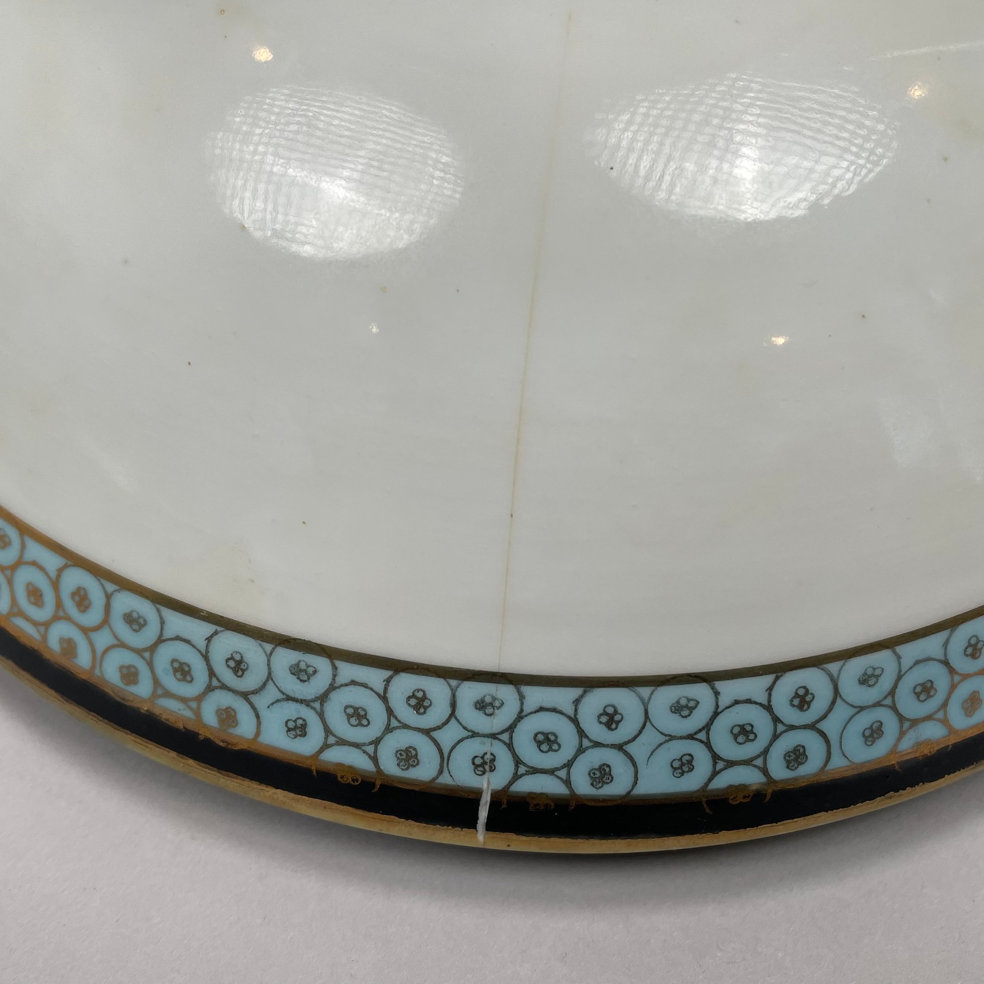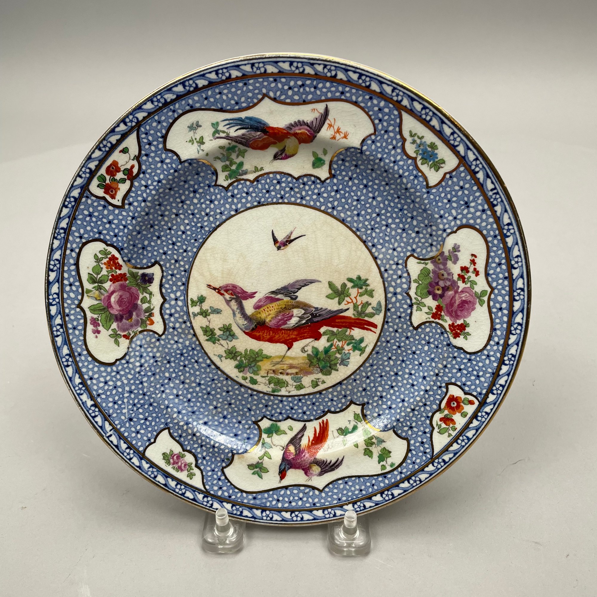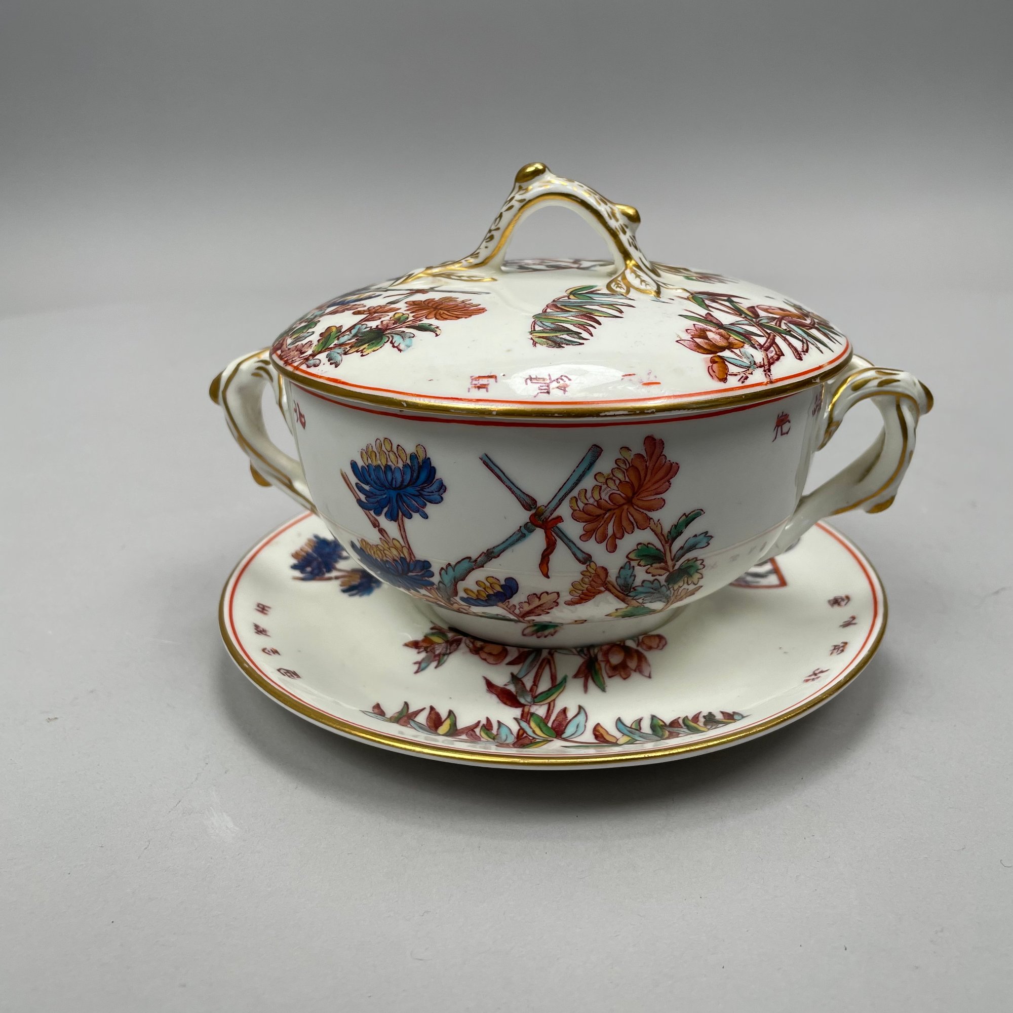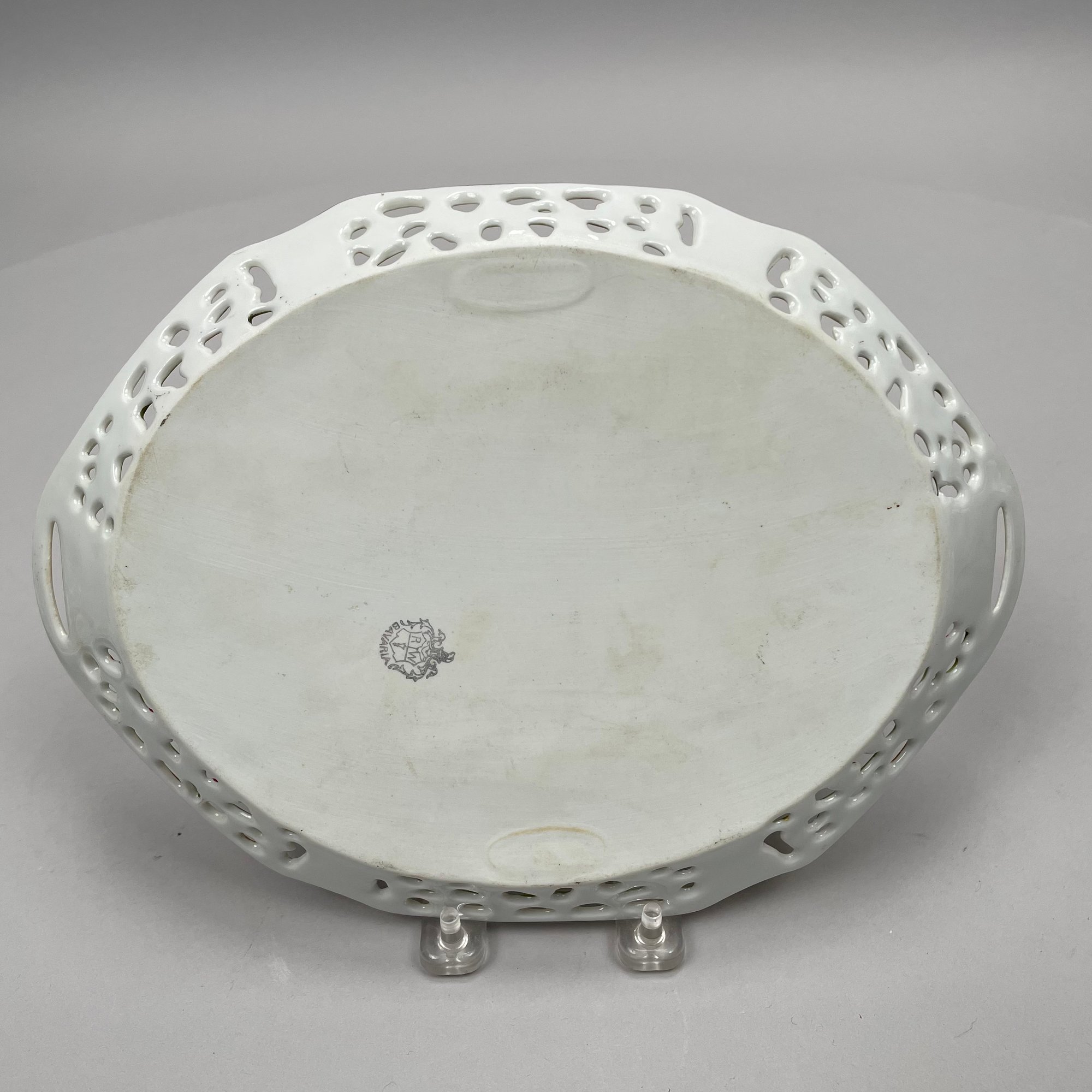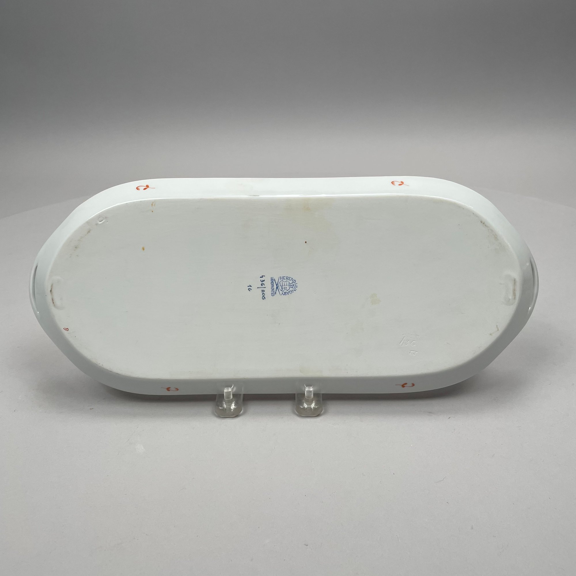 Seven Continental Painted and Printed Porcelain Wares, Twentieth Century. Comprising an iron-red 'Chinese Bouquet' tray, Herend Porcelain Co.; a Bavarian tray, Retsch & Co.; a Nippon two handled pedestal bowl and a handpainted bowl, after 1911; a Staffordshire 'Mosaic Panel' plate, Booth's Ltd., each with printed mark; and a covered bowl and liner in an Aesthetic Movement pattern, unmarked.