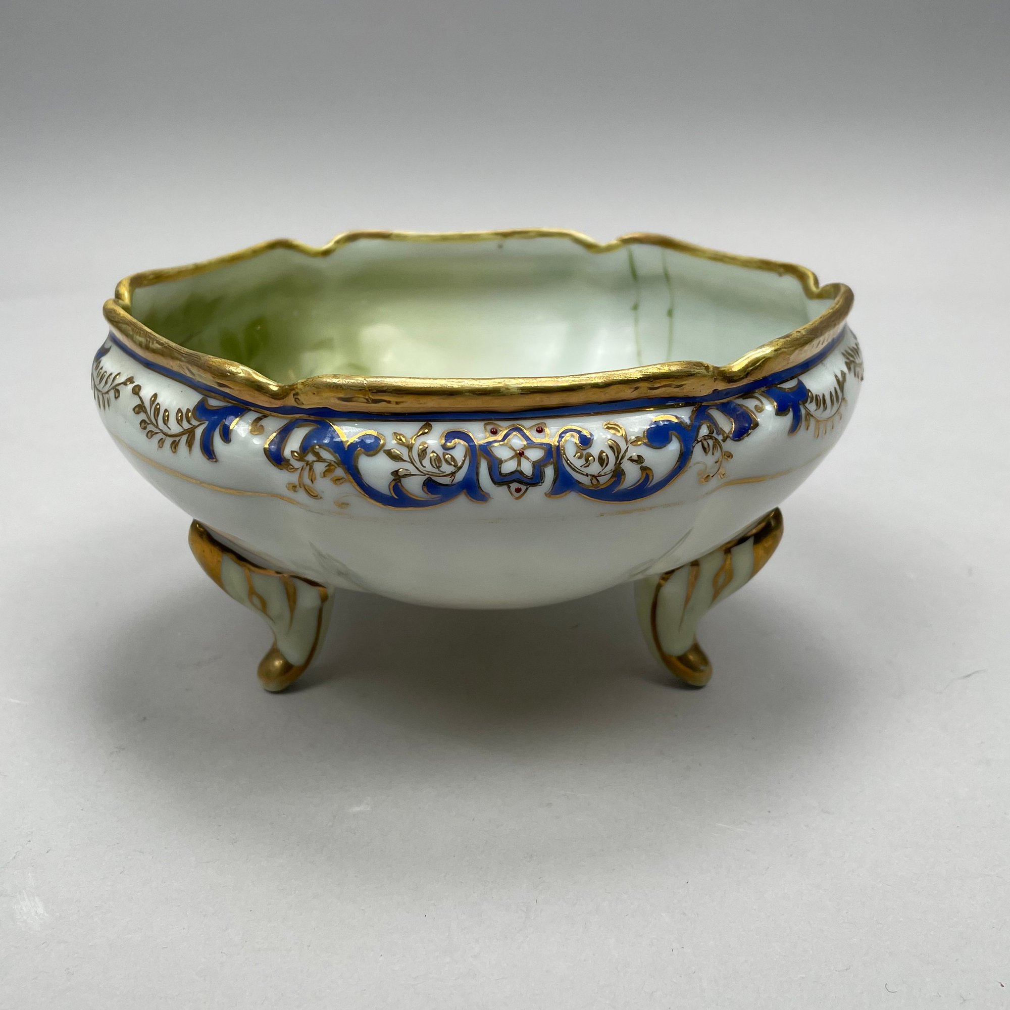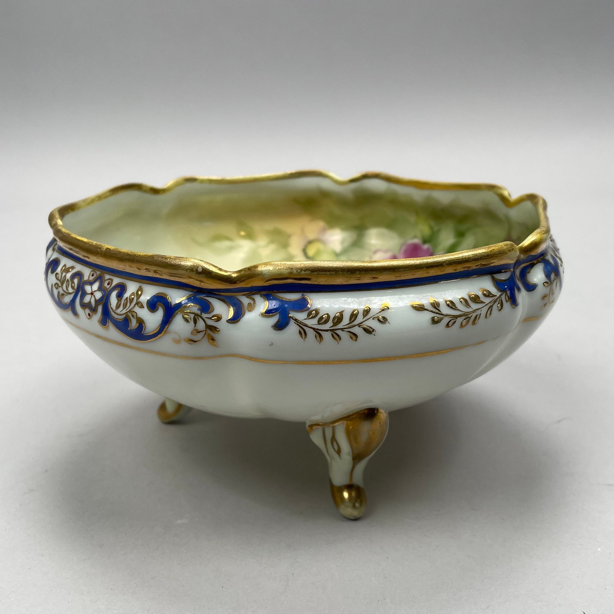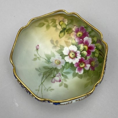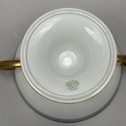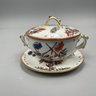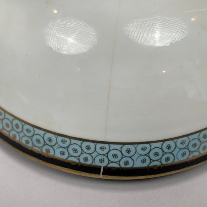 Two-handled bowl: H: 4.75 in., W: 10.25 in., D: 8.25 in.
