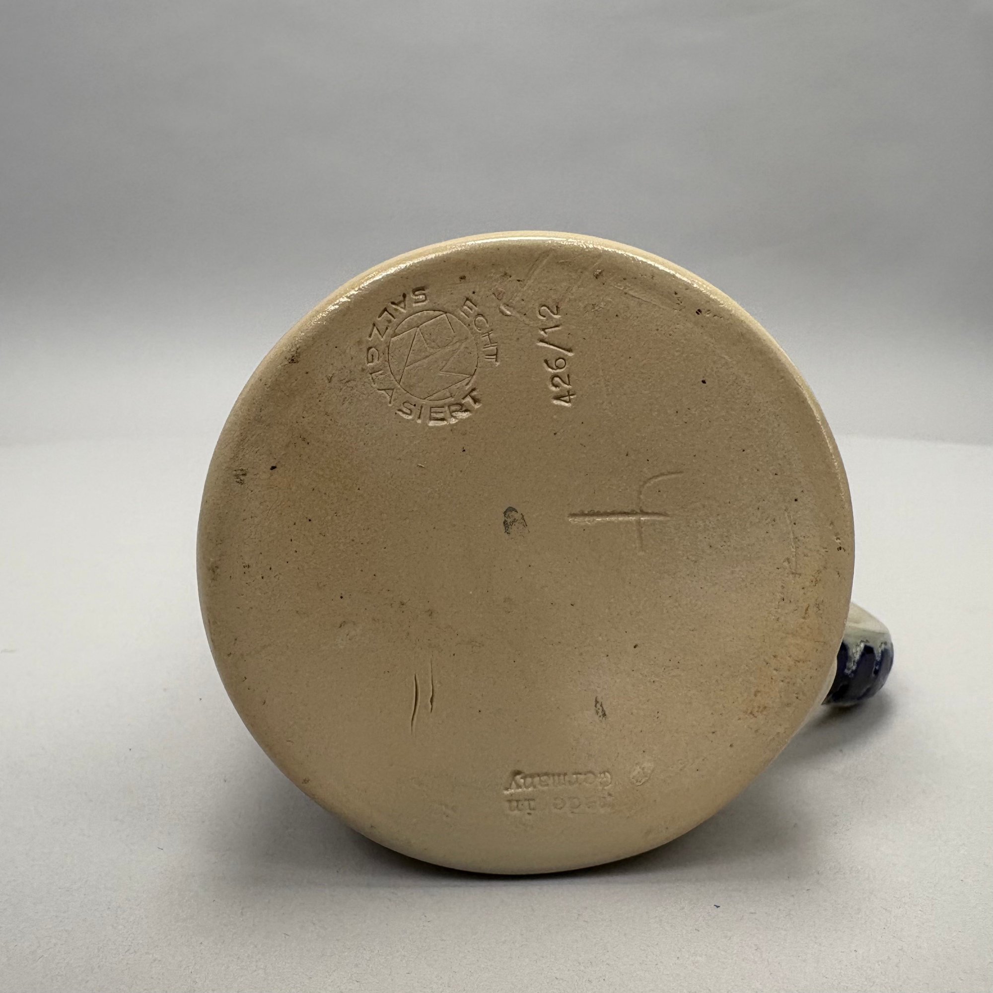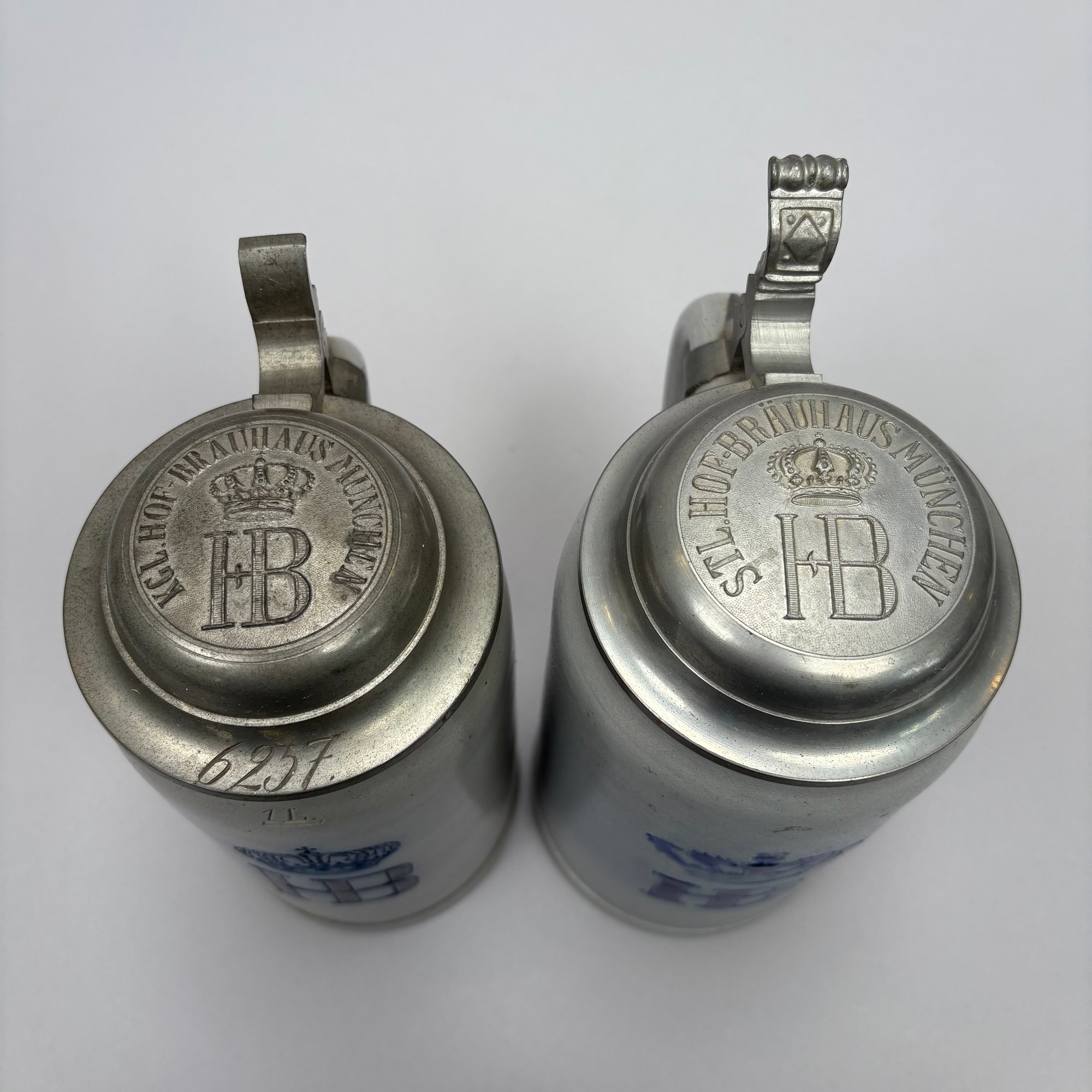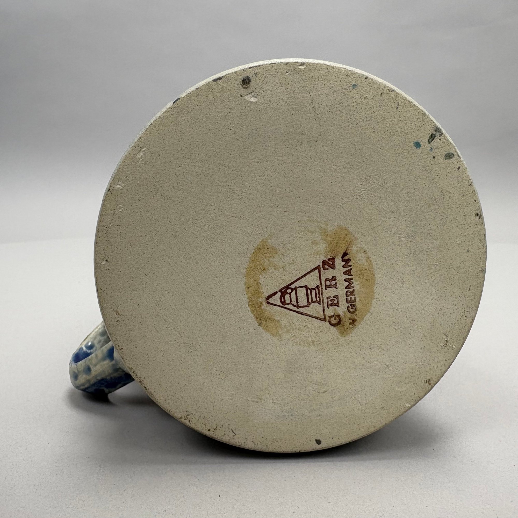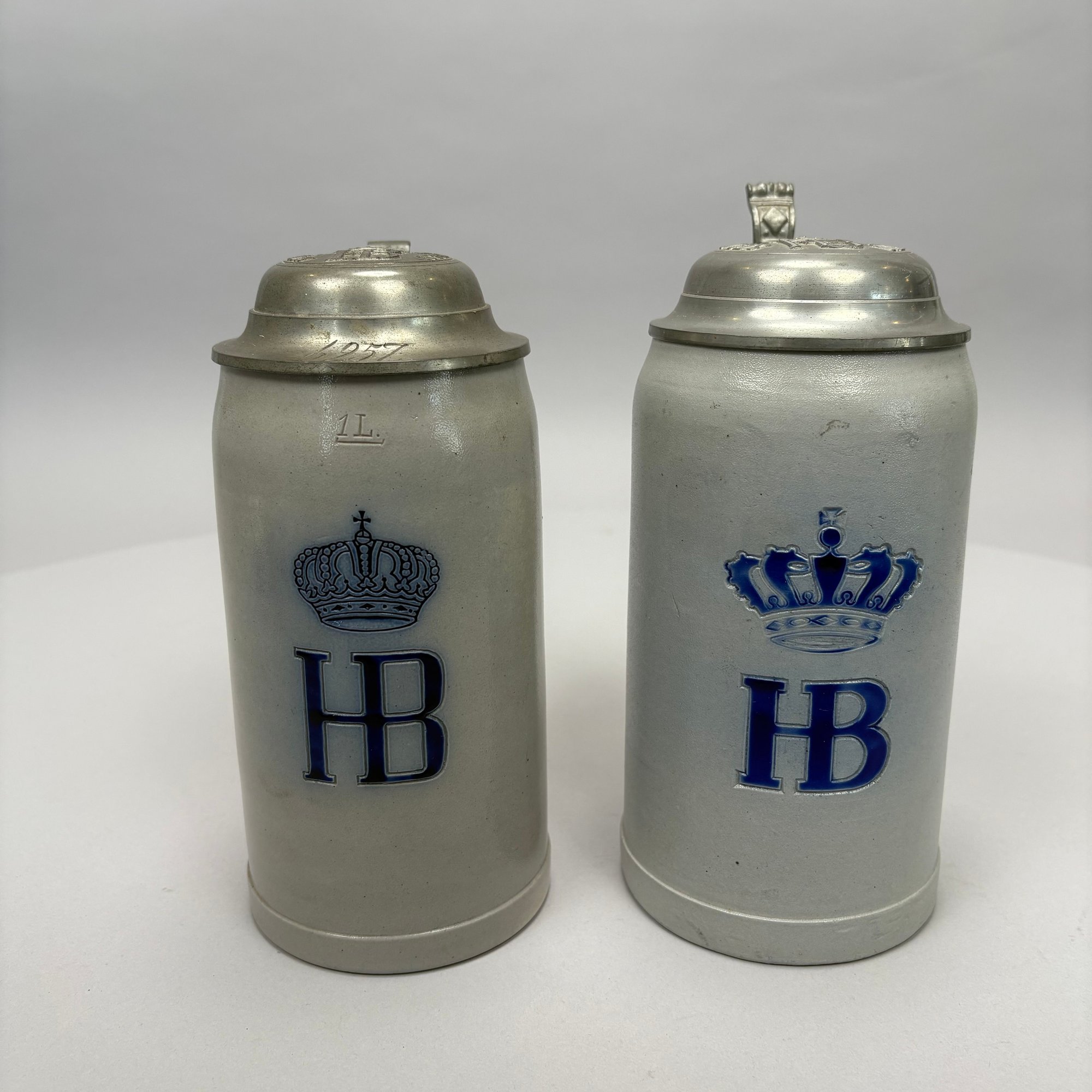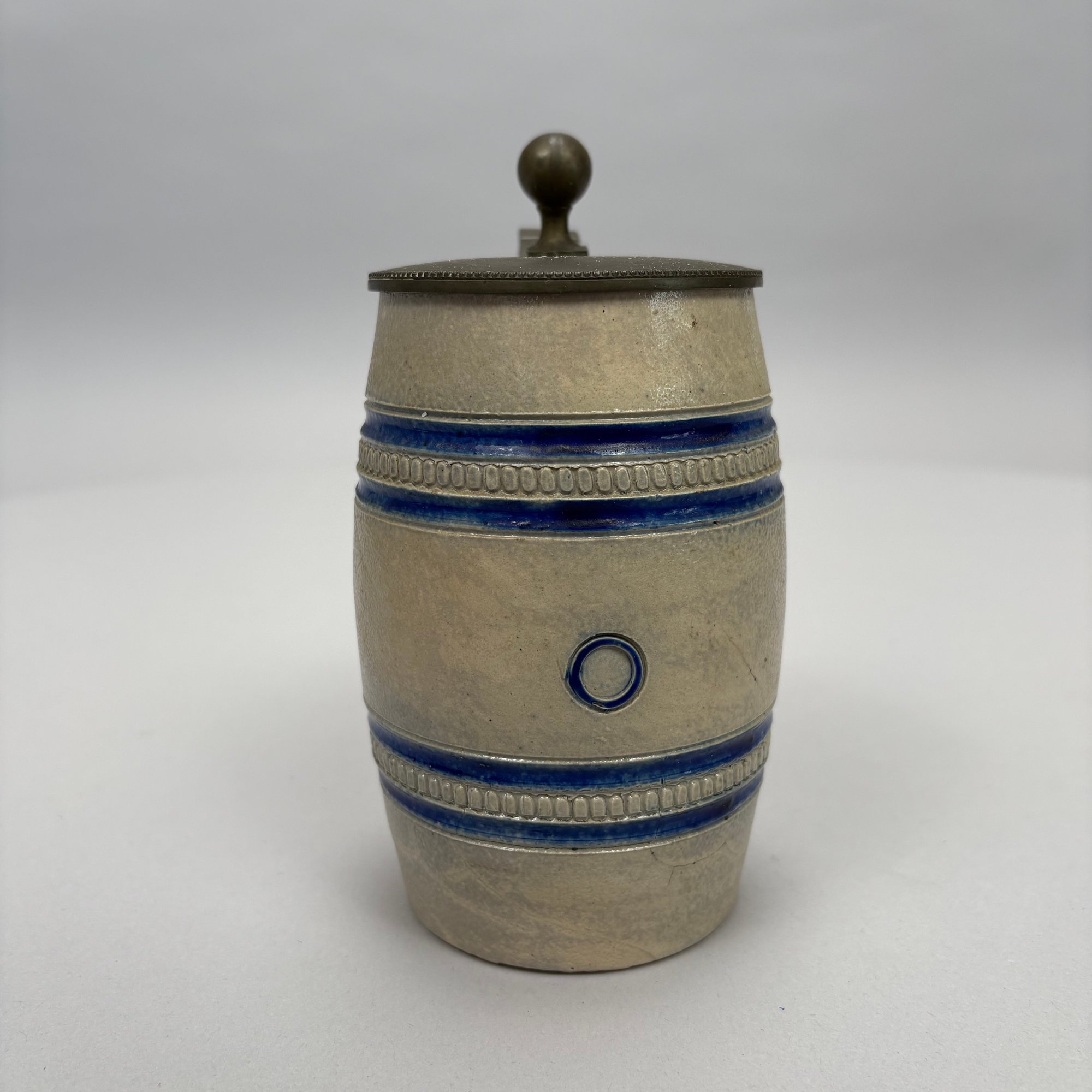 Seven German Cobalt Blue-Decorated Saltglaze Stoneware Steins with Pewter Lids, Late 19th-20th Century. Including impressed marks for "A.K," "ECHT/ SALZGLASIERT," "GERZ/ W. GERMANY" and "R. MERKELBACH GRENZHAUSEN."