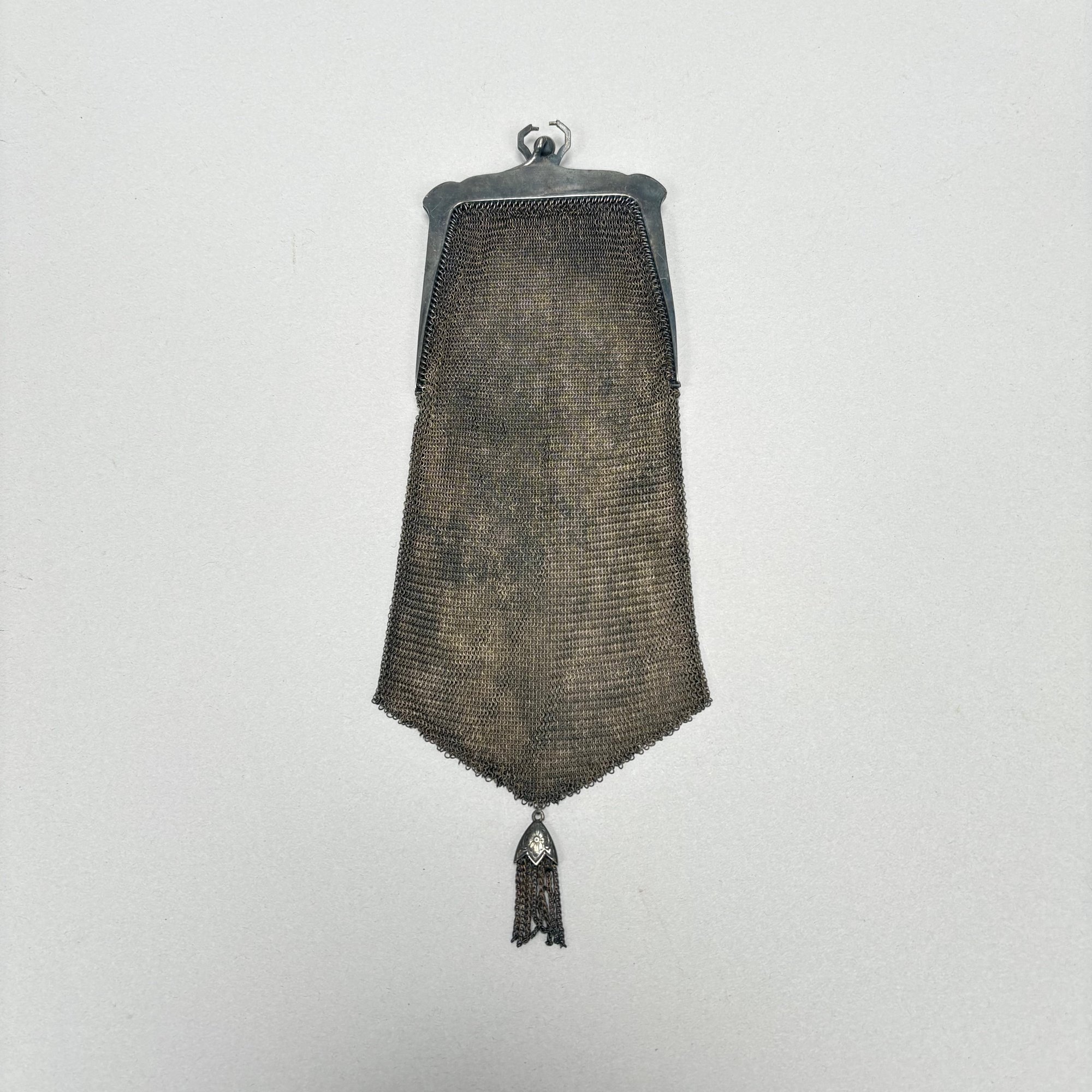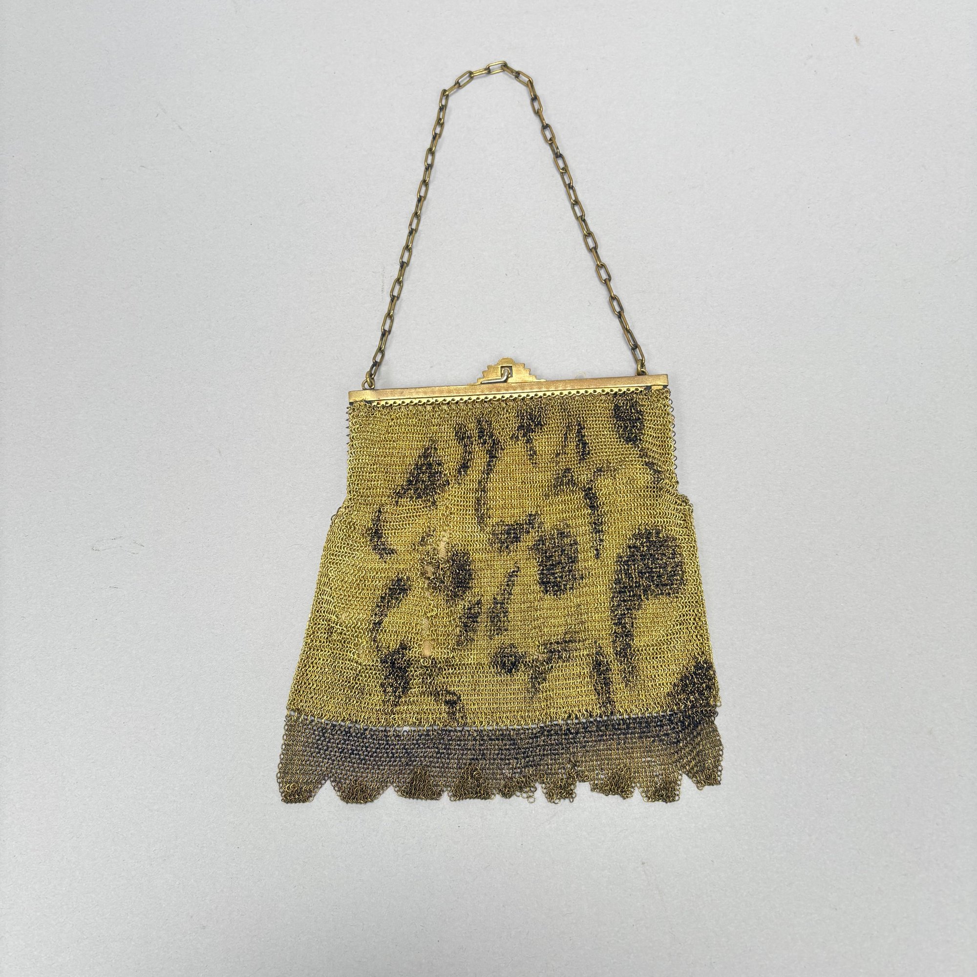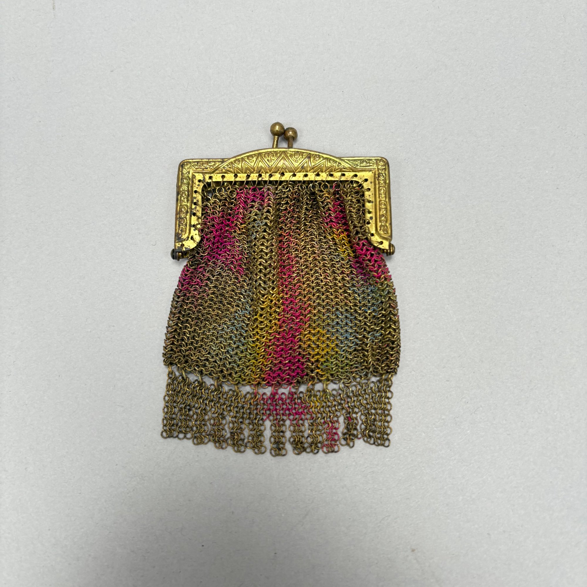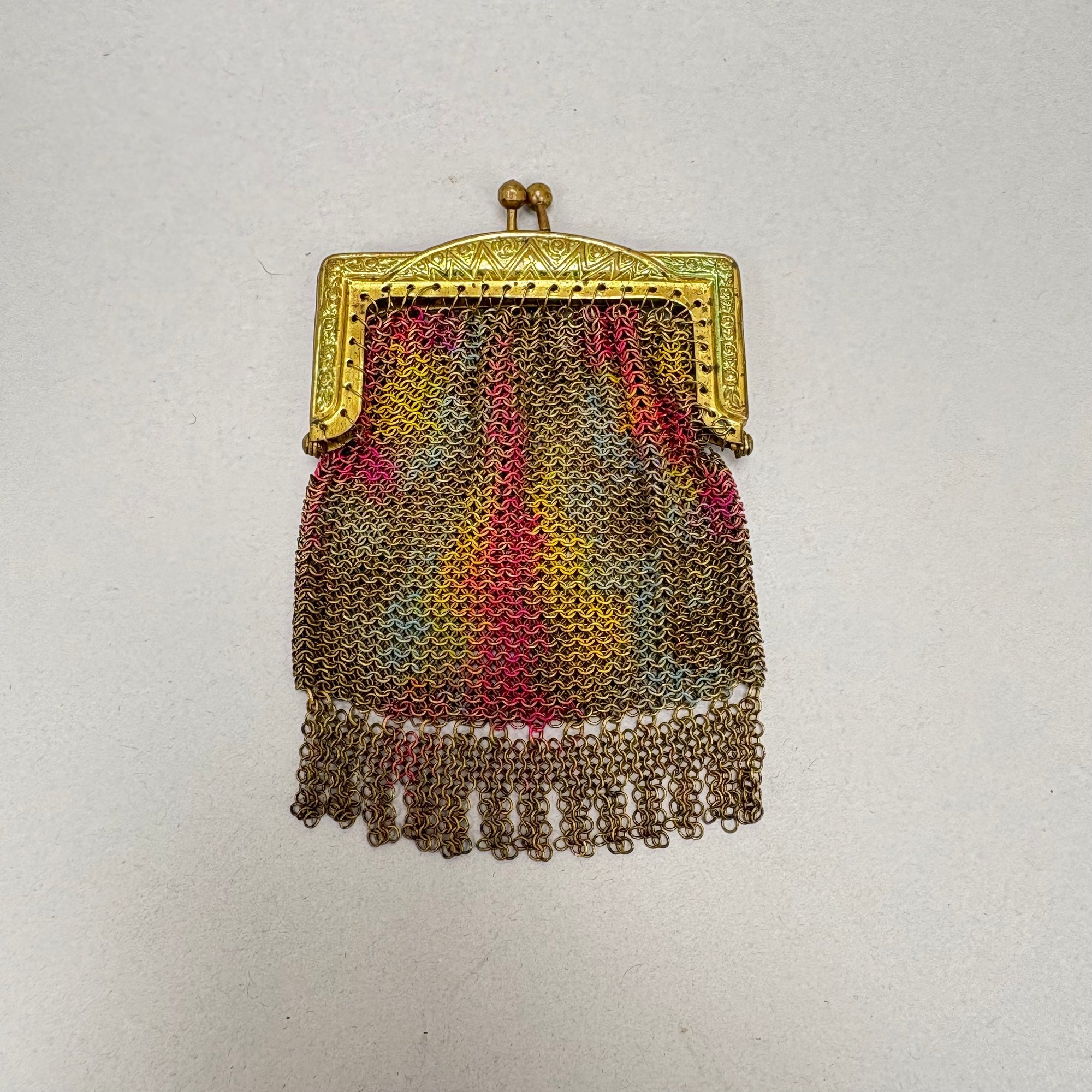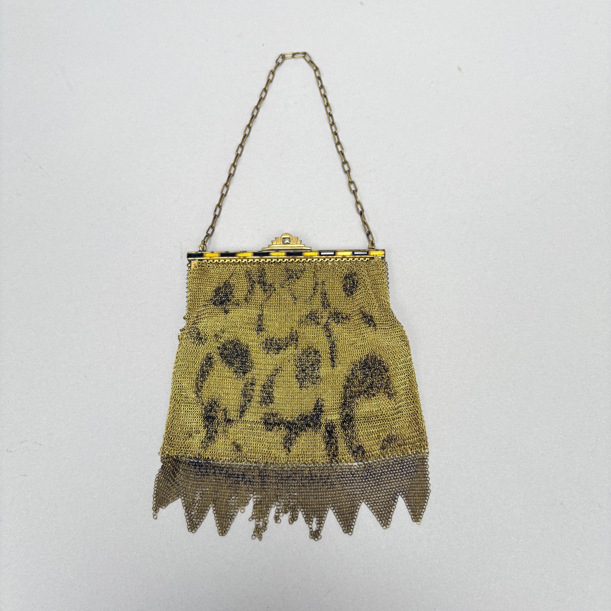Seven Ladies Mesh Evening Bags and a Comb. Including two bags by Whiting & Davis Company, North Attleboro/ Plainville, Massachusetts,1920'S-40's, the first in Art Deco style with a flowering plant on either side in yellow, green and black, the enamel frame with kiss clasp, the second with folding cover and fringe border, marked "PRINCESS MARY" and both marked "WHITING & DAVIS CO./ MESH BAGS."