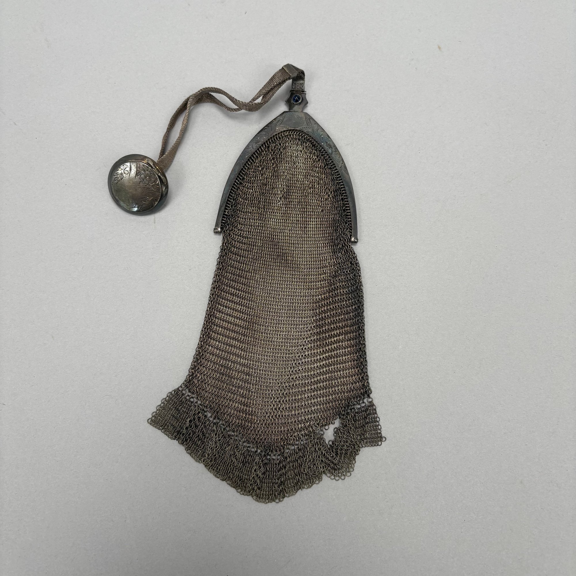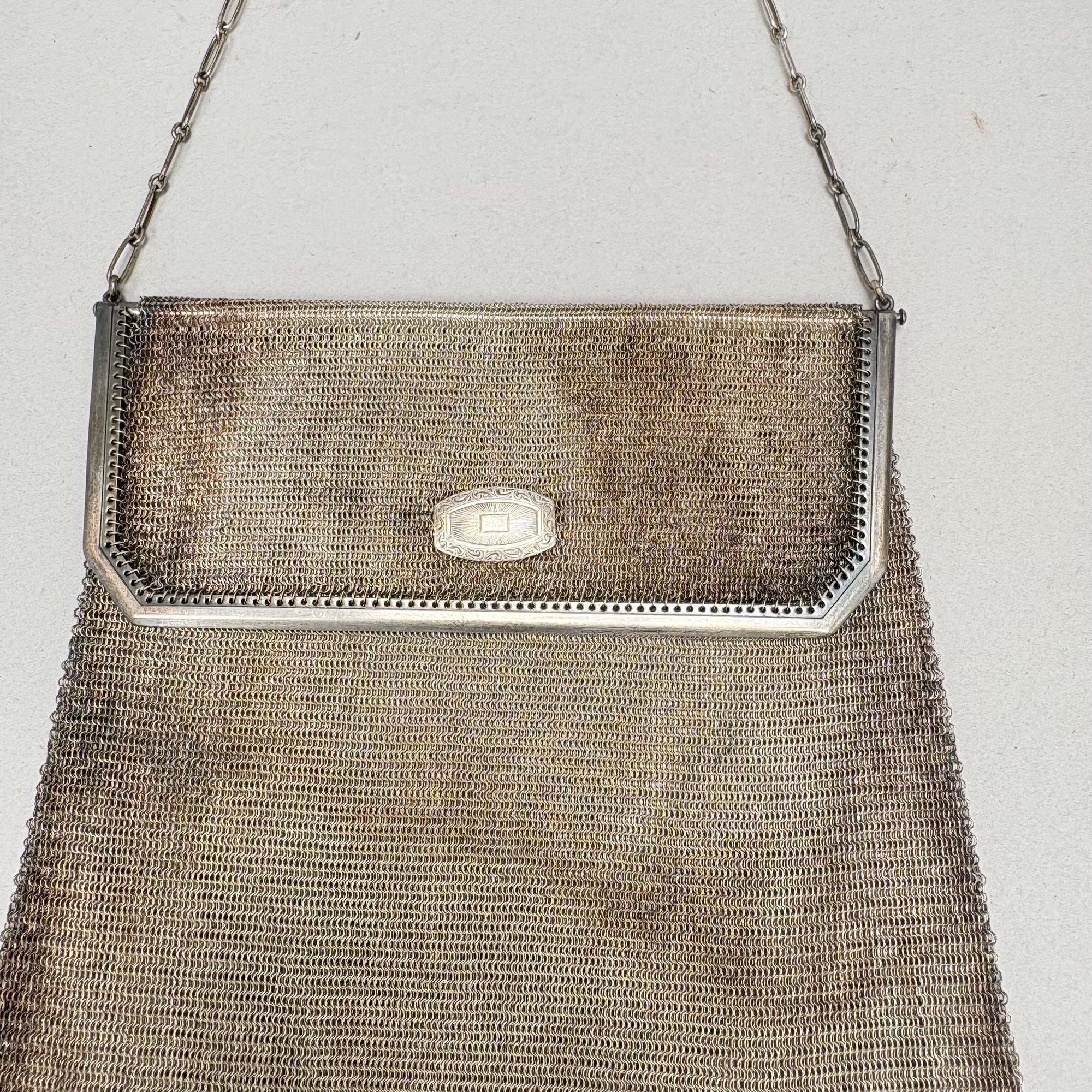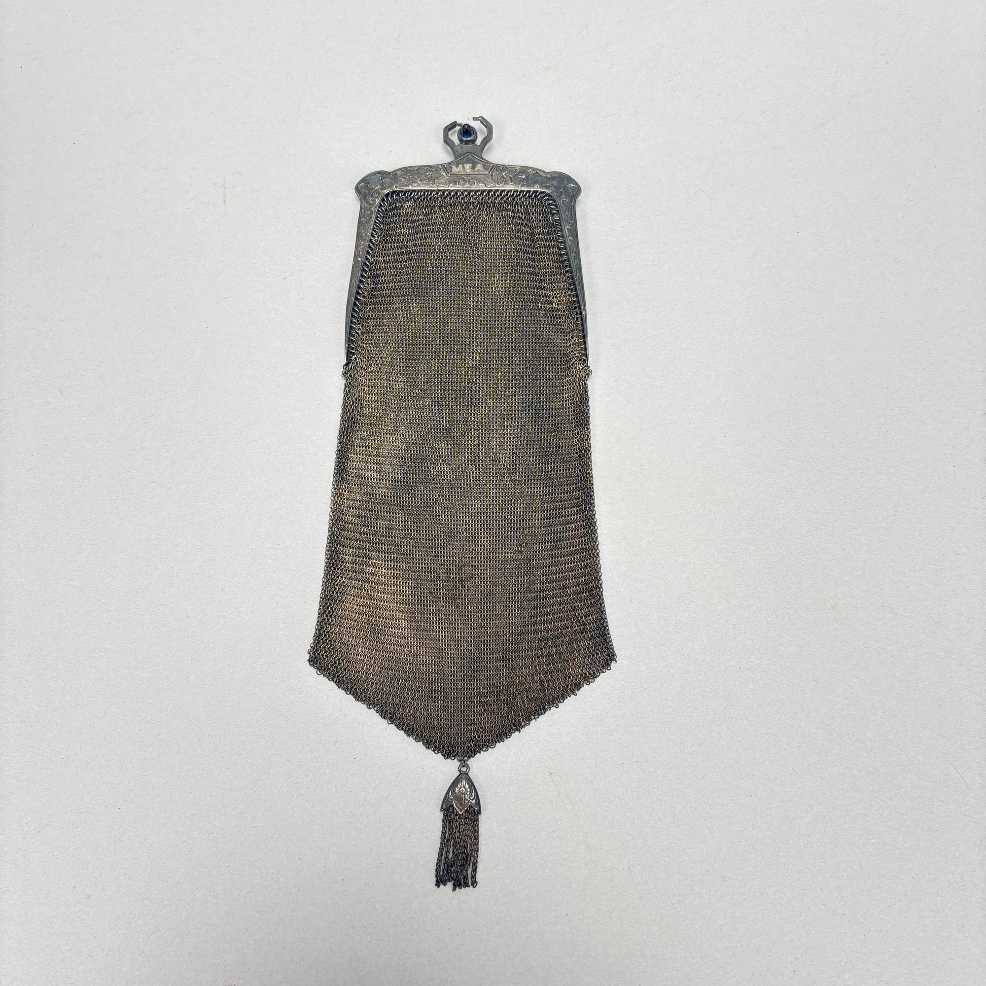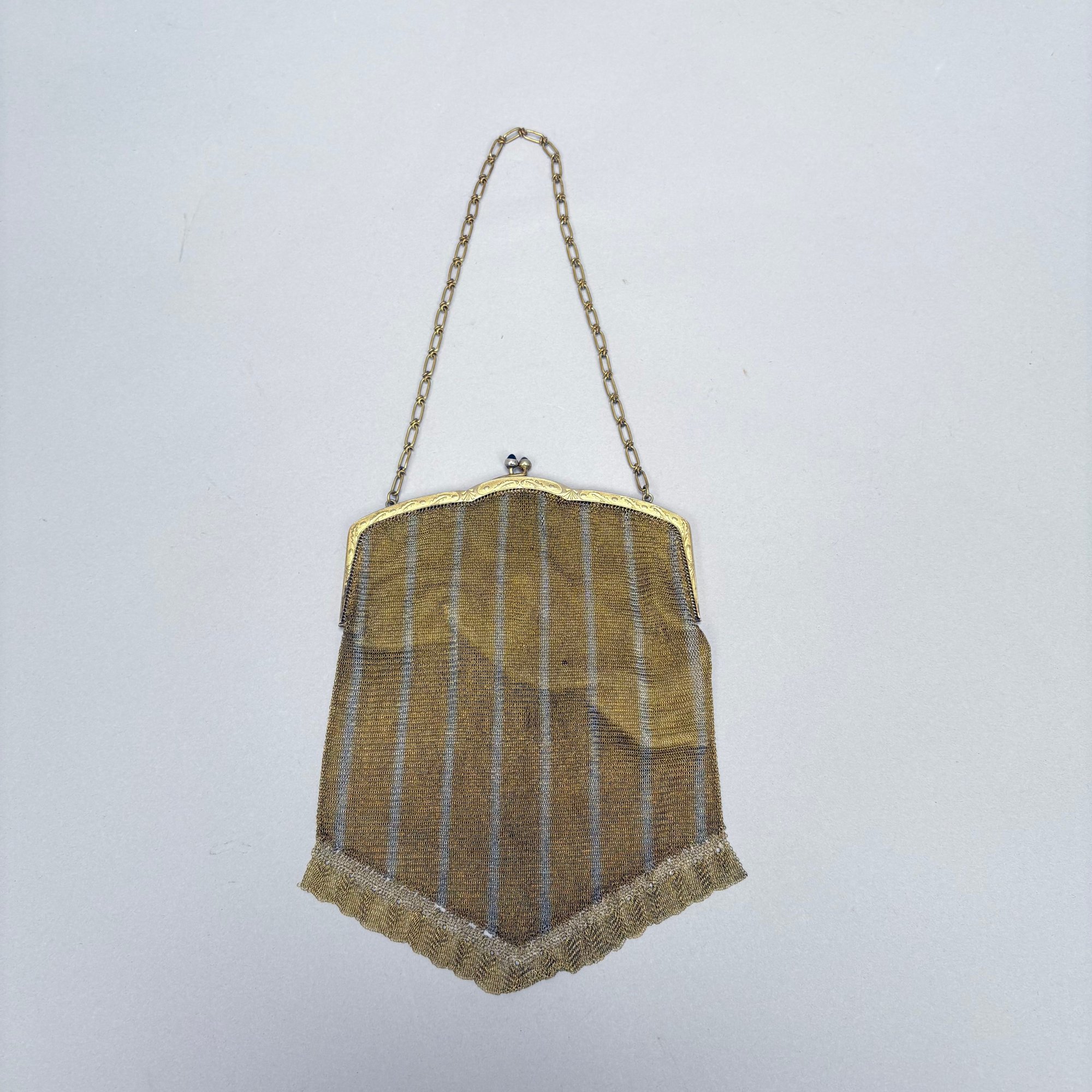 Seven Ladies Mesh Evening Bags and a Comb. Including two bags by Whiting & Davis Company, North Attleboro/ Plainville, Massachusetts,1920'S-40's, the first in Art Deco style with a flowering plant on either side in yellow, green and black, the enamel frame with kiss clasp, the second with folding cover and fringe border, marked "PRINCESS MARY" and both marked "WHITING & DAVIS CO./ MESH BAGS."