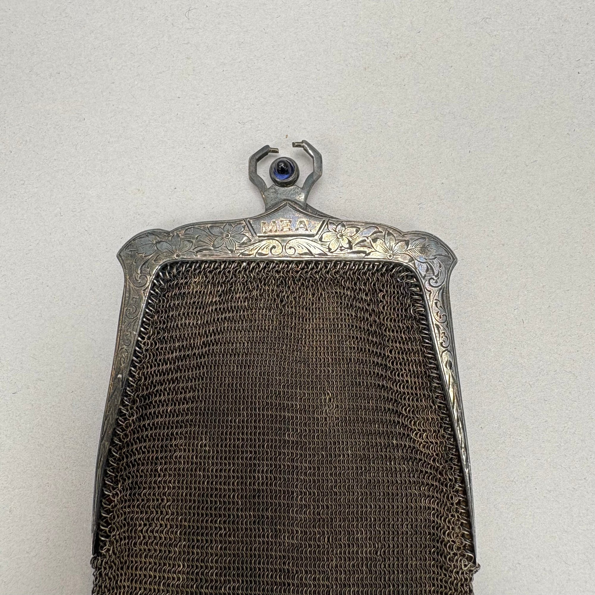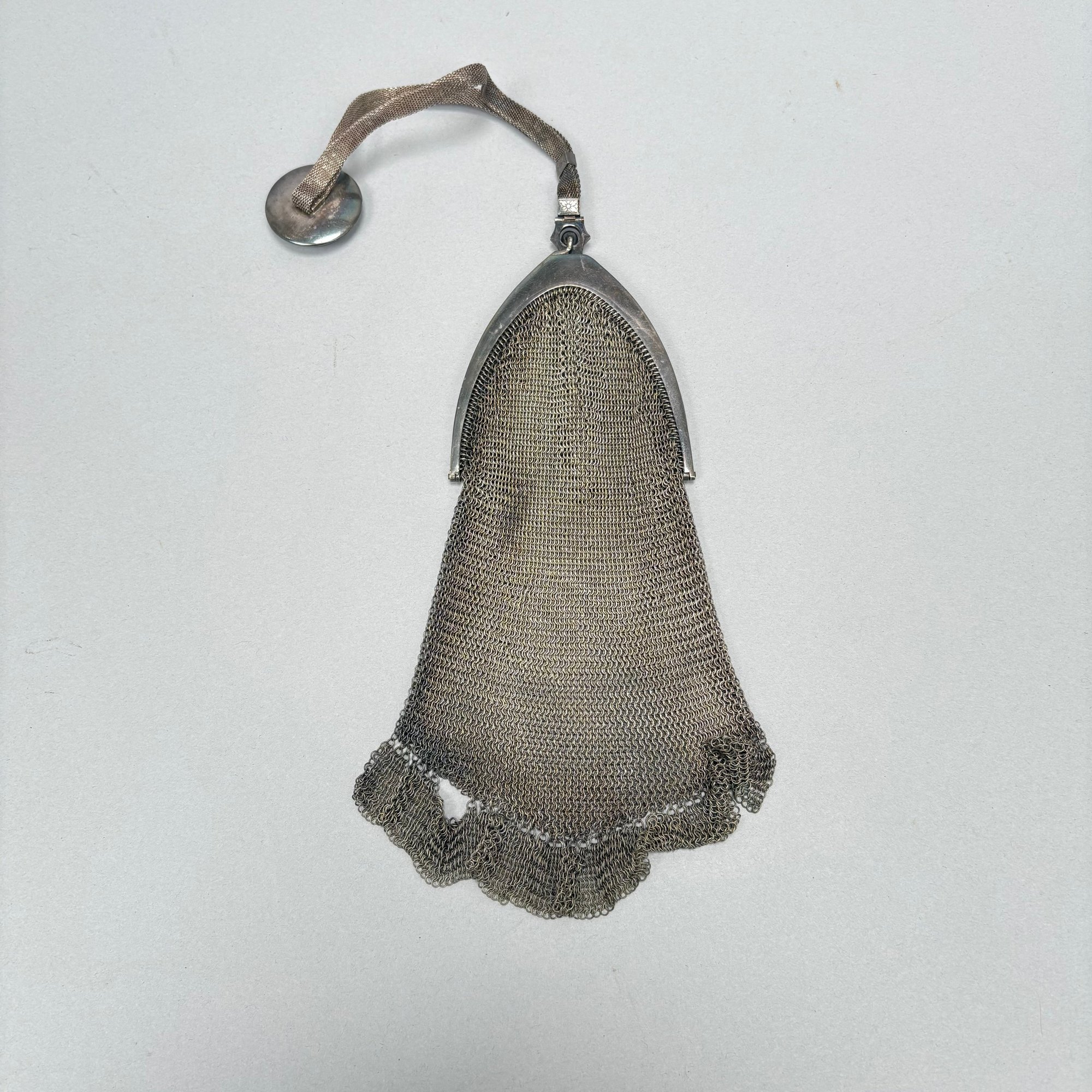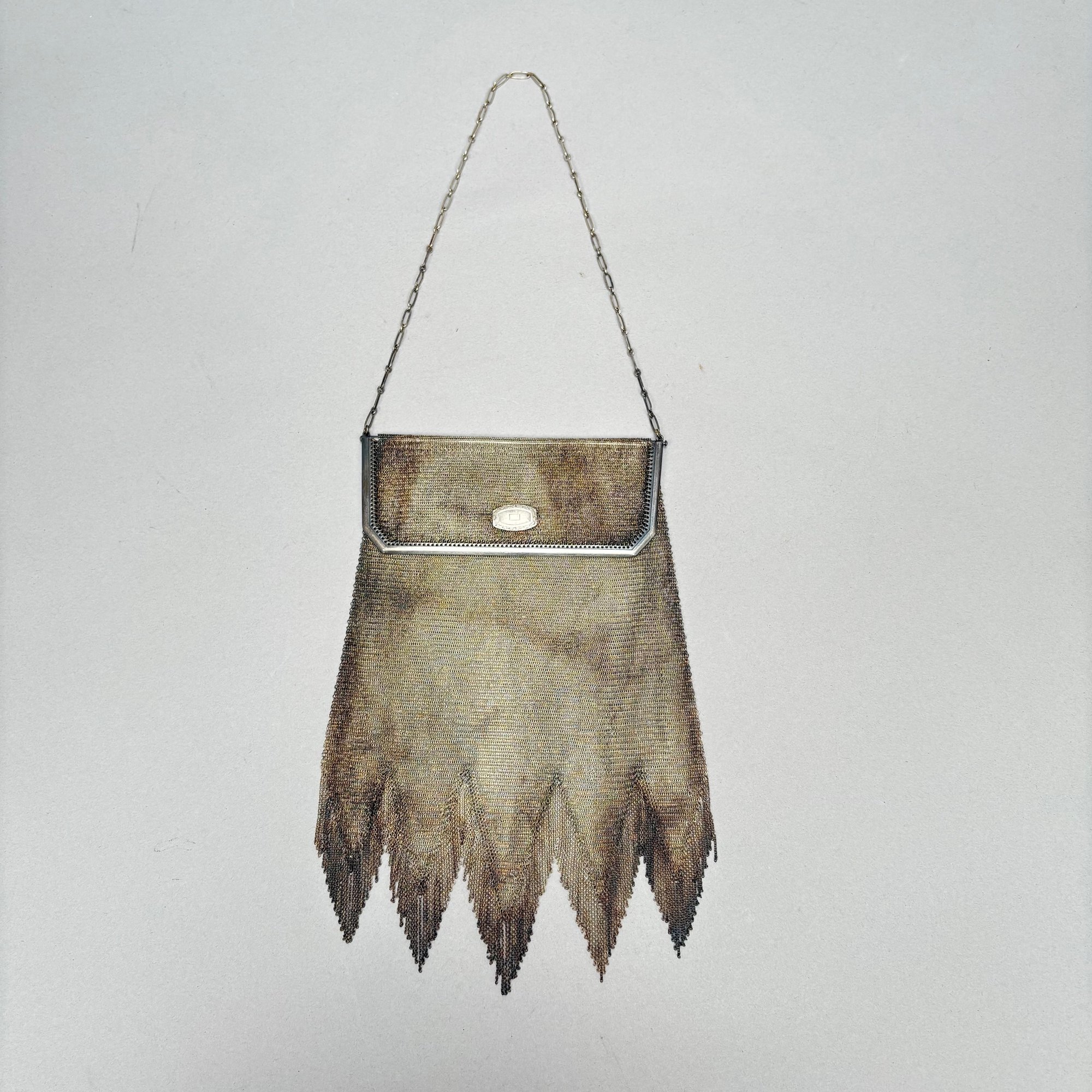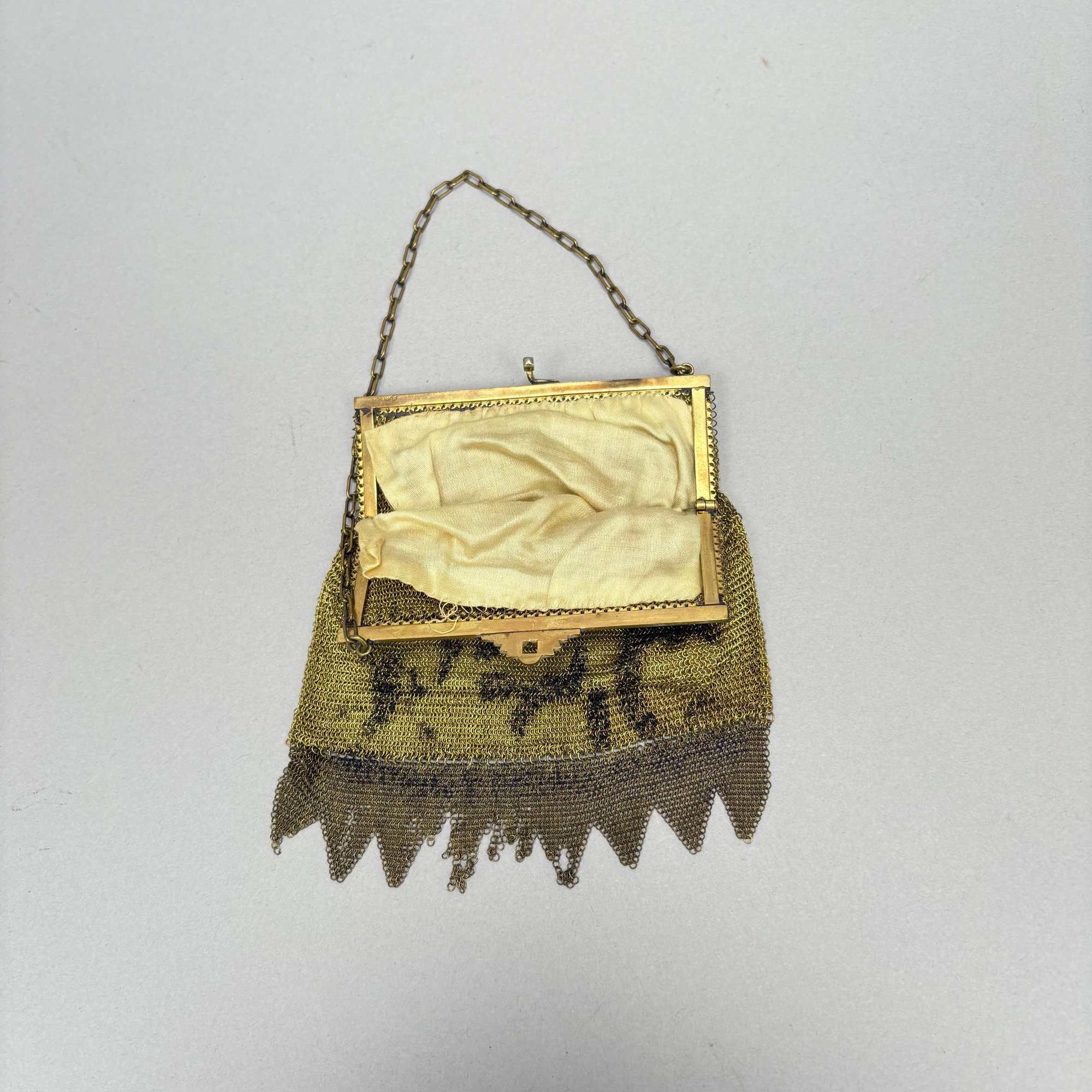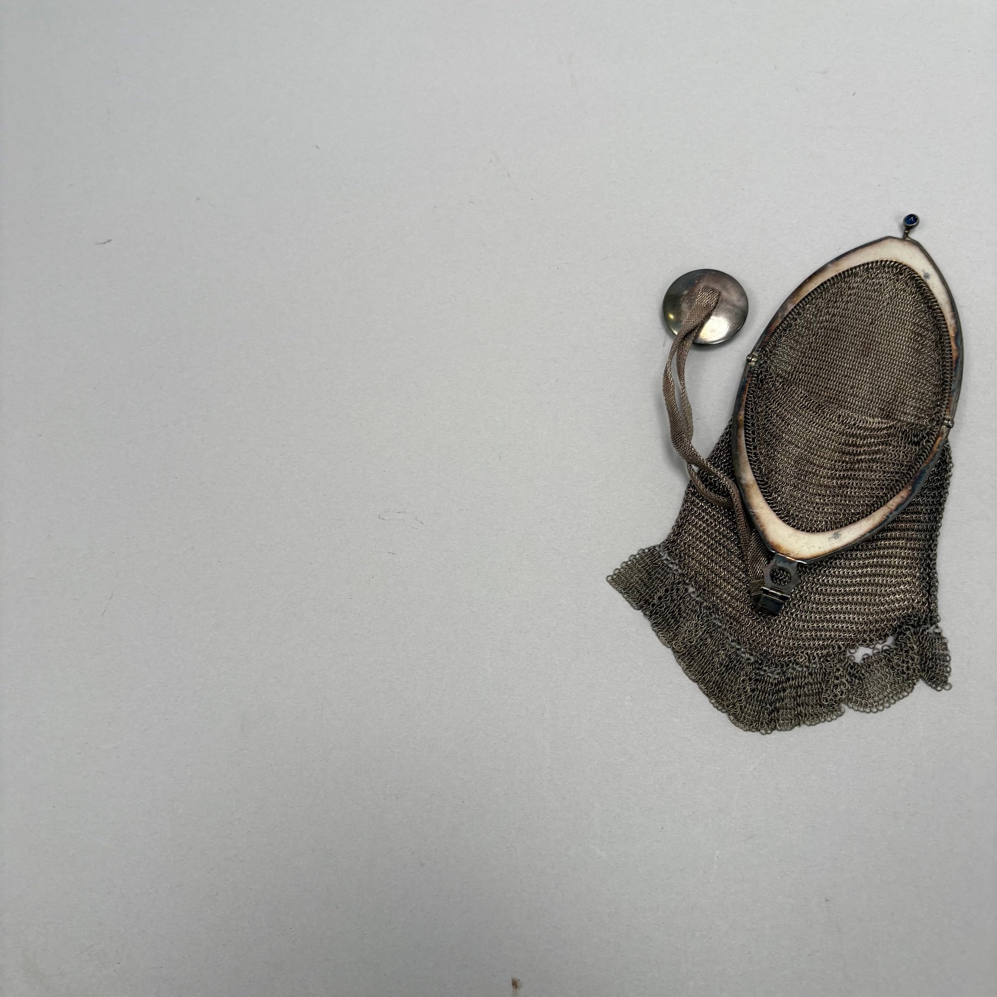 Seven Ladies Mesh Evening Bags and a Comb. Including two bags by Whiting & Davis Company, North Attleboro/ Plainville, Massachusetts,1920'S-40's, the first in Art Deco style with a flowering plant on either side in yellow, green and black, the enamel frame with kiss clasp, the second with folding cover and fringe border, marked "PRINCESS MARY" and both marked "WHITING & DAVIS CO./ MESH BAGS."