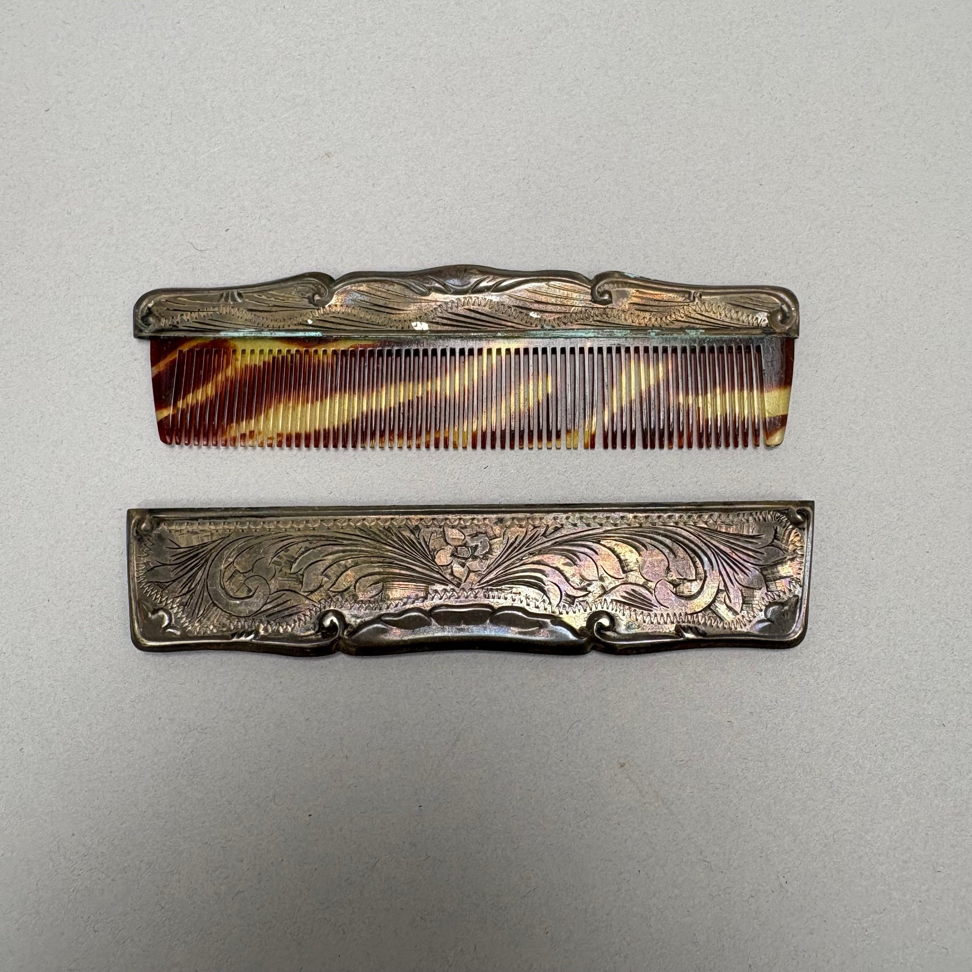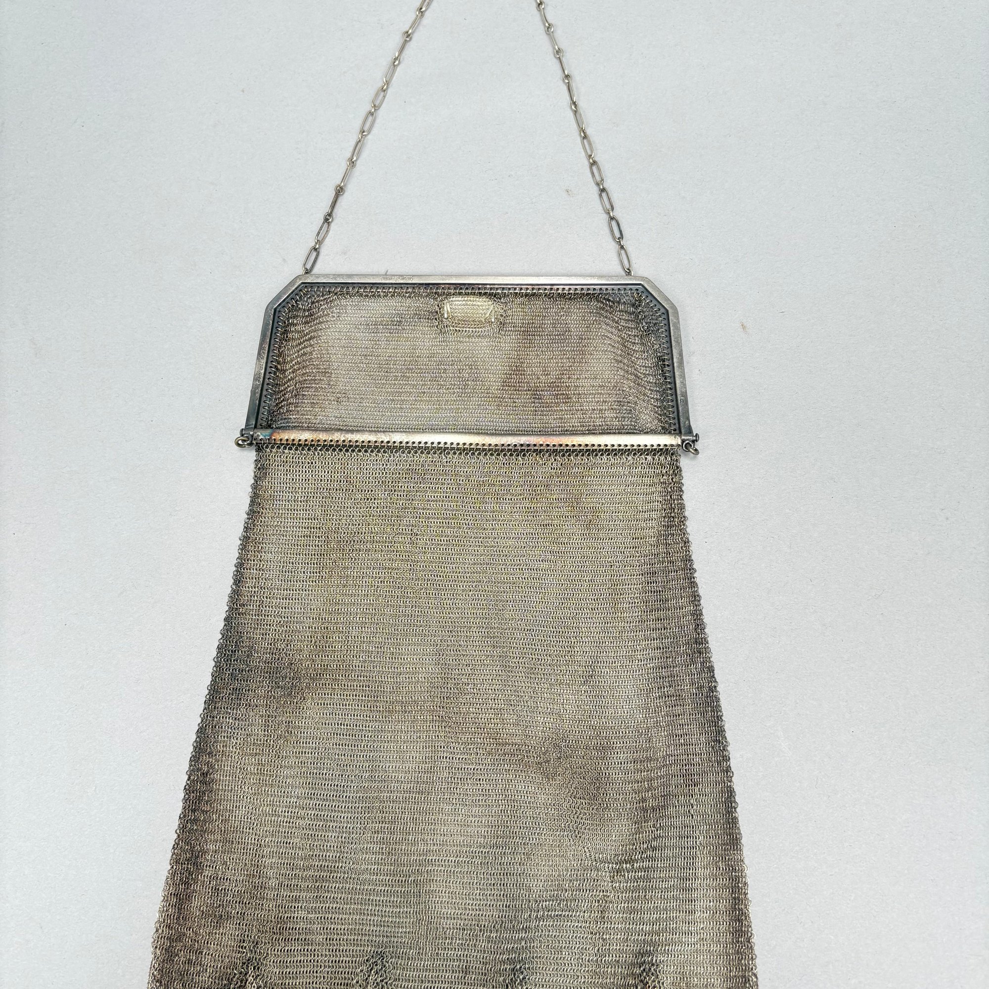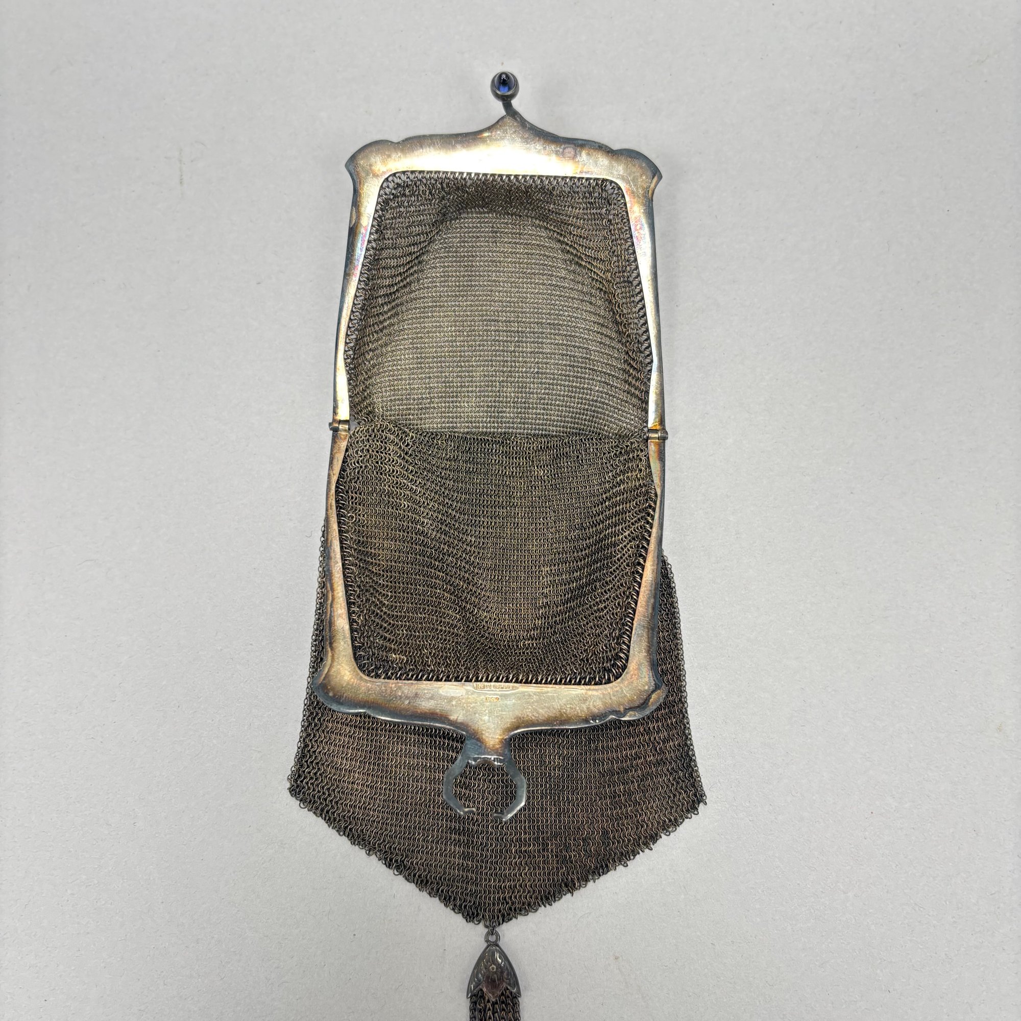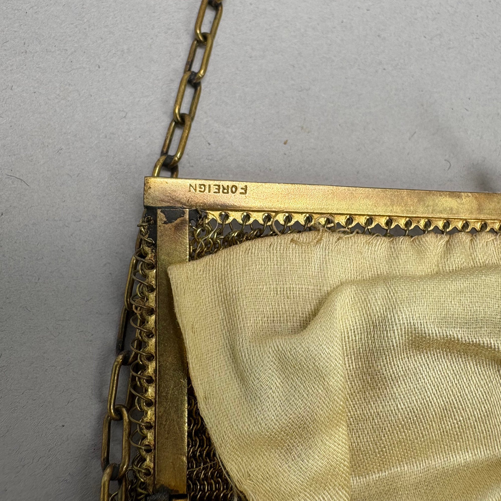 Seven Ladies Mesh Evening Bags and a Comb. Including two bags by Whiting & Davis Company, North Attleboro/ Plainville, Massachusetts,1920'S-40's, the first in Art Deco style with a flowering plant on either side in yellow, green and black, the enamel frame with kiss clasp, the second with folding cover and fringe border, marked "PRINCESS MARY" and both marked "WHITING & DAVIS CO./ MESH BAGS."