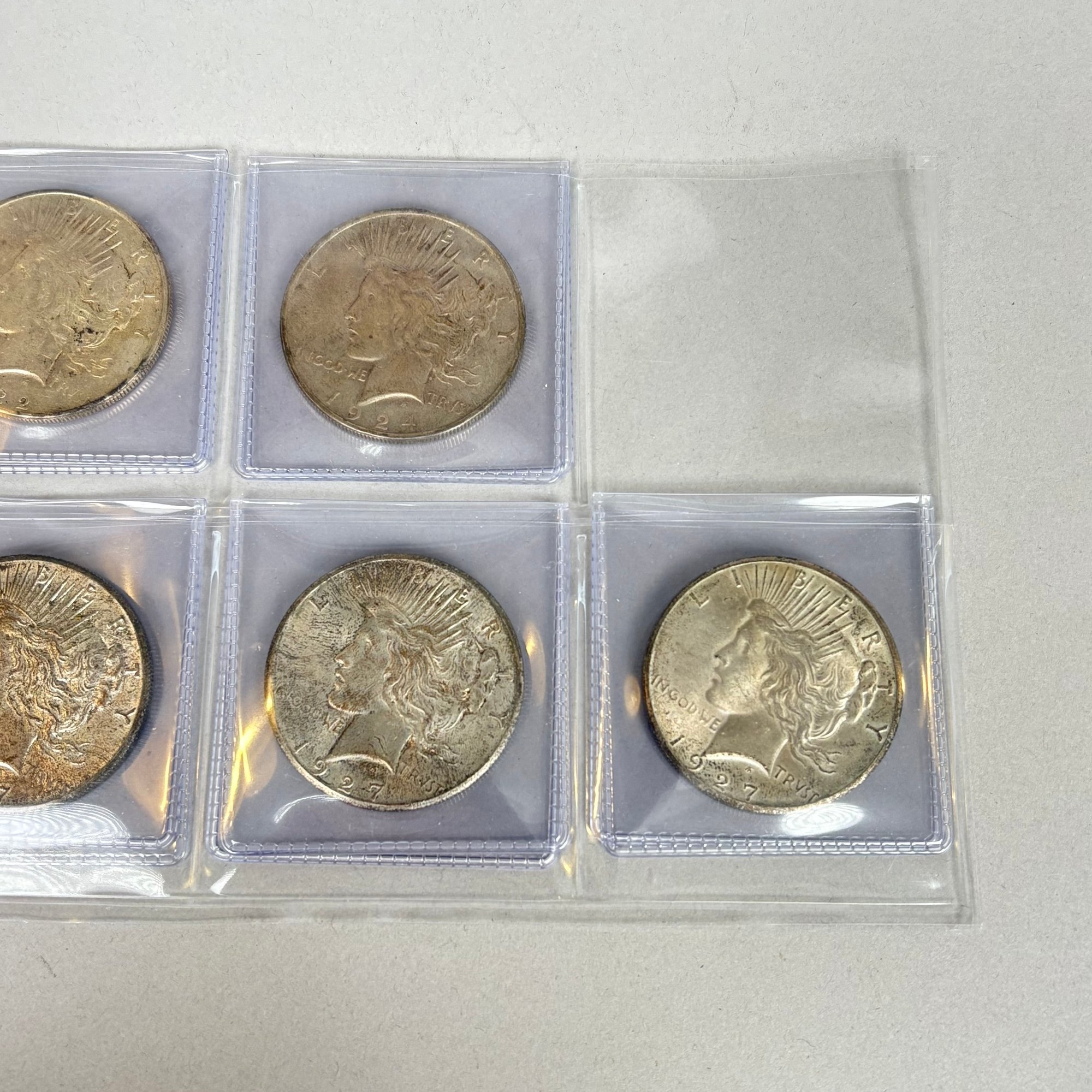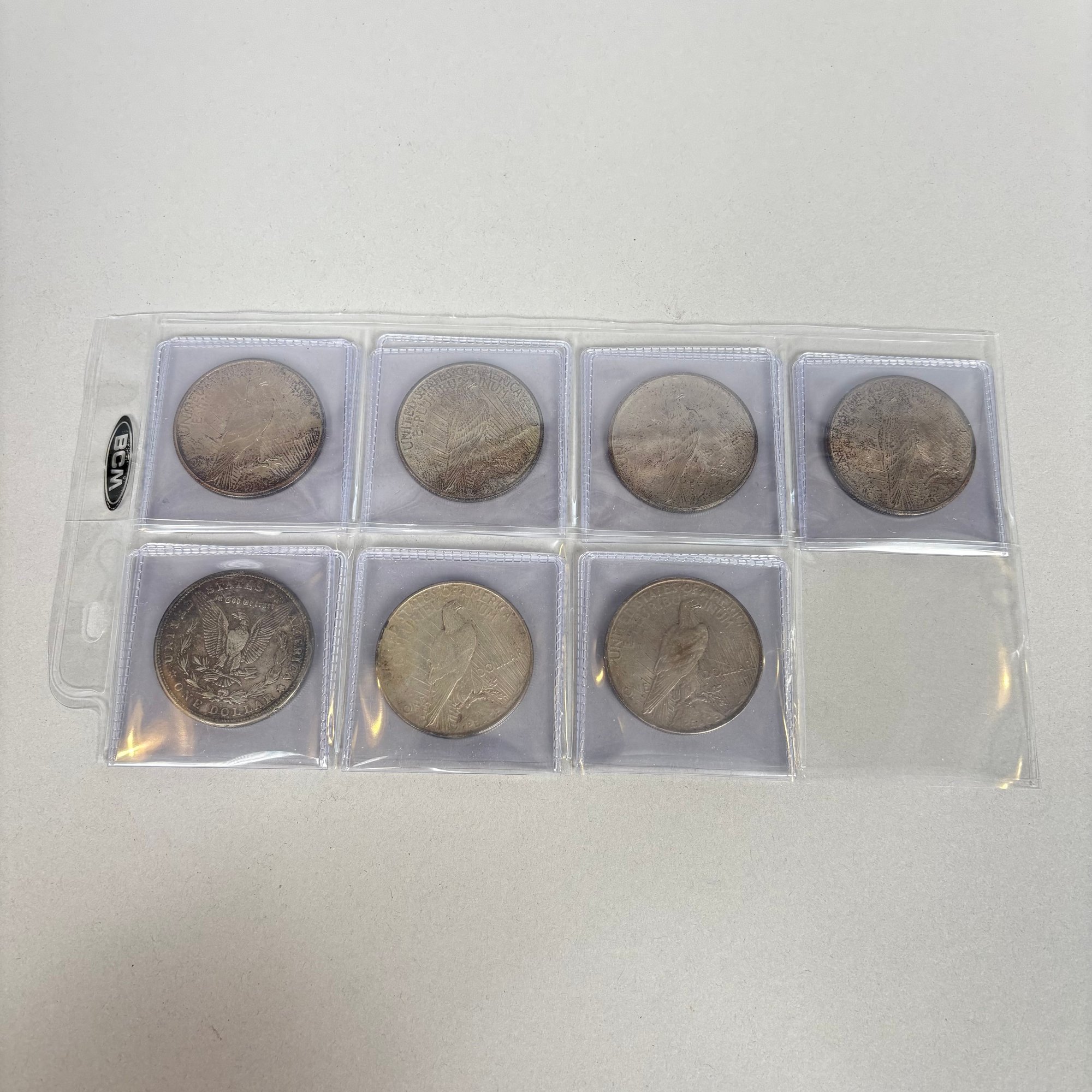 Seven Morgan and Peace United States Silver Dollars. Including 1921-S Morgan; 1922, 1924 & 1927 (4) Peace Dollars.