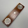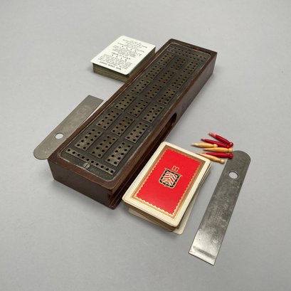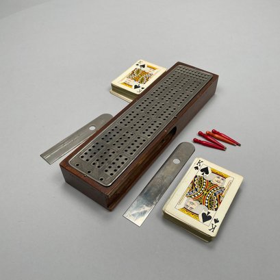 Armorial cribbage board: H: .5 in., W: 12.625 in., D: 3.875 in.