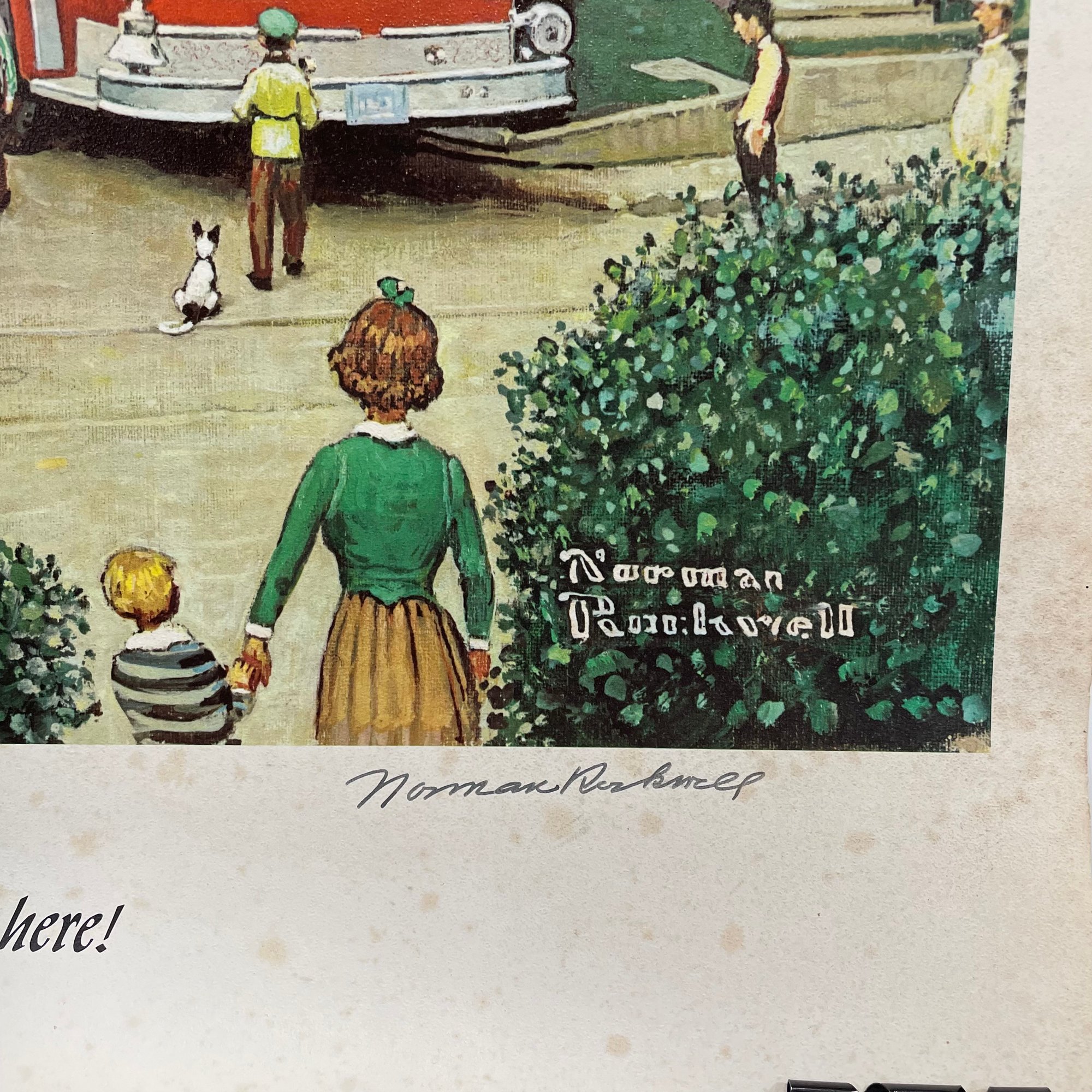 Signed Norman Rockwell Poster, "The new American LaFrance is here!," signed "Norman Rockwell" in blue ink lower right below the image; housed in the shipping tube from Charles Hamilton Galleries, Inc., 25 East 77th Street, New York, New York, postmarked November 6, 1976.