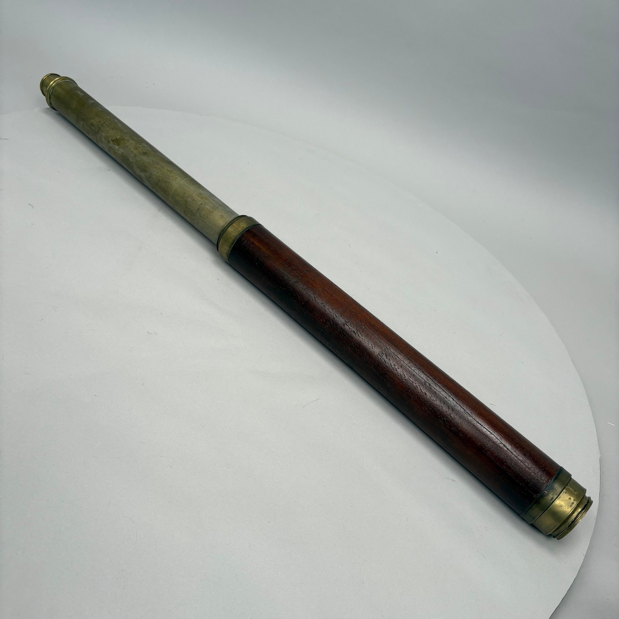 Single-Draw Mahogany & Brass Marine Telescope, Possibly T. Harris & Son, London, Circa 1810. The brass tube inscribed "Day or Night," lacking maker's mark.