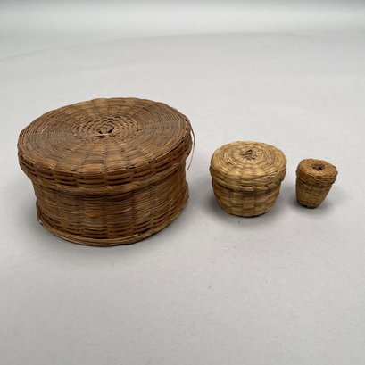 Six Pine, Bentwood and Birch Sewing Boxes, Pantry Boxes and Baskets, Nineteenth-Early Twentieth Century.