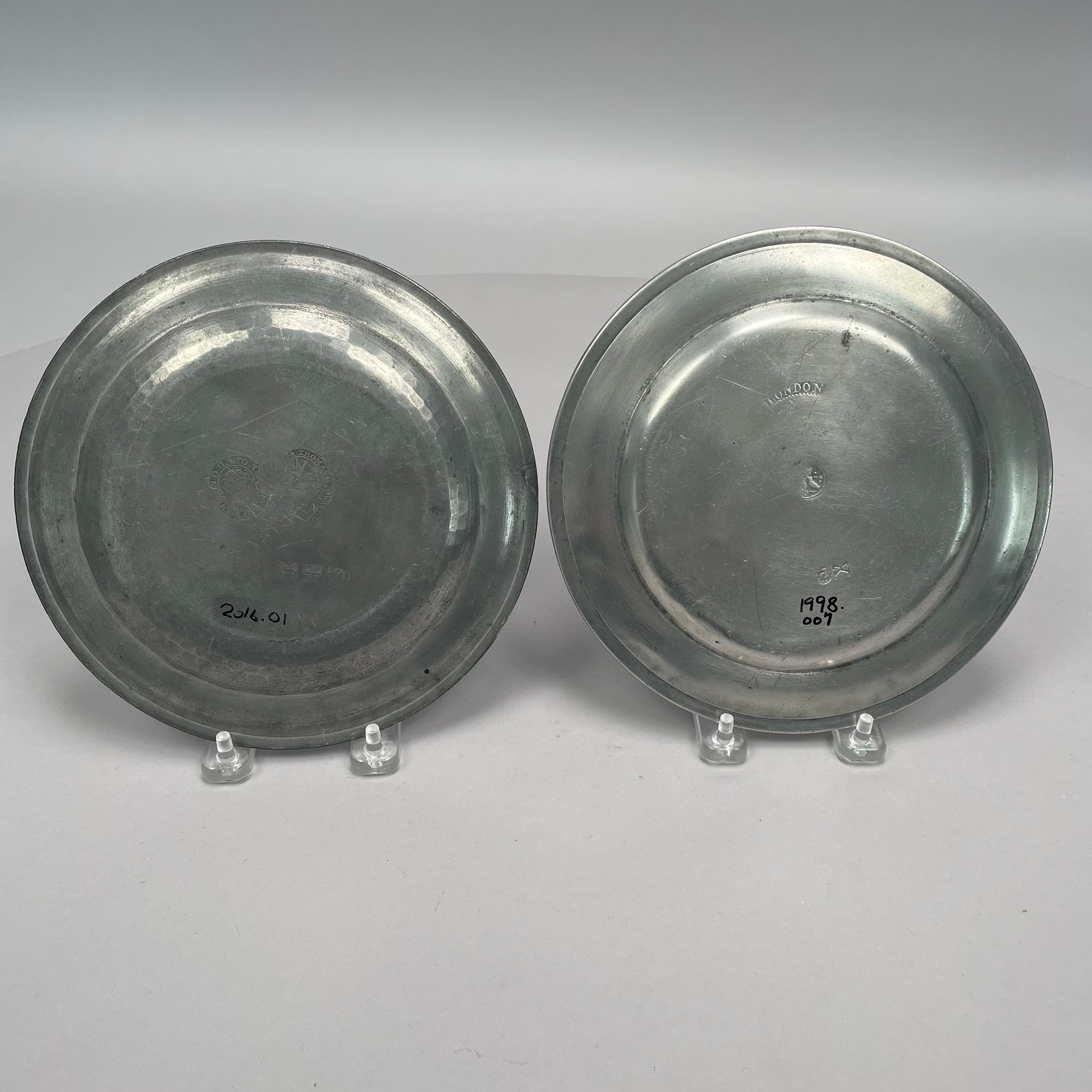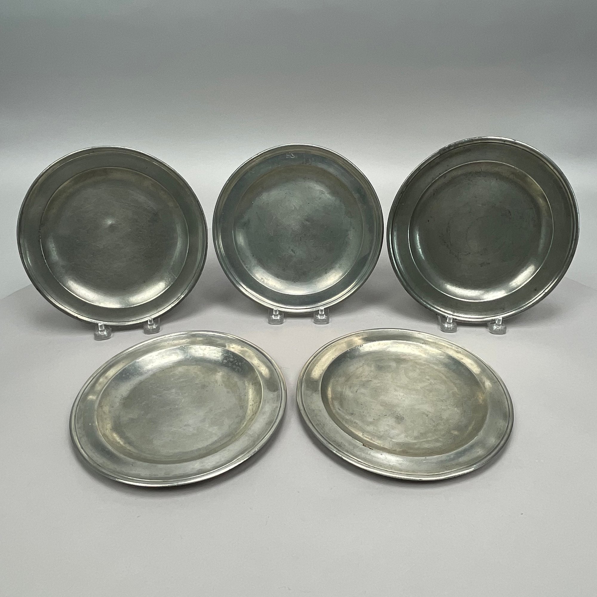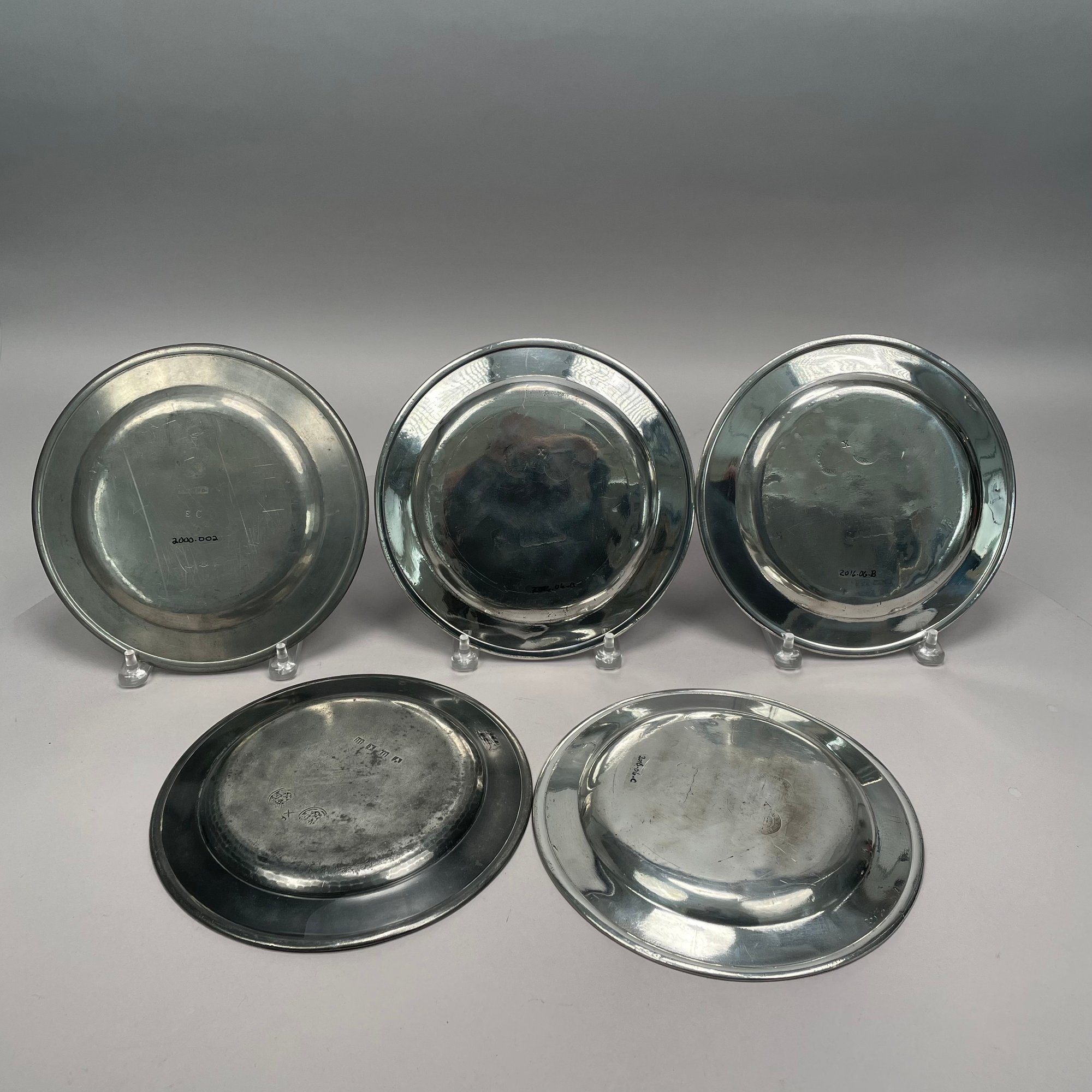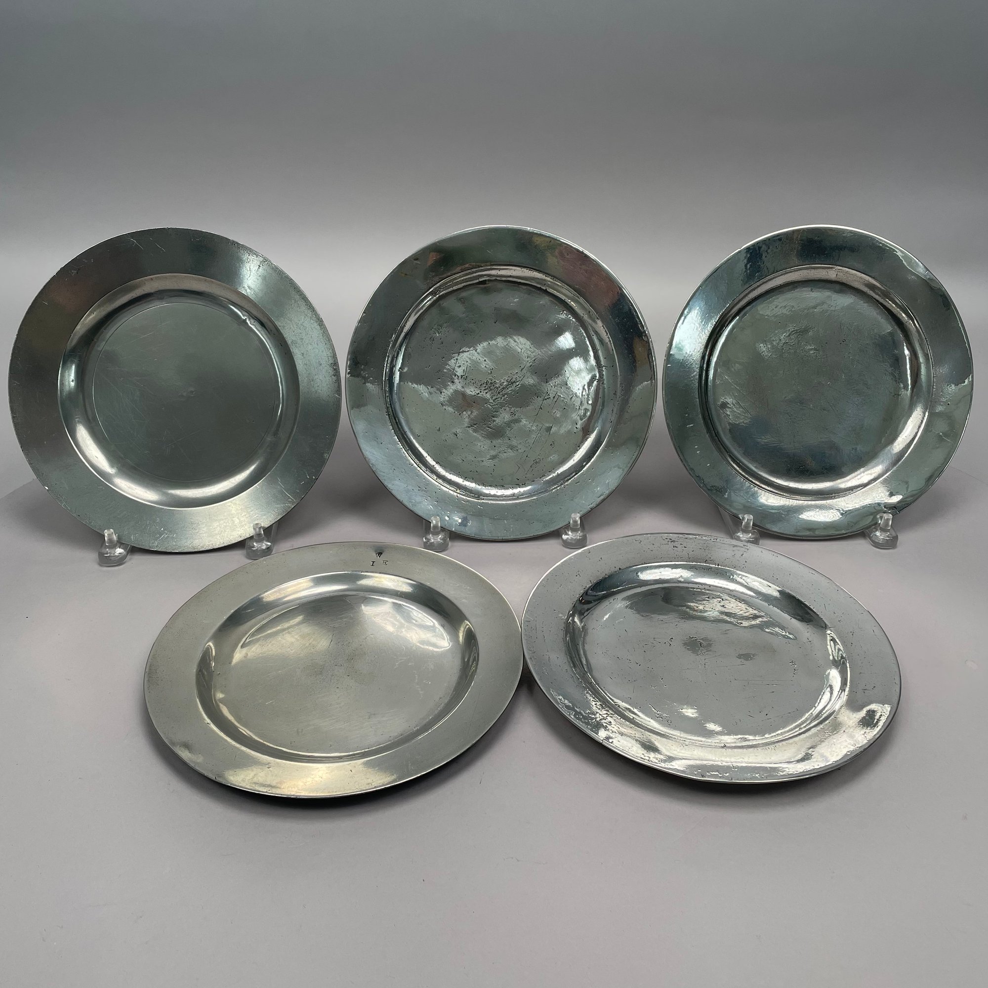 Sixteen British Pewter Plates and Dishes, Various Makers, Eighteenth and Nineteenth Century. Various touchmarks.